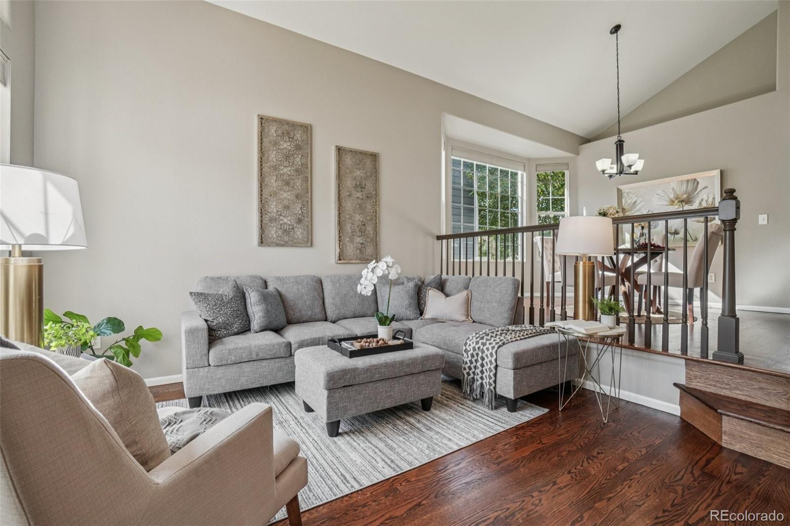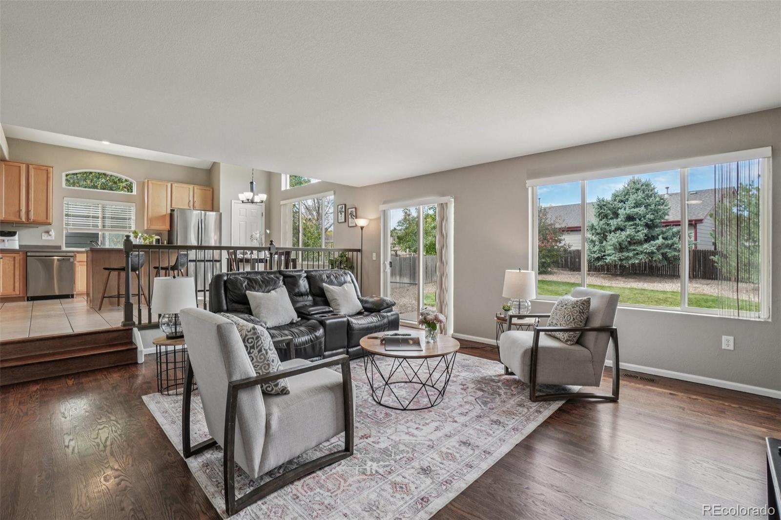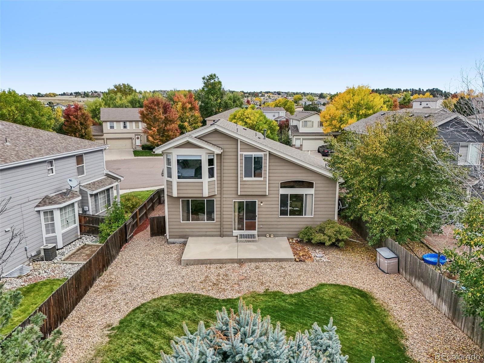 MOTIVATED SELLERS! Bright, open, and perfectly located, this cul-de-sac home offers vaulted ceilings, hardwood floors, and easy access to trails, park, and pool just steps away. 5453 Military Trail strikes the ideal balance of comfort, function, and location! The neighborhood is a favorite for its community amenities and proximity to open space and walking paths. Inside, real hardwood floors and soaring ceilings create an inviting first impression, while the traditional layout offers both openness and separation. Just beyond the living and dining rooms, the eat-in kitchen, with its island, pantry, and generous countertop space, will quickly become the heart of the home. Whether you’re prepping dinner, tackling homework, or catching up with friends in the adjoining family room, this space keeps everyone connected. Large windows bring in natural light, and a sliding door offers direct access to the fully fenced backyard. A convenient powder bath and laundry room round out the main level. Upstairs, the primary suite, with its vaulted ceilings and many windows, is inviting and airy. A bonus - the rare and practical perk of dual closets and enough room for a small sitting area! The five-piece bath allows for everyone to get ready without crowding. Two additional bedrooms and a full bath complete the upper level. The unfinished basement provides flexibility—finish it for extra living space or use it for ample storage. With a sump pump and radon mitigation system already in place, key safety features are taken care of for peace of mind. The oversized two-car garage provides a bump out for all the extras, and a doggy door is ready for your pooch! This well kept and gently lived in home offers the enjoyment of quiet cul-de-sac living near open space, knowing that just beyond, all the conveniences of both Parker and Castle Rock are only minutes away. Welcome home!