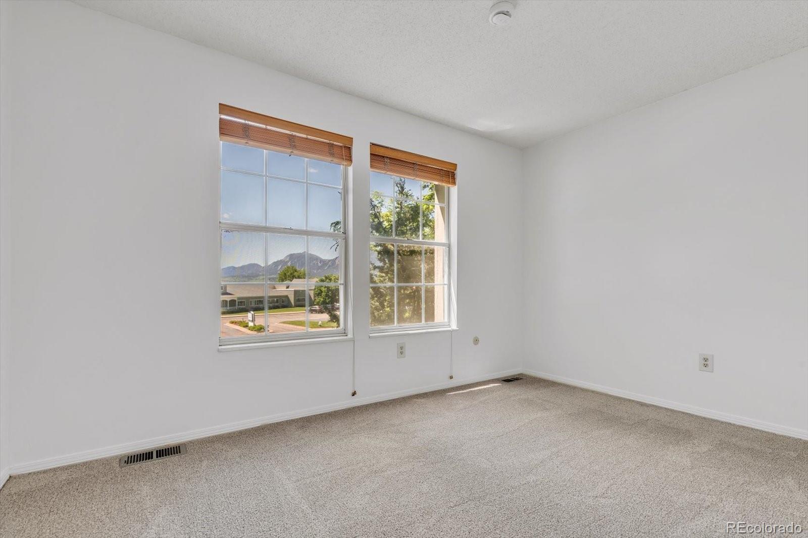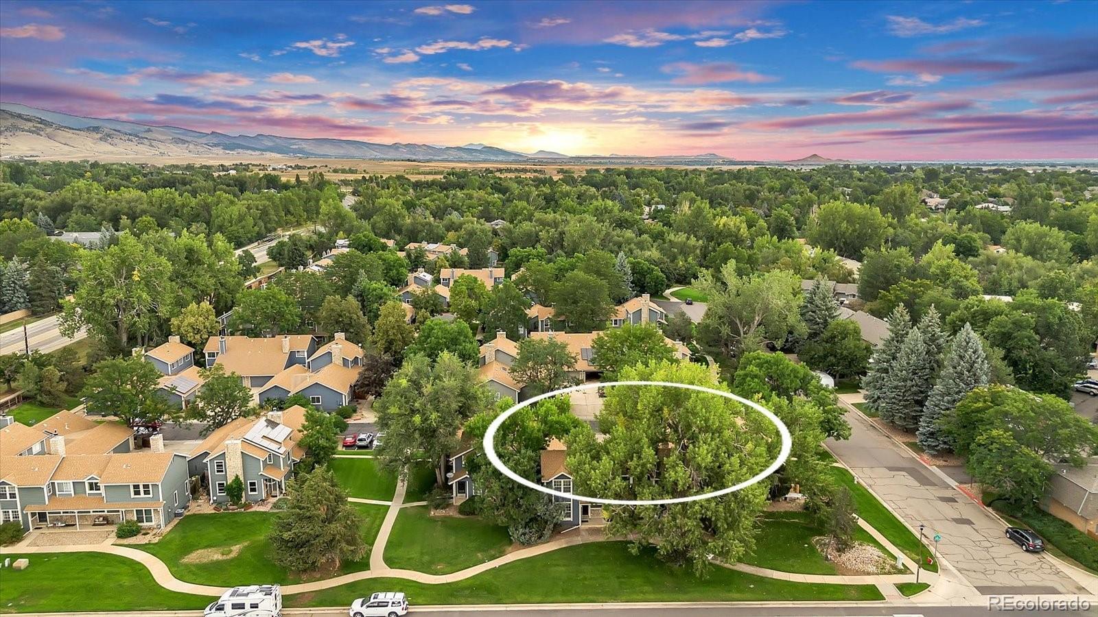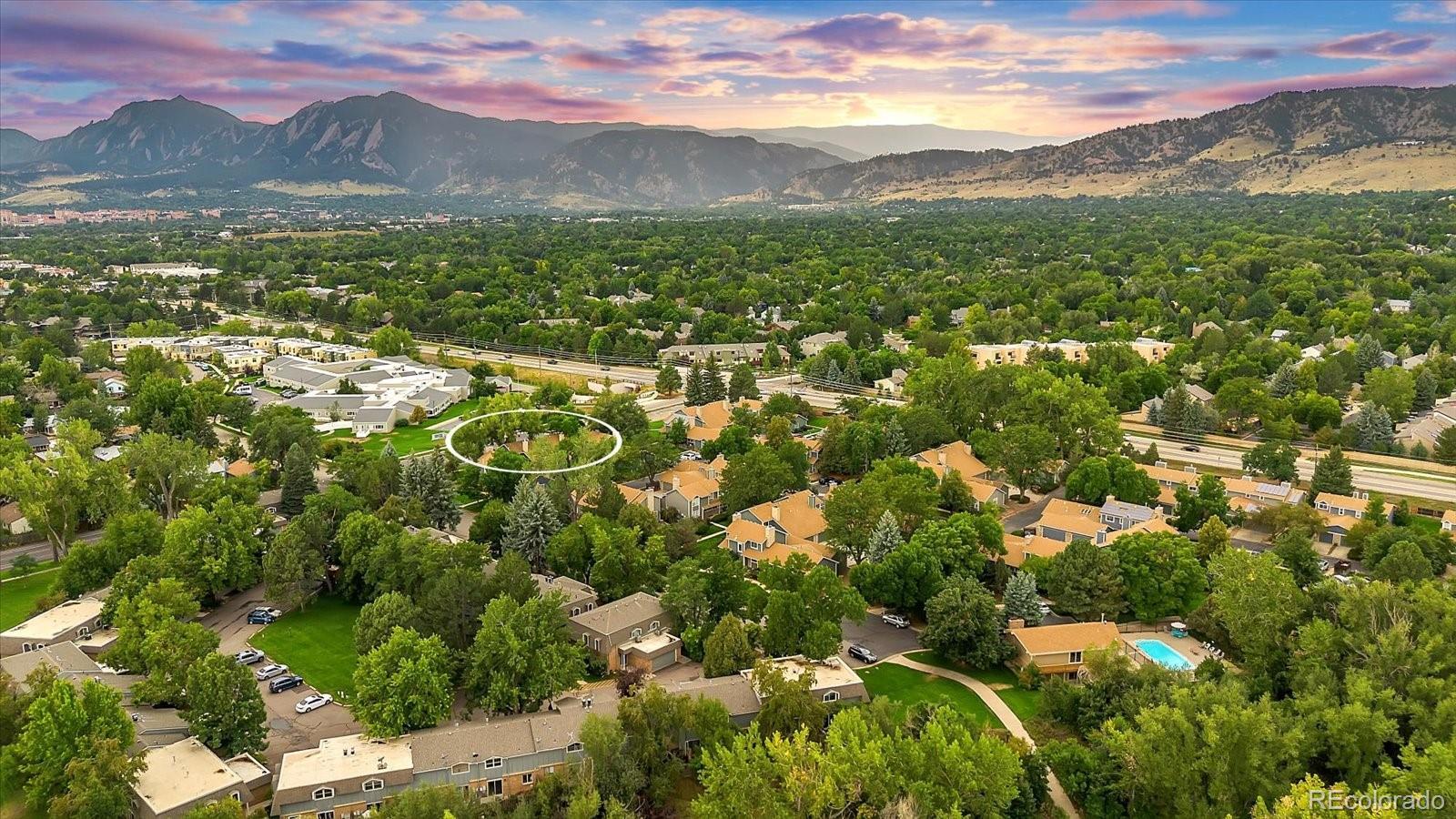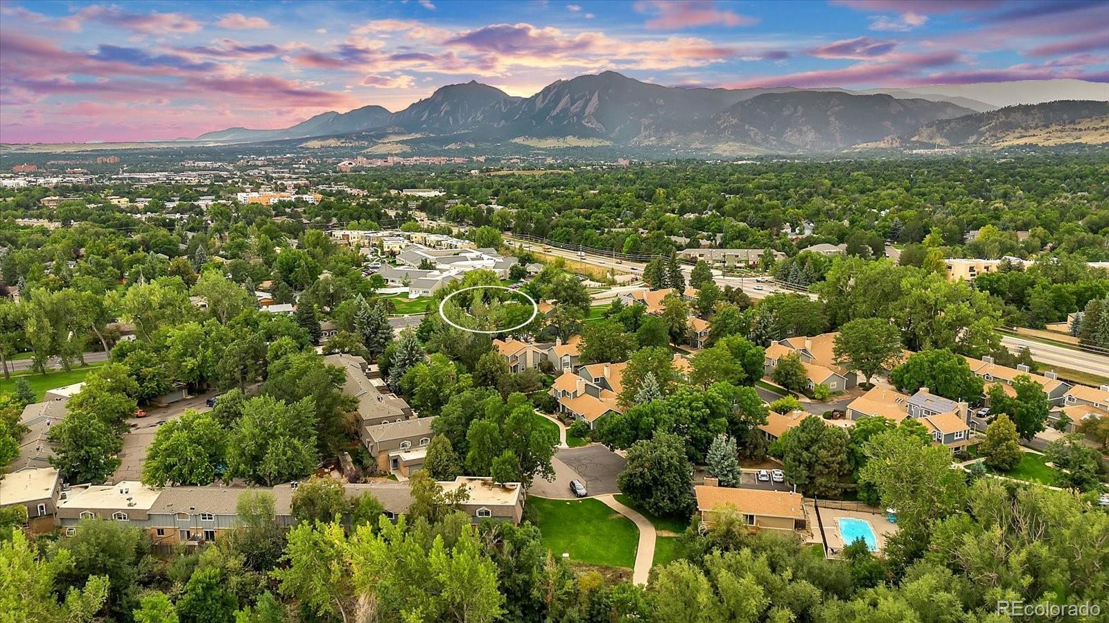 Spectacular VIEWS of the Front Range, CU Folsom Field and downtown Boulder. 3-story Townhome in desirable Palo Park! 4 CONFORMING bedrooms, 3 baths with over 1800+ square feet. Attached 2-car garage with extra built-in storage, gas fireplace with updated mantel, and a finished basement, two conforming bedrooms with egress windows and newly installed waterproof flooring. Private fenced patio/garden. Home has AC and evaporative cooling system. Street parking conveniently located out the front door. Close to dining, shopping, bike paths, and more. HOA Includes: Common Amenities, Trash, Snow Removal, Lawn Care, Management, Exterior Maintenance, and Hazard Insurance. Clubhouse, Pool, Common Recreation/Park Area.