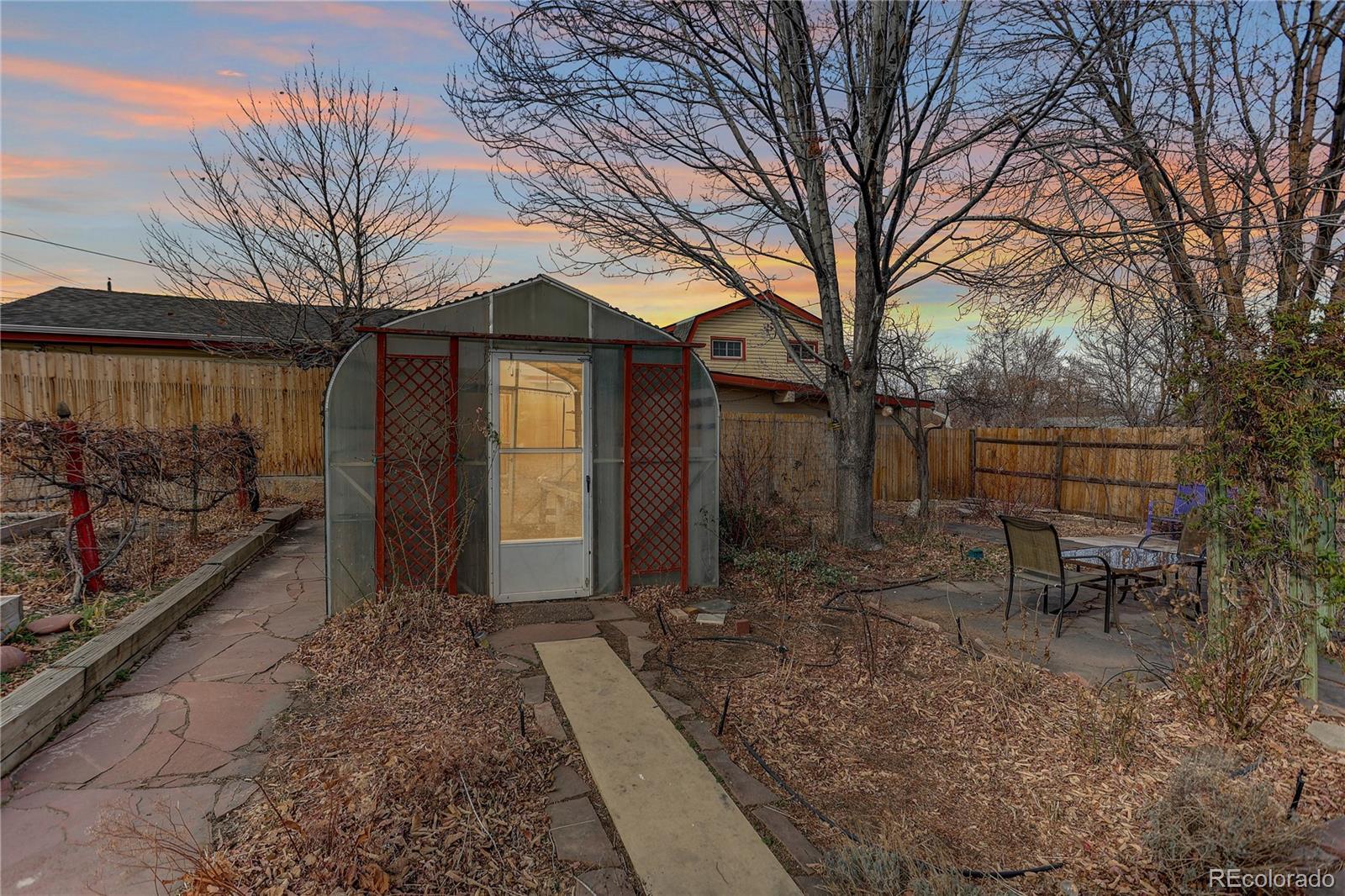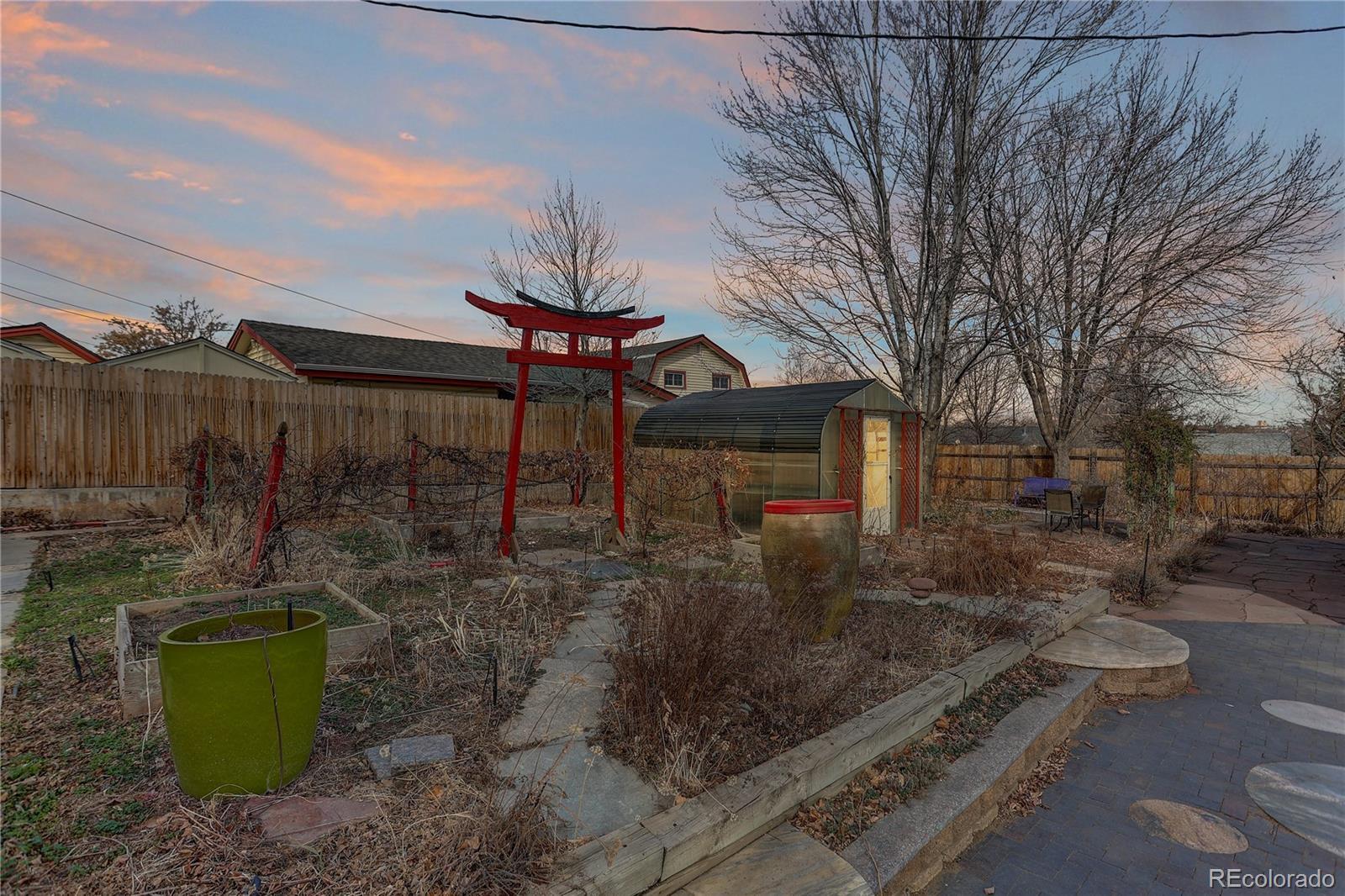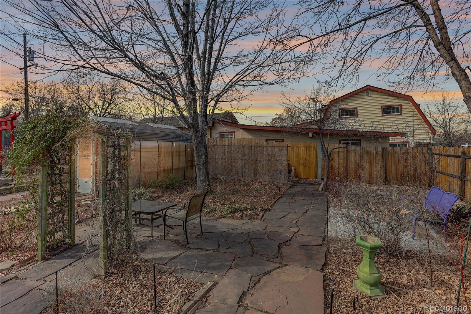 Welcome to 2714 W Irvington Place. This truly one-of-a-kind Valverde property offers a lifestyle that is increasingly hard to find in the city—space, sustainability, and a genuine connection to nature. Set on over a quarter-acre lot, an exceptionally rare offering in Denver, this home is a gardener’s dream with established perennial gardens built by a master gardener, mature grape vines, and a dedicated greenhouse for year-round growing. An expansive patio creates the perfect backdrop for outdoor dining, entertaining, or quiet mornings surrounded by greenery, nature and birds singing. Downtown views from the covered, front porch. Thoughtful eco-friendly upgrades include an OWNED solar system with no lease or added monthly cost, a tankless water heater, double-paned windows for comfort and energy efficiency and brand new sewer line. Valverde is known for a strong sense of community with quick access to downtown Denver, major thoroughfares, parks, and the South Platte River corridor, the area blends urban convenience with a relaxed, residential character. Just 10 minutes from downtown, this home delivers a truly special opportunity to enjoy intentional, outdoor-focused living in one of Denver’s most quietly evolving neighborhoods. An urban farmer's oasis in the city! *Some photos may be virtually staged*