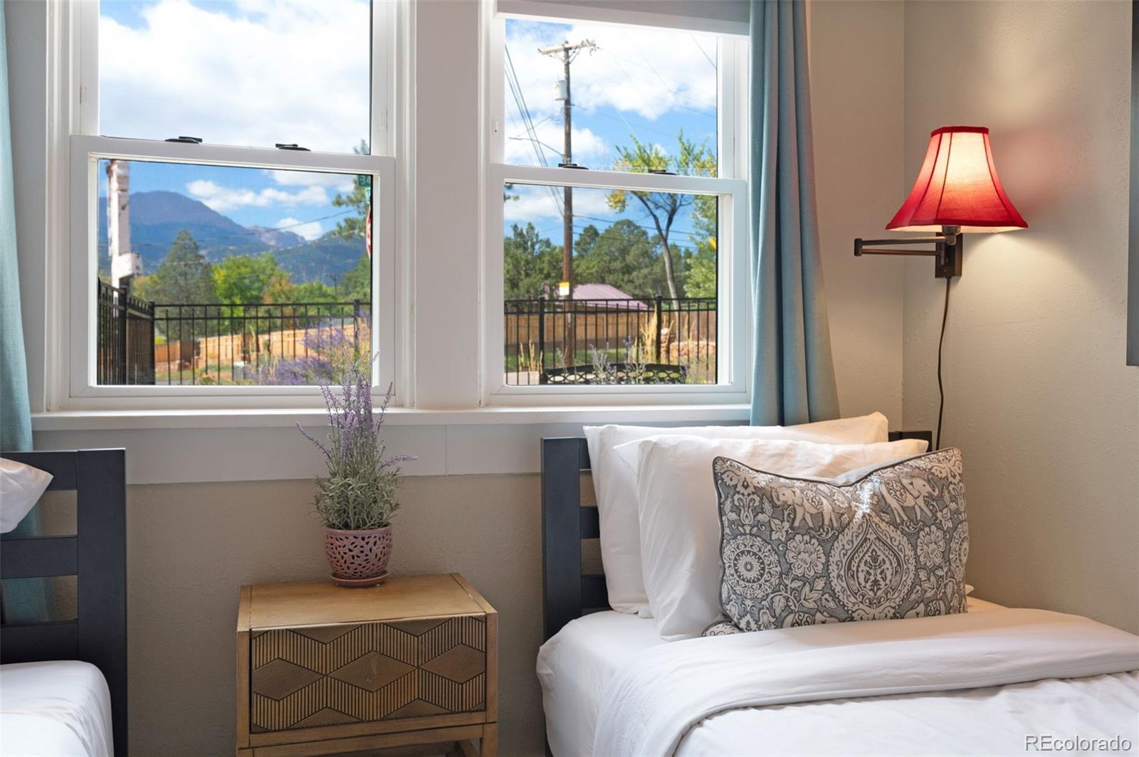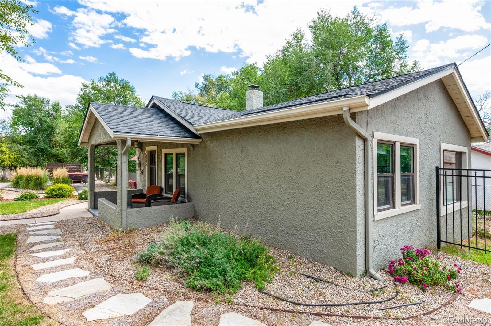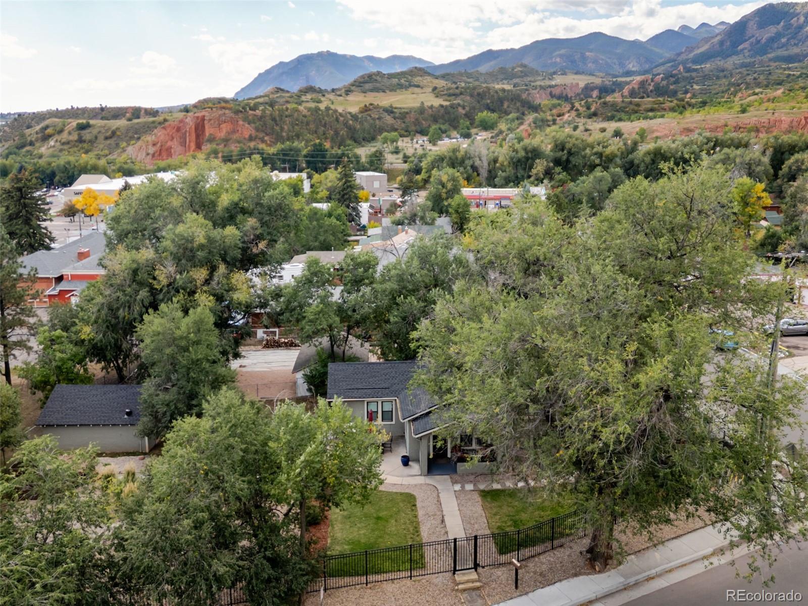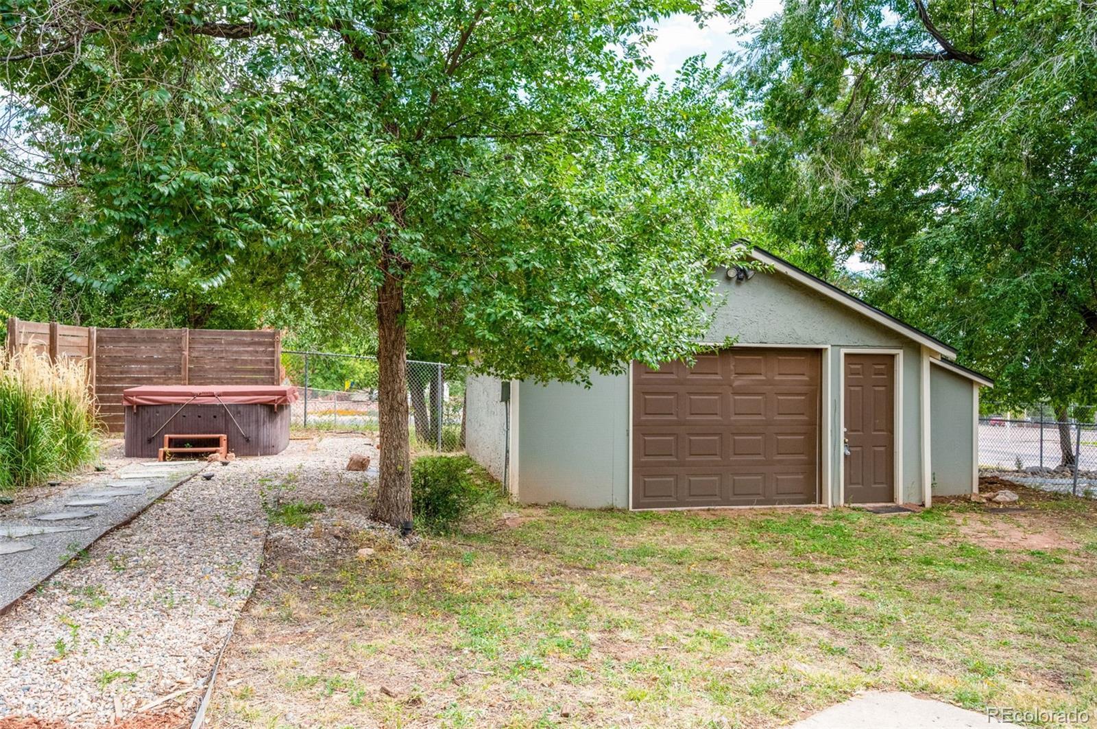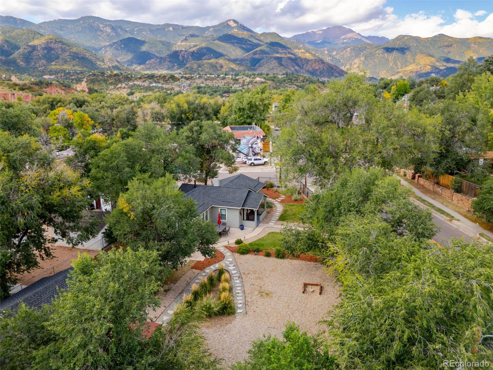 Beautifully redone ranch style home on a large double lot with R5 zoning! * Walking distance to Garden of the Gods and just minutes away from Red Rock Canyon Open Space, Hiking, biking, shopping and restaurants* Corner lot* Mature trees, nicely landscaped and fully fenced*Quiet Westside neighborhood* Move-in ready home* Warm hardwood floors* Spacious and modern kitchen with large windows and a view of Pikes Peak* Newer windows* Contemporary glass tile back splash in kitchen* Newer appliances that stay with the property* Generous sized Master bedroom* Ample sized second bedroom* Comfortable living room with wood floors and large windows* New roof with transferable warranty* HOT TUB with privacy fencing* Covered front porch for outdoor relaxation * Large concrete patio next to the front porch* Furnace replacement and central air added in 2019* Newer hot water heater 2021*Attractive metal fencing surrounding the property* Fully landscaped* Oversized detached garage with electrical and plenty of room for a work shop* A very comfortable and move-in ready home***** LOOK AT THE USES FOR THE R5 ZONING **** A great investment in a home!