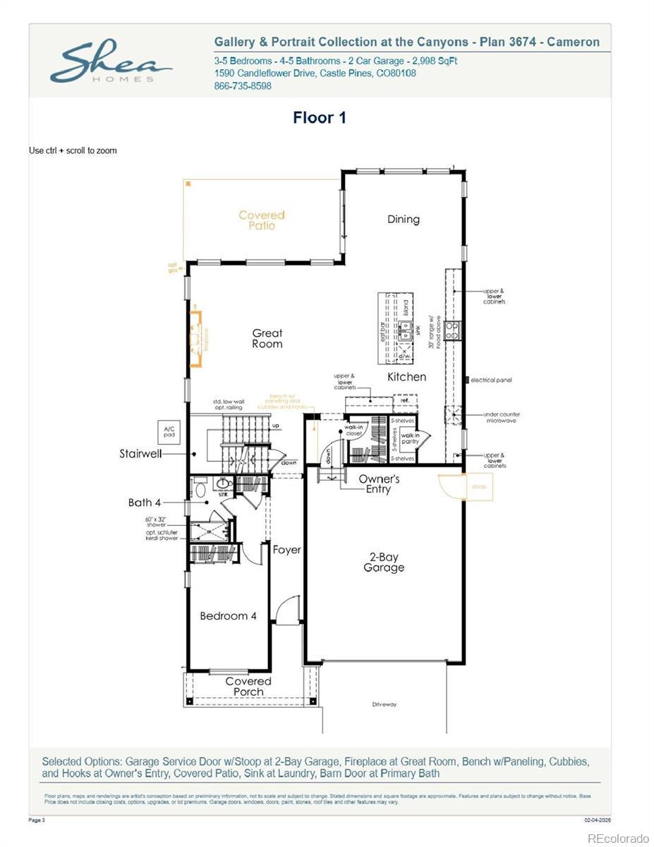 Gorgeous two story home in The Canyons. This home features 4 bedrooms, 4 bathrooms, loft, fireplace with full height tile surround, horizontal iron stair railing, covered patio, and 2-bay garage. Design finishes include Evoke luxury plank flooring in Summit/Peyton, AZT/DT engineered stone counter tops in Pencil Vein, and Yorktowne Brockton maple cabinets in Smoke. Please contact community representative for complete details. The Canyons Metropolitan Districts provide various services to the property and in addition to the estimated taxes, a $30 per month operations fee is imposed.