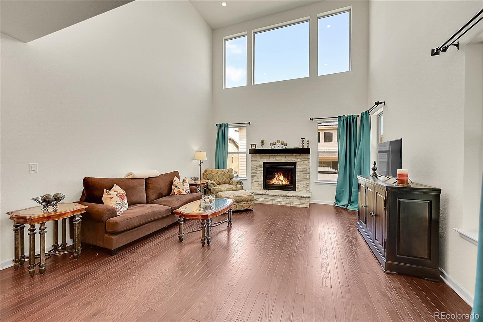 Welcome to this beautifully updated 3-bedroom, 3-bath home in the highly desirable Holly Hills Estates. Built in 2021, this move-in-ready gem offers modern finishes, high ceilings, and an open-concept layout perfect for today’s lifestyle. The main level features a spacious living room with a cozy fireplace, gourmet kitchen with granite counters, large island, and eat-in dining. A dedicated office and the luxurious primary suite with walk-in closet and full bath complete the main floor. Upstairs, you’ll find two more bedrooms, two bathrooms, and flexible loft-style space. The unfinished basement offers endless potential for future expansion. Step outside to a private patio and low-maintenance yard. Enjoy premium community amenities including a pool, clubhouse, fitness center, parks, and seasonal pond. Located on a quiet street in a professionally managed neighborhood with quick access to top-rated schools, shopping, and I-25. This is the perfect blend of modern design, comfort, and location—don’t miss your chance to call it home!