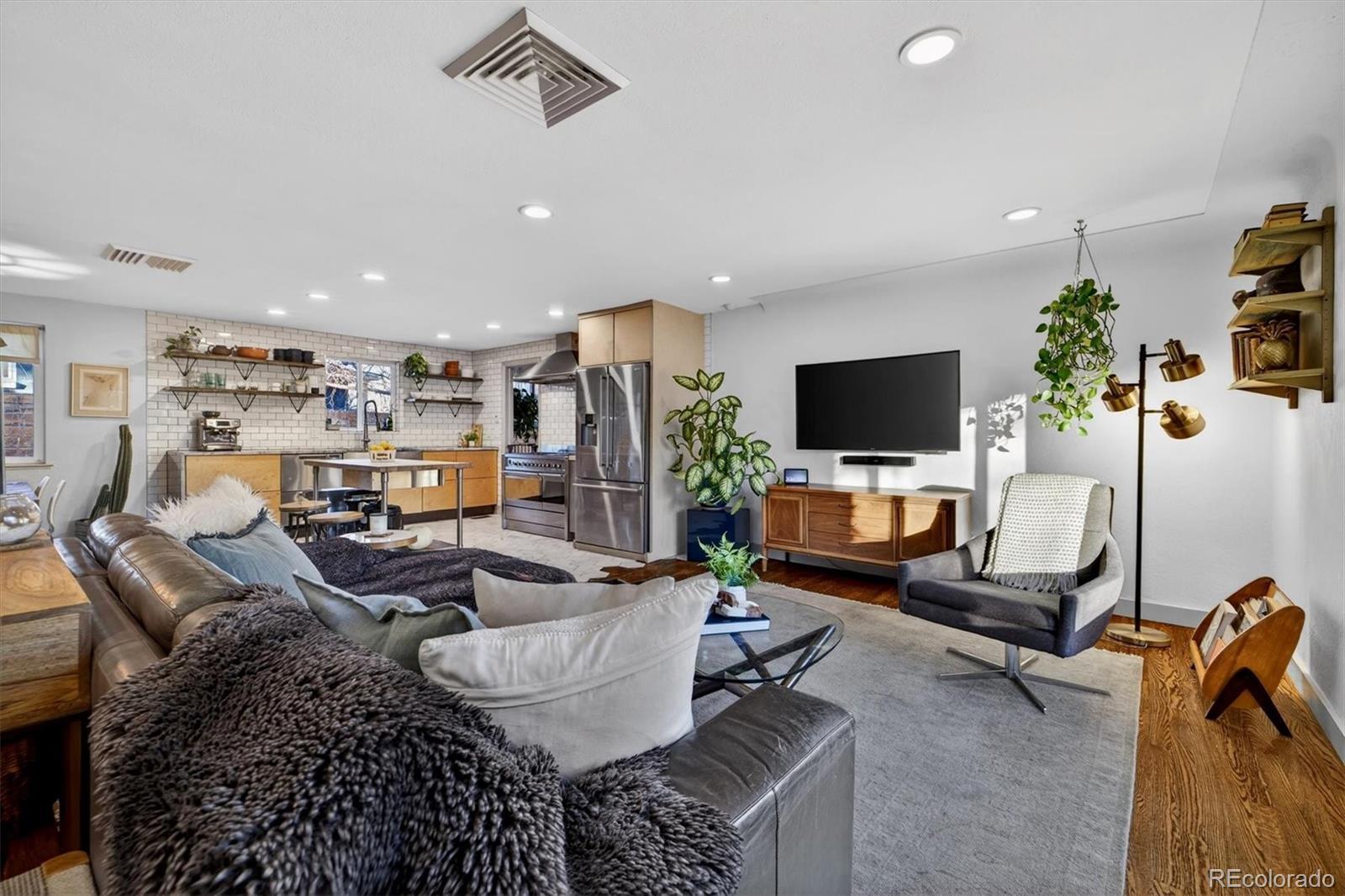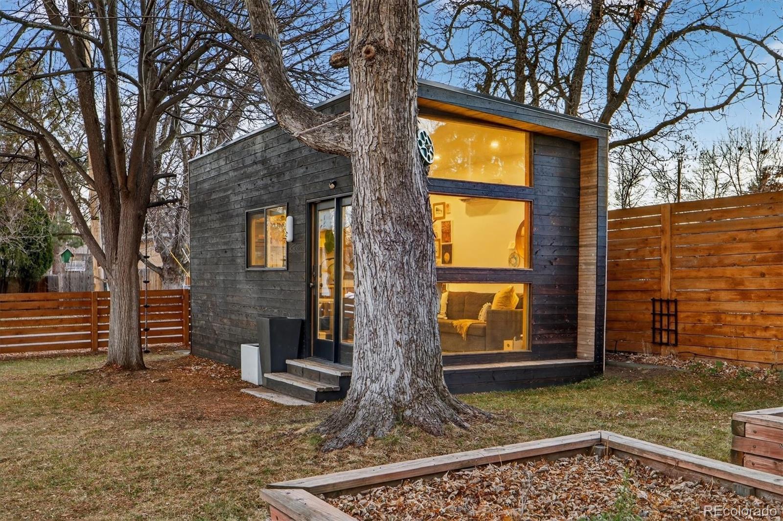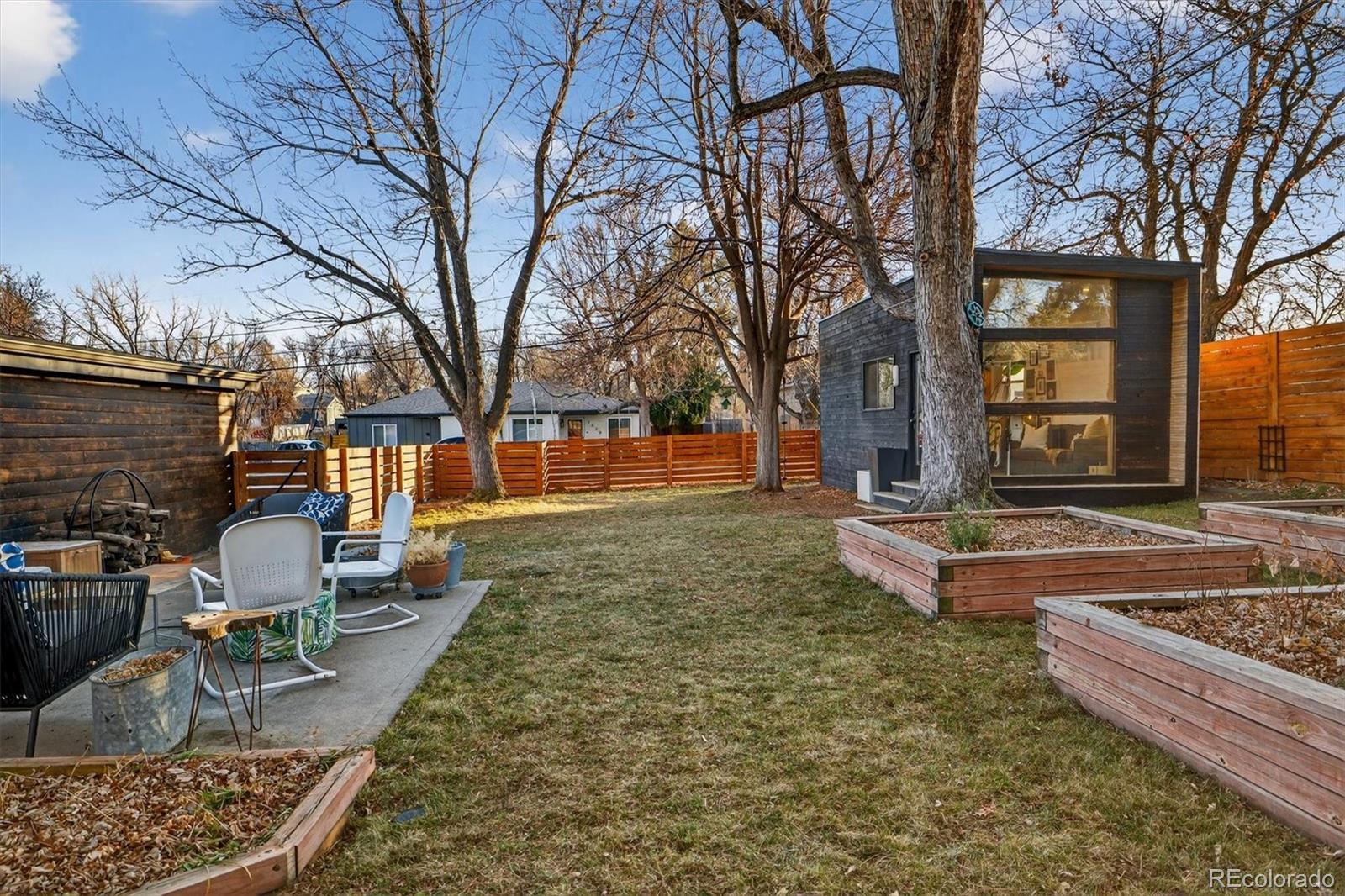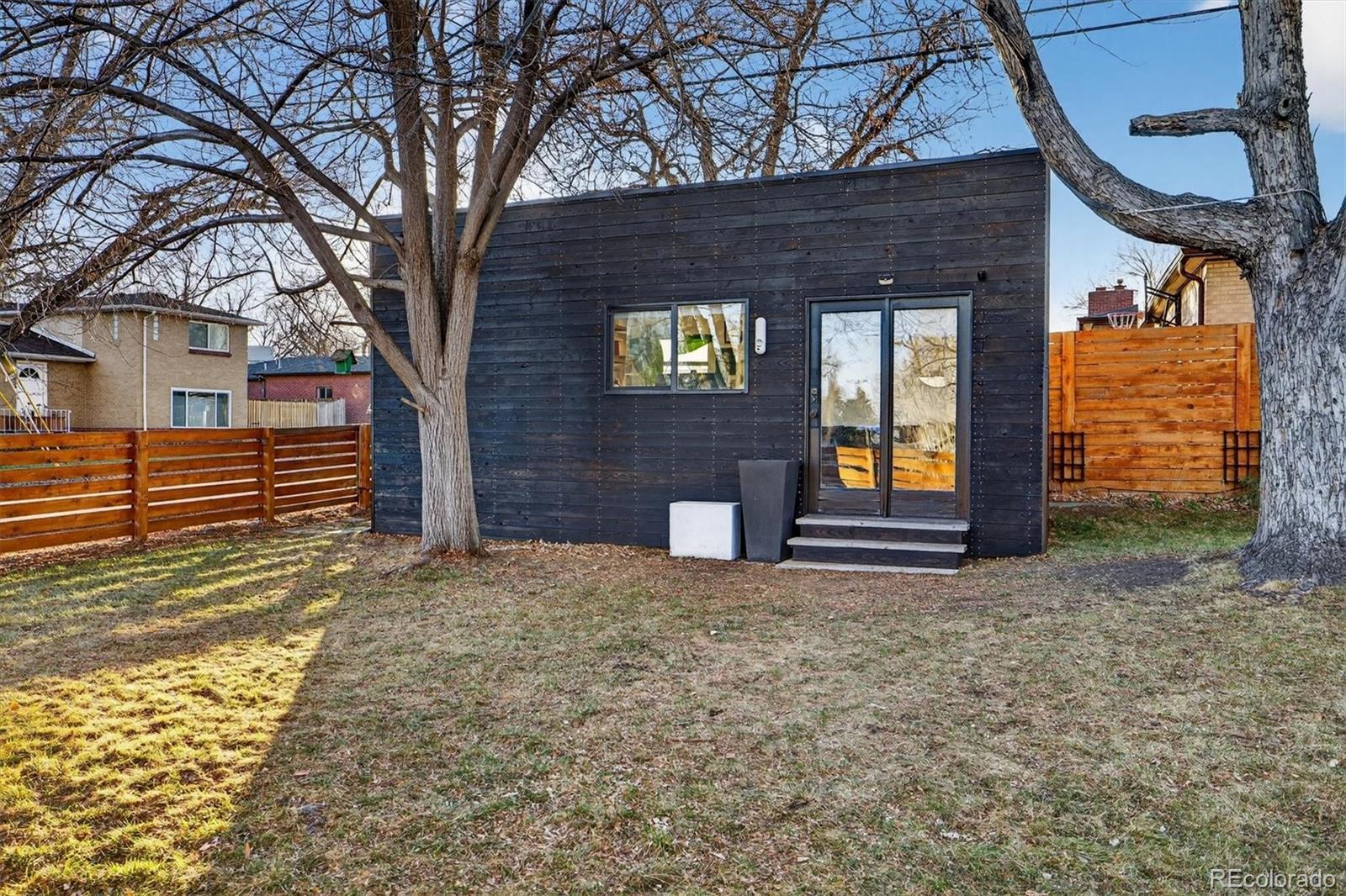 With over 250K+ of improvements, this is not a flip. This is a completely updated home, siding, electrical, flooring landscaping, fixtures, an ADU. This stunning home has been remodeled by the sellers with love. Come check out this one-of-a-kind mid-century gem, ideally located on the Lakewood–Edgewater border just minutes from Sloan’s Lake, Edgewater Marketplace, Downtown Denver. Inside, original 1950s cove ceilings, hardwood floors, and custom tilework bring timeless character, while the open, modern layout creates a warm and effortless flow. The chef’s kitchen is the heart of the home, featuring a 48” professional-style range, striking Italian SMEG appliances, and thoughtful storage, including a custom pantry—perfect for both everyday living and entertaining. The main level offers three comfortable bedrooms, a well-appointed bathroom, a dedicated laundry room, and a versatile bonus space ideal for a TV room, playroom, or home office. Owned by a custom woodworker, the home showcases handcrafted built-ins, oversized closets, and exceptional attention to detail throughout. A true standout is the approximately 200 sq ft ADU office studio with soaring 12-foot ceilings, floor-to-ceiling windows, and direct garden access and a mini-split for heating with its own sub panel with open spots—an inspiring work-from-home retreat. The backyard is a private oasis with mature trees, perennial gardens, and three irrigated raised beds with established berries and blooming lilacs each spring. Three outdoor seating areas offer space to relax or entertain, complete with electrical access and an outdoor projection screen for movie nights. Animal lovers will appreciate the custom dog run, charming chicken coop, garden shed, and organized outdoor gear storage with easy pack-in, pack-out access. Major upgrades include a high-efficiency furnace, tankless water heater, and a brand-new roof and everything else! This is one you have to see, schedule a showing at your new home!