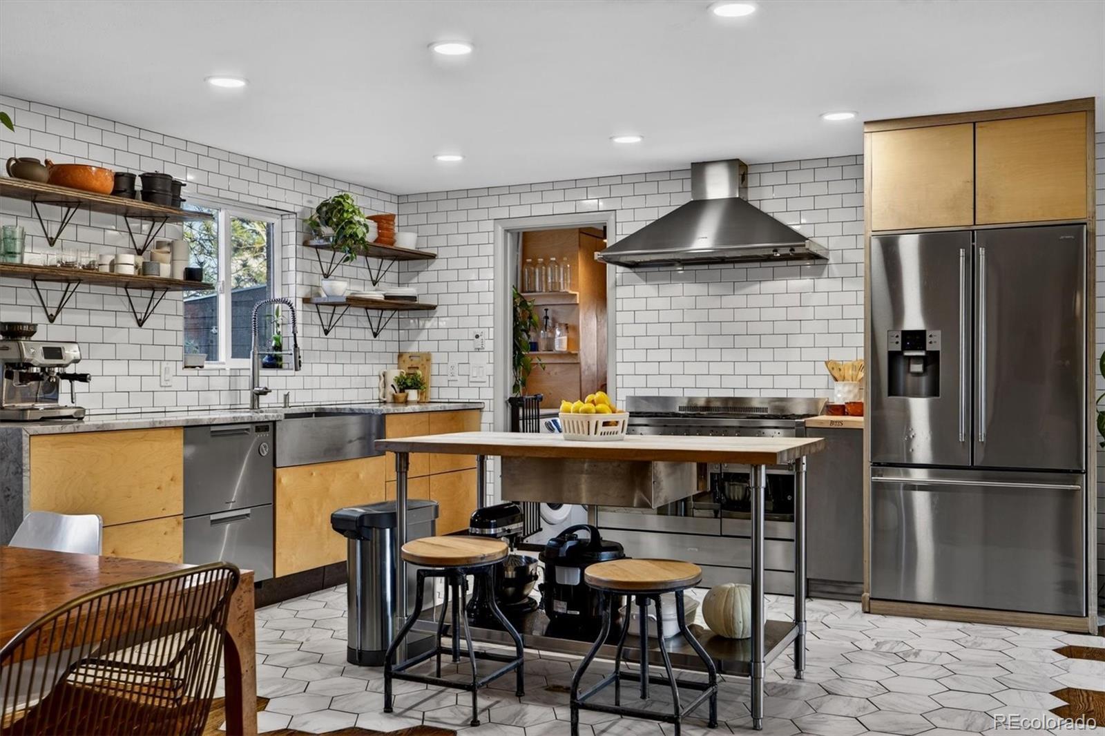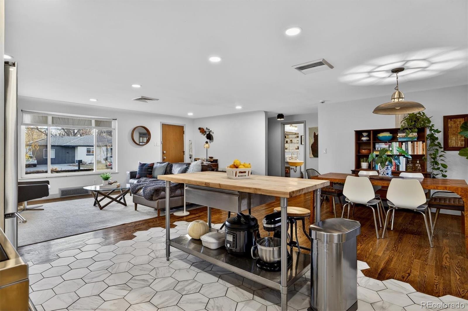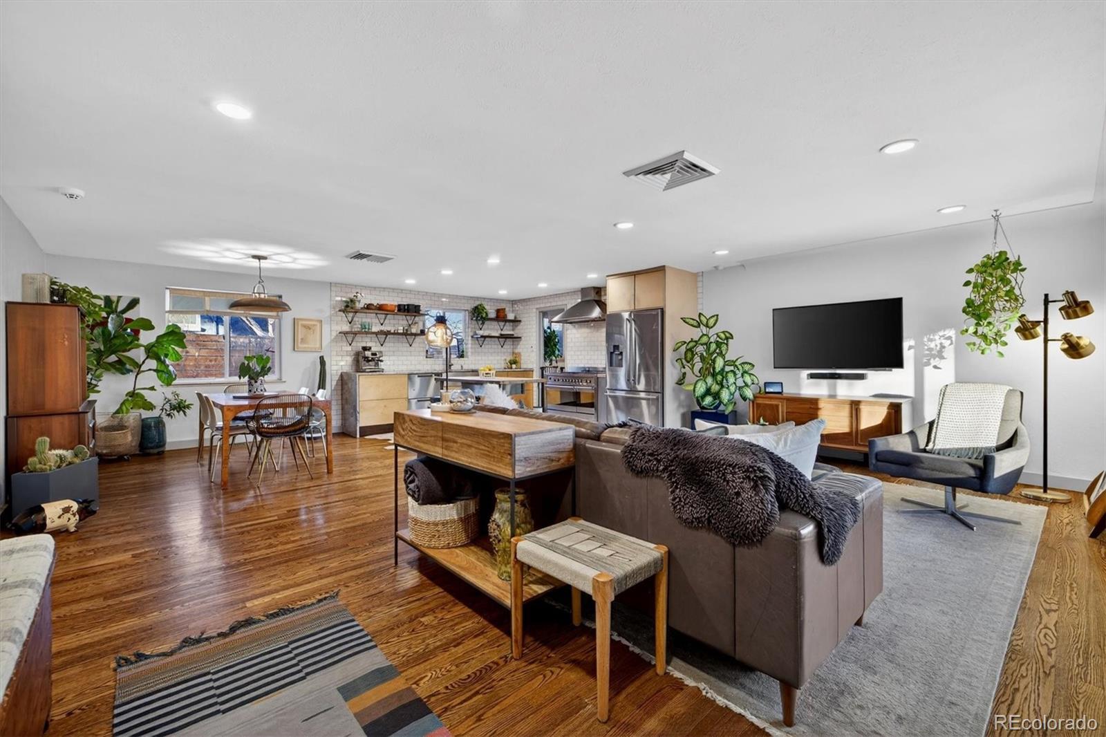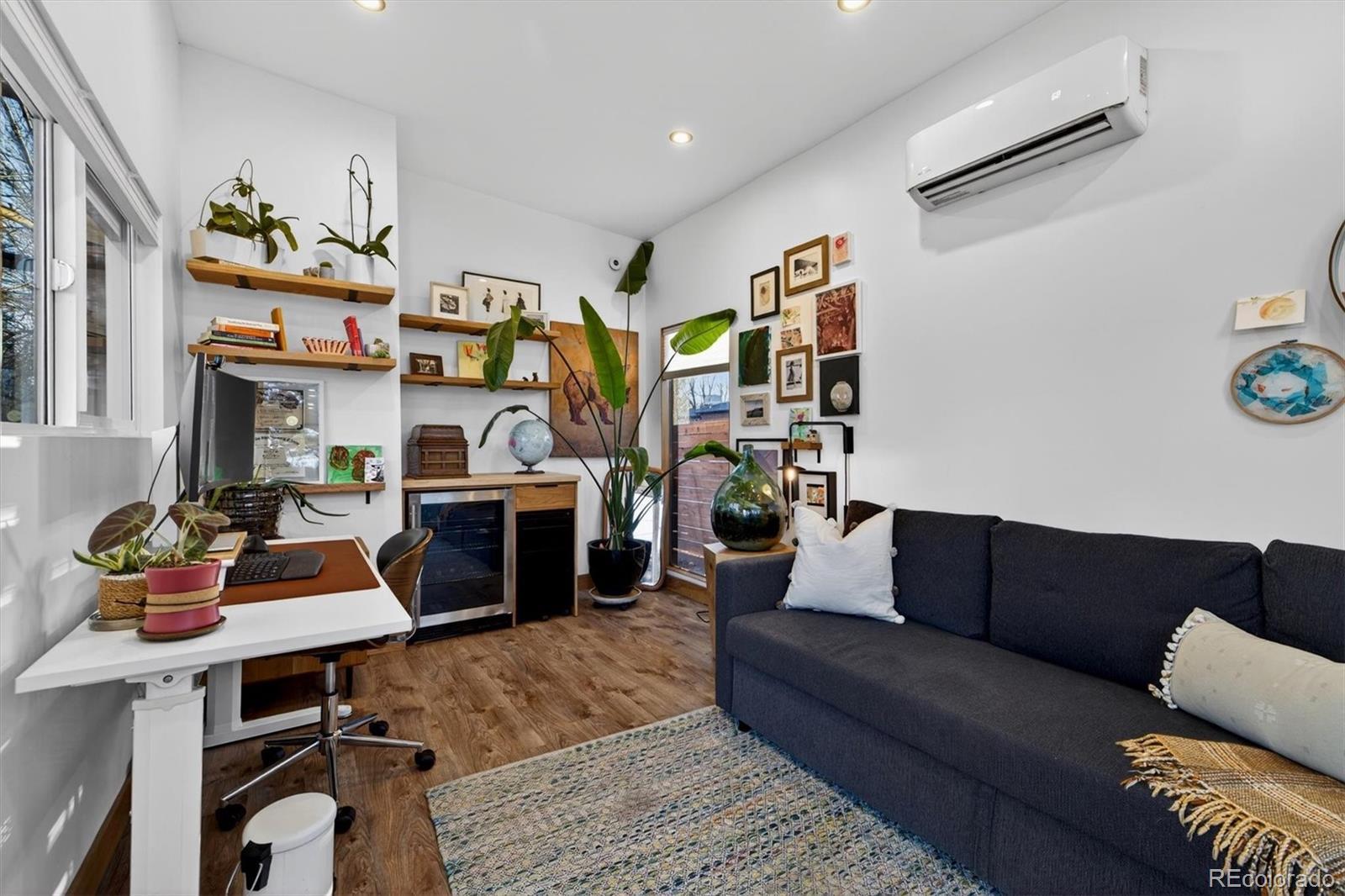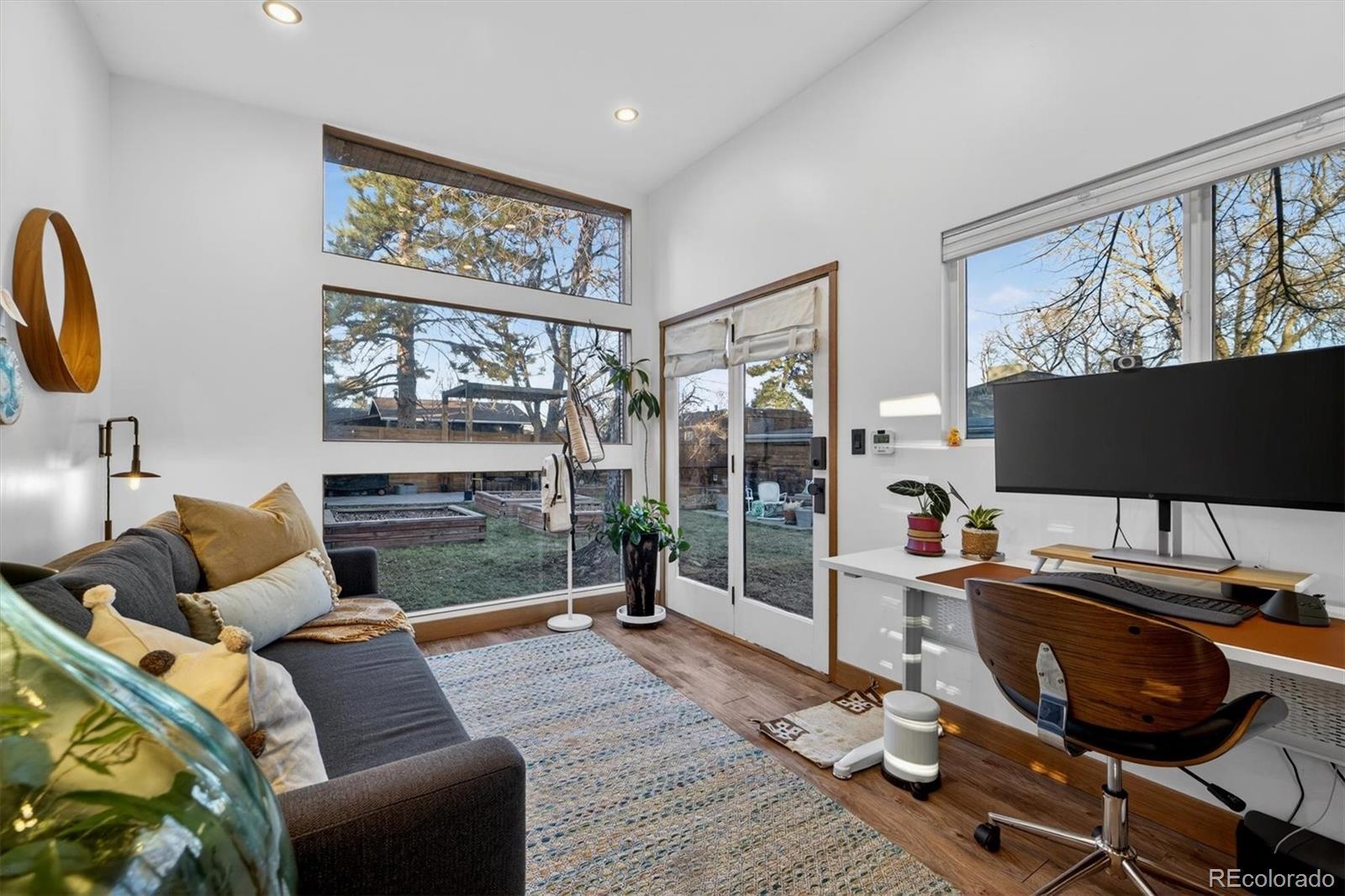 With over 250K+ of improvements, this is not a flip. This is a completely updated home, siding, electrical, flooring landscaping, fixtures, an ADU. This stunning home has been remodeled by the sellers with love. Come check out this one-of-a-kind mid-century gem, ideally located on the Lakewood–Edgewater border just minutes from Sloan’s Lake, Edgewater Marketplace, Downtown Denver. Inside, original 1950s cove ceilings, hardwood floors, and custom tilework bring timeless character, while the open, modern layout creates a warm and effortless flow. The chef’s kitchen is the heart of the home, featuring a 48” professional-style range, striking Italian SMEG appliances, and thoughtful storage, including a custom pantry—perfect for both everyday living and entertaining. The main level offers three comfortable bedrooms, a well-appointed bathroom, a dedicated laundry room, and a versatile bonus space ideal for a TV room, playroom, or home office. Owned by a custom woodworker, the home showcases handcrafted built-ins, oversized closets, and exceptional attention to detail throughout. A true standout is the approximately 200 sq ft ADU office studio with soaring 12-foot ceilings, floor-to-ceiling windows, and direct garden access and a mini-split for heating with its own sub panel with open spots—an inspiring work-from-home retreat. The backyard is a private oasis with mature trees, perennial gardens, and three irrigated raised beds with established berries and blooming lilacs each spring. Three outdoor seating areas offer space to relax or entertain, complete with electrical access and an outdoor projection screen for movie nights. Animal lovers will appreciate the custom dog run, charming chicken coop, garden shed, and organized outdoor gear storage with easy pack-in, pack-out access. Major upgrades include a high-efficiency furnace, tankless water heater, and a brand-new roof and everything else! This is one you have to see, schedule a showing at your new home!