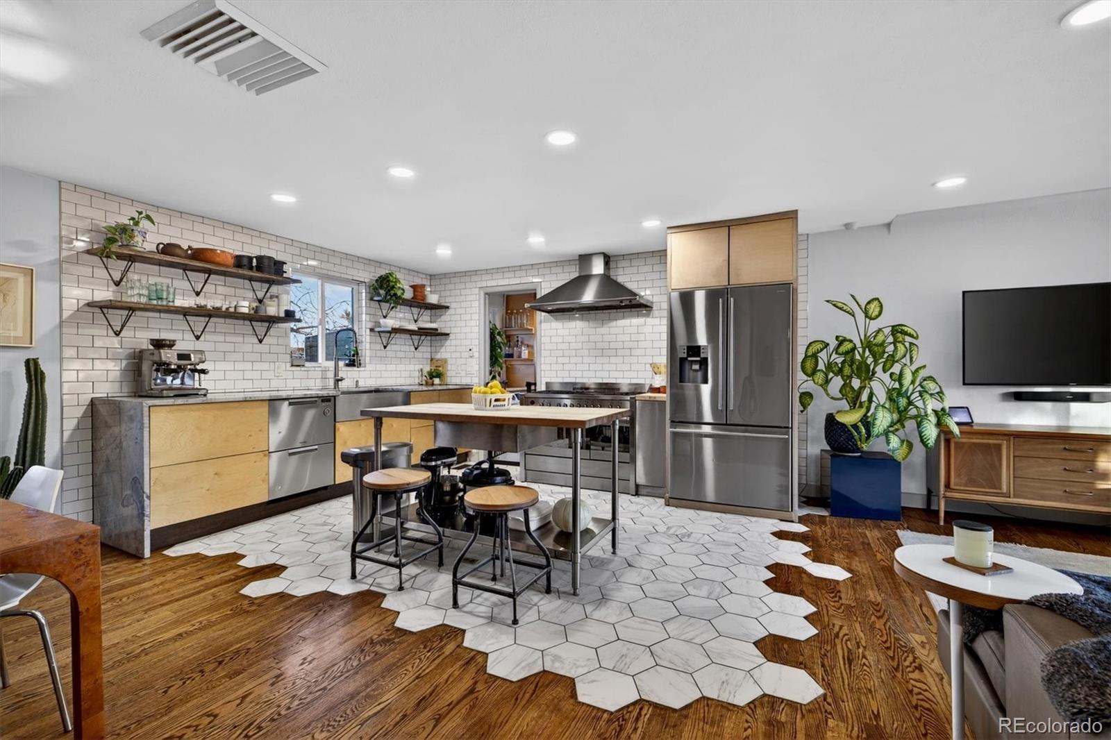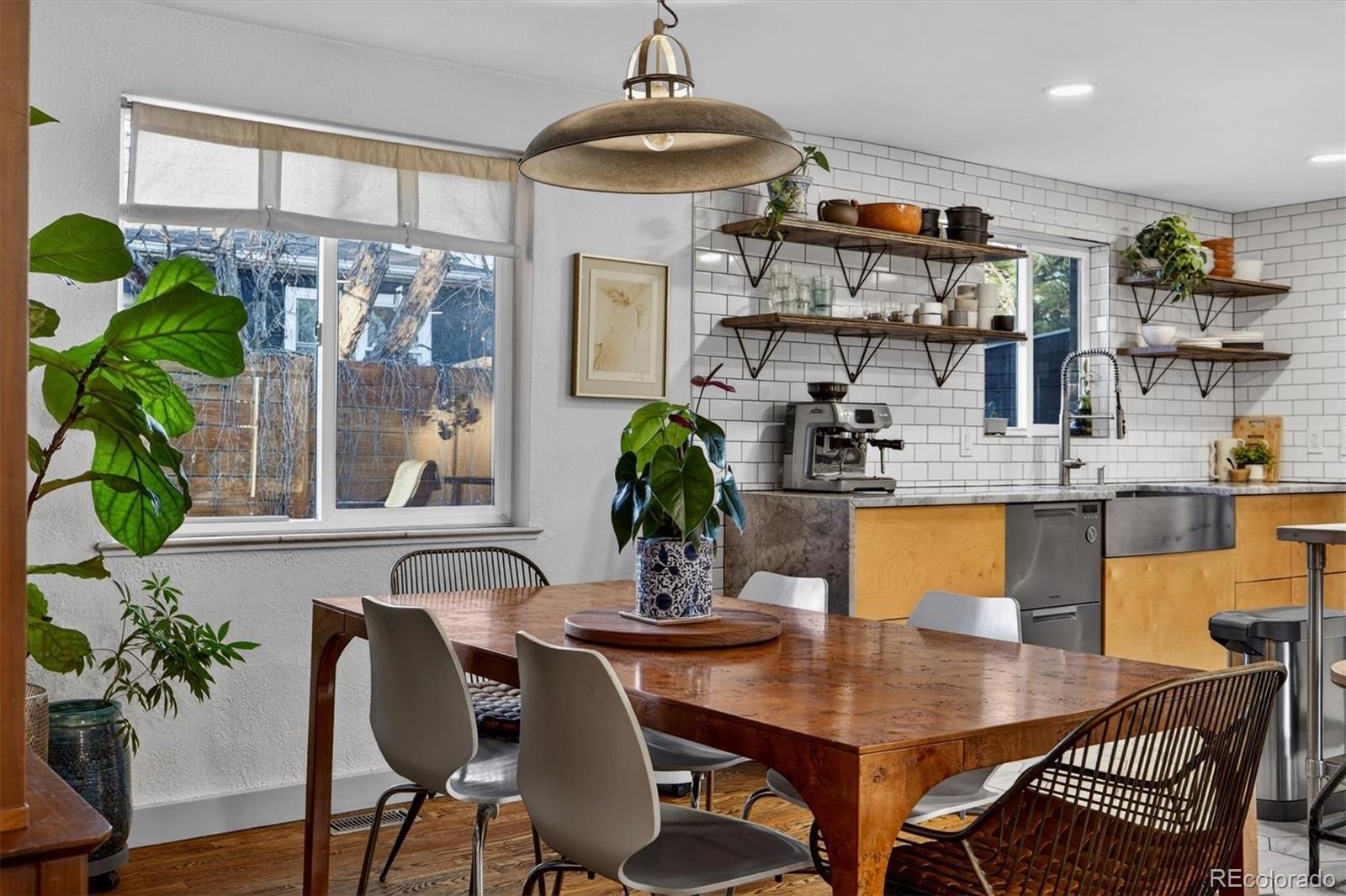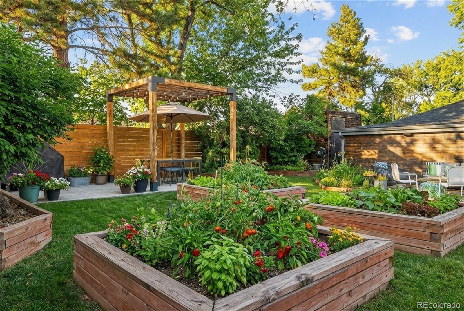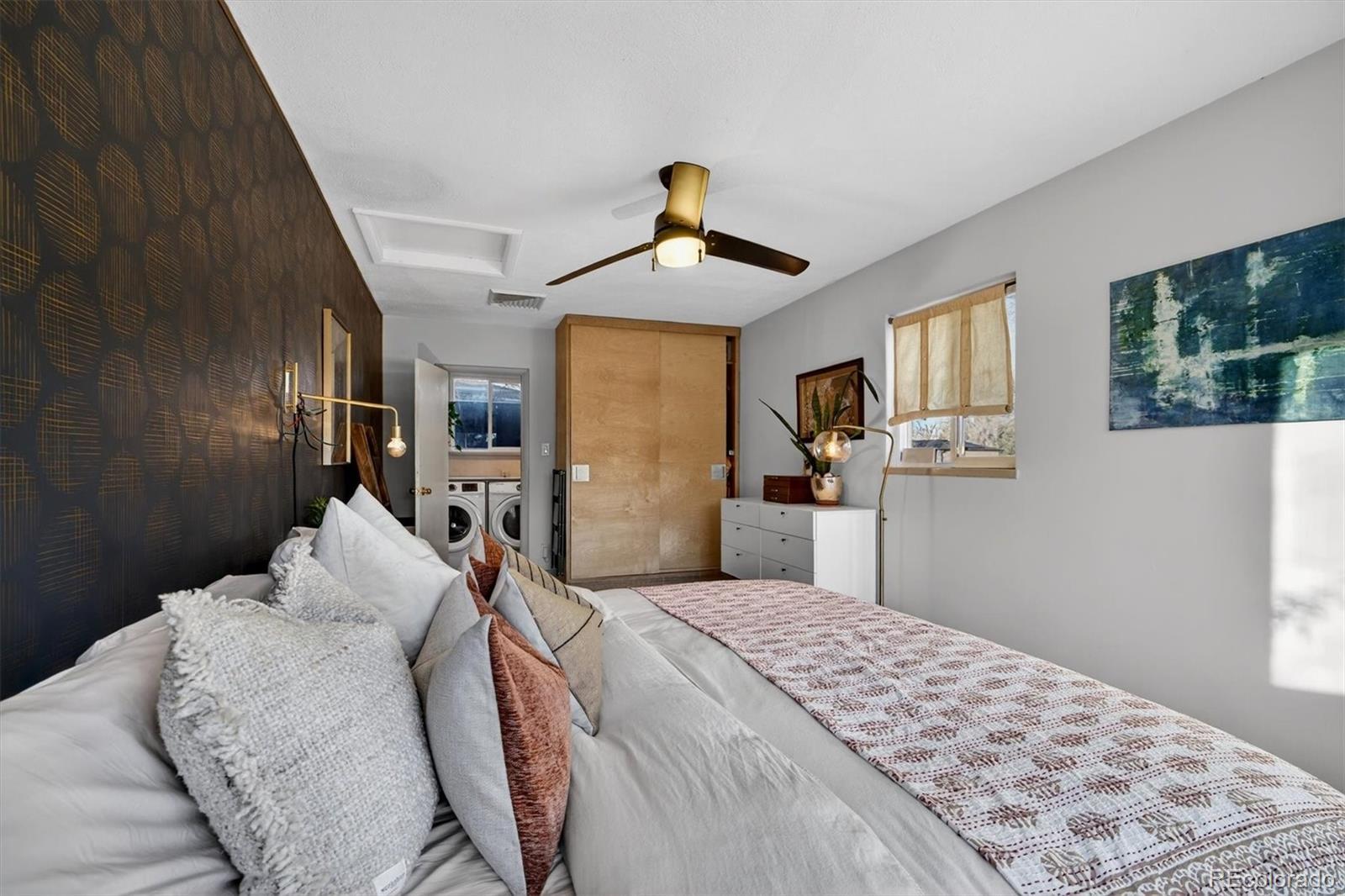 With over 250K+ of improvements, this is not a flip. This is a completely updated home, siding, electrical, flooring landscaping, fixtures, an ADU. This stunning home has been remodeled by the sellers with love. Come check out this one-of-a-kind mid-century gem, ideally located on the Lakewood–Edgewater border just minutes from Sloan’s Lake, Edgewater Marketplace, Downtown Denver. Inside, original 1950s cove ceilings, hardwood floors, and custom tilework bring timeless character, while the open, modern layout creates a warm and effortless flow. The chef’s kitchen is the heart of the home, featuring a 48” professional-style range, striking Italian SMEG appliances, and thoughtful storage, including a custom pantry—perfect for both everyday living and entertaining. The main level offers three comfortable bedrooms, a well-appointed bathroom, a dedicated laundry room, and a versatile bonus space ideal for a TV room, playroom, or home office. Owned by a custom woodworker, the home showcases handcrafted built-ins, oversized closets, and exceptional attention to detail throughout. A true standout is the approximately 200 sq ft ADU office studio with soaring 12-foot ceilings, floor-to-ceiling windows, and direct garden access and a mini-split for heating with its own sub panel with open spots—an inspiring work-from-home retreat. The backyard is a private oasis with mature trees, perennial gardens, and three irrigated raised beds with established berries and blooming lilacs each spring. Three outdoor seating areas offer space to relax or entertain, complete with electrical access and an outdoor projection screen for movie nights. Animal lovers will appreciate the custom dog run, charming chicken coop, garden shed, and organized outdoor gear storage with easy pack-in, pack-out access. Major upgrades include a high-efficiency furnace, tankless water heater, and a brand-new roof and everything else! This is one you have to see, schedule a showing at your new home!