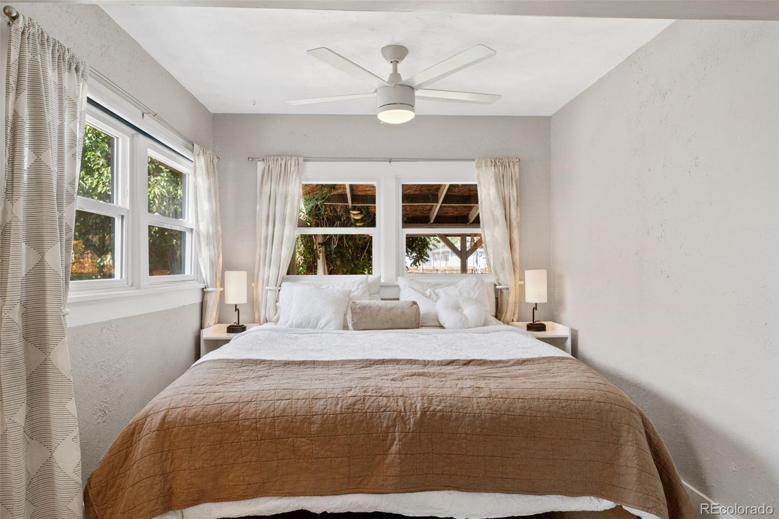 Welcome to the jewel of Globeville. This 1930 bungalow features historic character along with desired modern updates. The main floor features hardwoods and an open layout with plenty of space for a family room, dining space, and a large kitchen. Two bedrooms (including an oversized primary bedroom) and a full bathroom complete the main floor. The basement features two additional conforming bedrooms with new egress windows, a living space, laundry, and a large bathroom. An available second entrance makes the space great for guests or potential renters. The backyard is a private oasis, including a covered back deck and well-manicured yard with two storage sheds. The side driveway offers abundant off-street parking. Blocks from Argo Park and a 4-minute drive from the heart of RiNo, this home is one of the best that Globeville has to offer. See it today! // New egress windows 2025. New Furnace 2023. New Class-4 Impact-Resistant Roof 2025. New Washer/Dryer 2025. Refreshed Kitchen 2025.