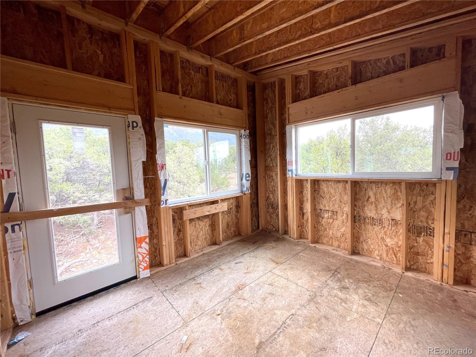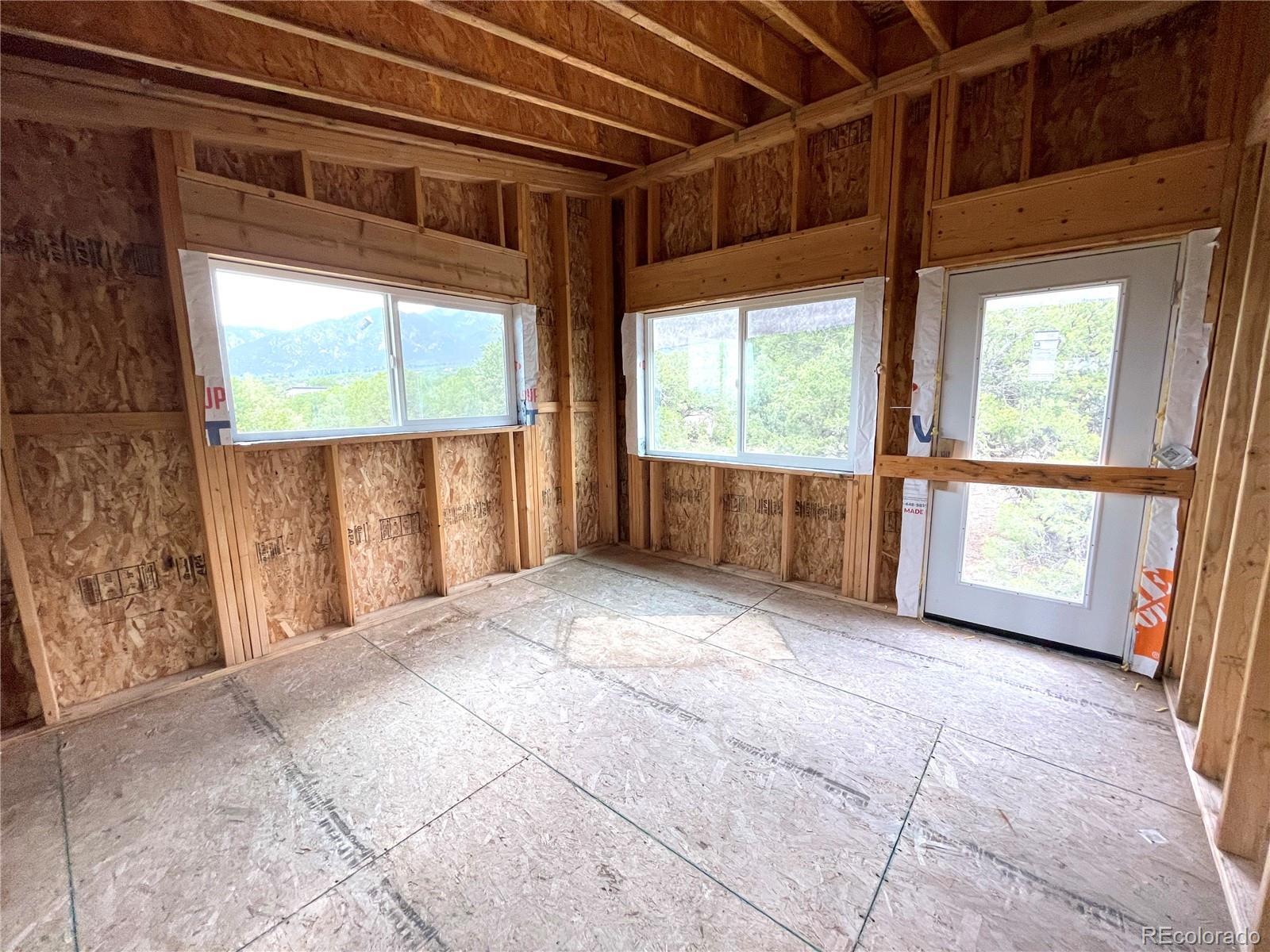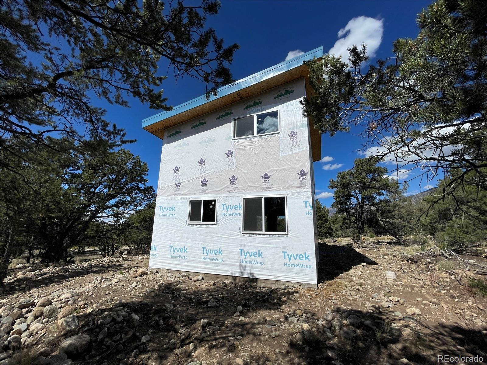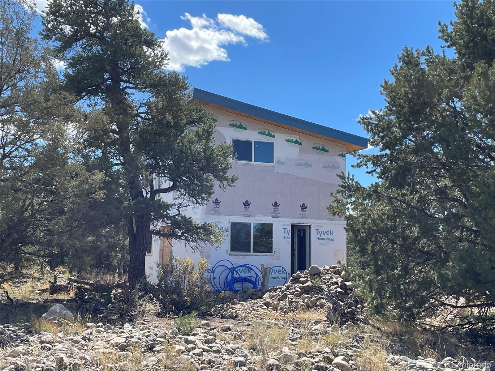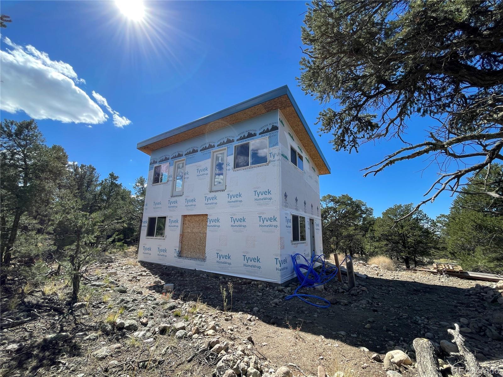 Two story, unfinished home build is on a tranquil partially wooded location in Chalet 2 of the Baca Grande subdivision. This is a great start for any buyer looking to finish their home with their own desired tastes. A solid, professionally built wooden framed structure is dried-in and ready for your finishing touches with new metal roof! Electric is at the lot line, plumbing is stubbed next to home, stairs built, new windows and doors set, concrete footings for future decks, and wooden framed walls erected to separate upstairs rooms. With stunning views from the second floor of the Sangre de Cristo Mountains and the San Luis Valley, this partially wooded corner lot backs to the greenbelt of Spanish Creek which prevents future development on the westside. Located only a short distance on Spanish Creek Rd to paved road access of Wagonwheel Rd. creating an easy 10 minute drive to the quaint town of Crestone which features restuarants, gift stores, galleries, grocery stores, hardware store and offers seasonal festivals. Crestone is a desiganted Dark Sky community which makes it easy to stargaze from this property. Minutes to walking trails and spiritual centers, only 30 minutes to the local hot springs, 1 hour to Salida or Alamosa. High speed internet is available. Tap fees paid but pump required to complete sewer hookup. Electrical not yet laid out within the new build. Building plans available. Unfinished home is AS-IS and buyers will need to complete on their own. Buyer to verify permit process to finish the build. Most of the hard work has been completed for such a low price. Price increase reflects new metal roof installed. Book your tour today!