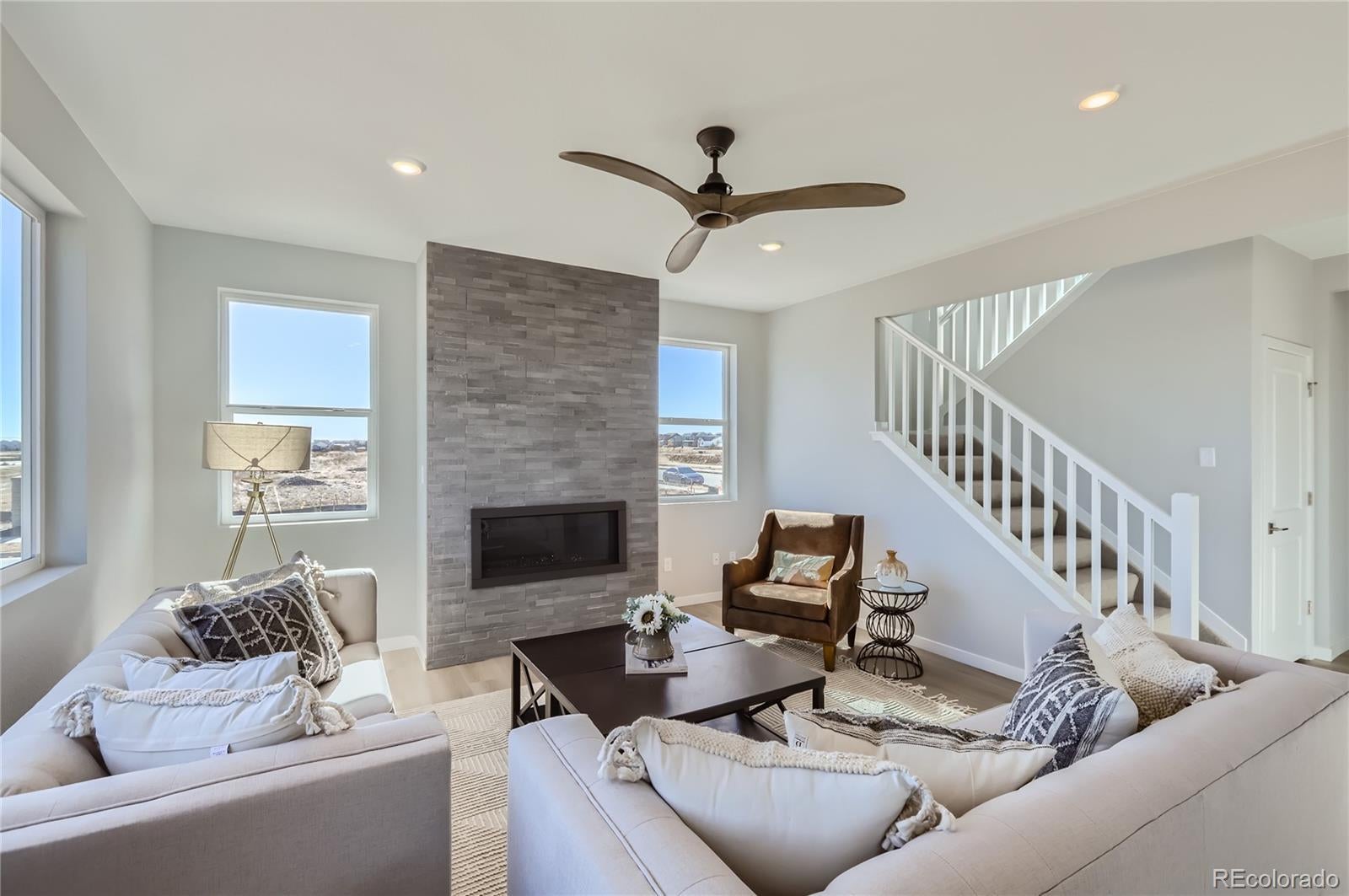 Financing incentives available!! Welcome to your dream home in the heart of Strasburg! Ready in NOVEMBER 2025. This stunning 4-bedroom, 2.5 bathroom, study, and upper level loft! This residence offers 2,476 square feet of beautifully designed living space, perfect for families, entertaining, or working from home. Step inside to an inviting open floor plan, featuring a spacious living area, a modern kitchen with stainless steel appliances, charcoal gray cabinets, granite countertops, and a large island. The primary suite is a true retreat, boasting a generous walk-in closet and a private ensuite bath with dual vanities and a soaking tub. Enjoy three additional bedrooms that are well-sized and versatile – ideal for kids, guests, a home office, or a playroom. Outside, you'll find a large backyard perfect for barbecues, gardening, or enjoying the peaceful Colorado evenings. Located in a quiet, family-friendly neighborhood, you're just minutes from local schools, parks, and easy access to I-70 for commuting to Denver or DIA. * EXAMPLE PHOTOS ARE NOT ACTUAL HOME. *