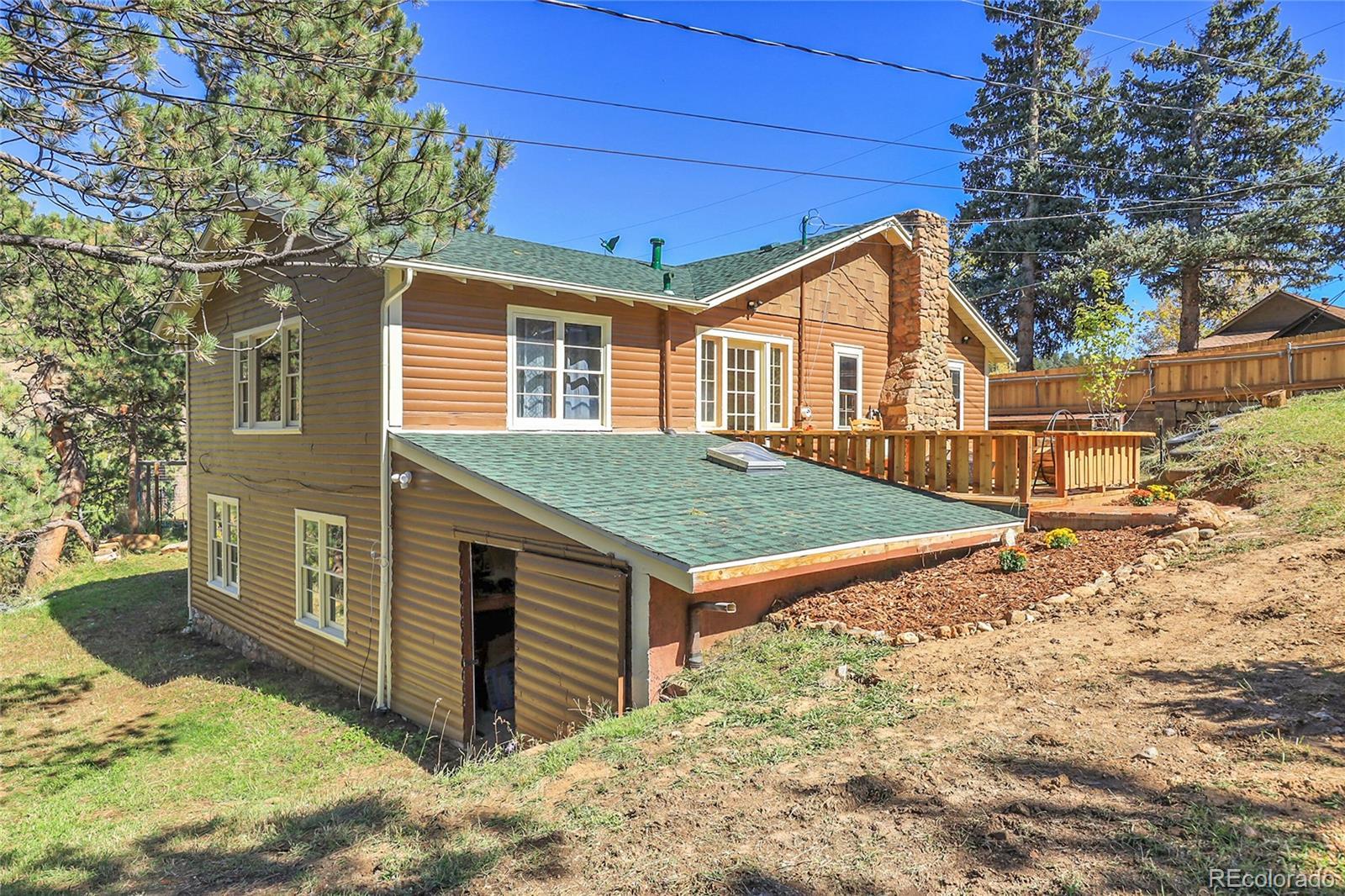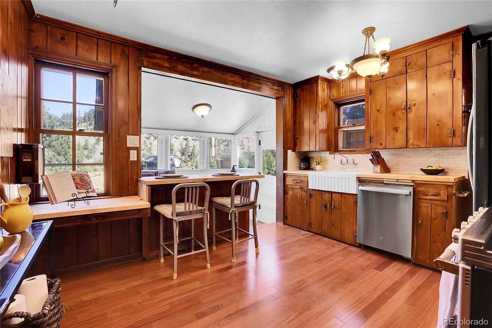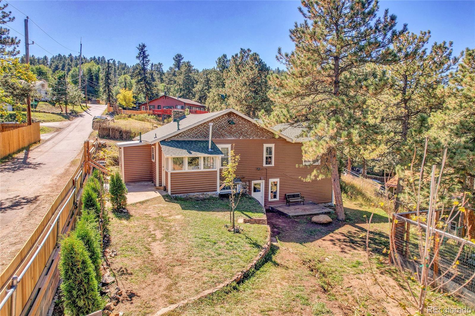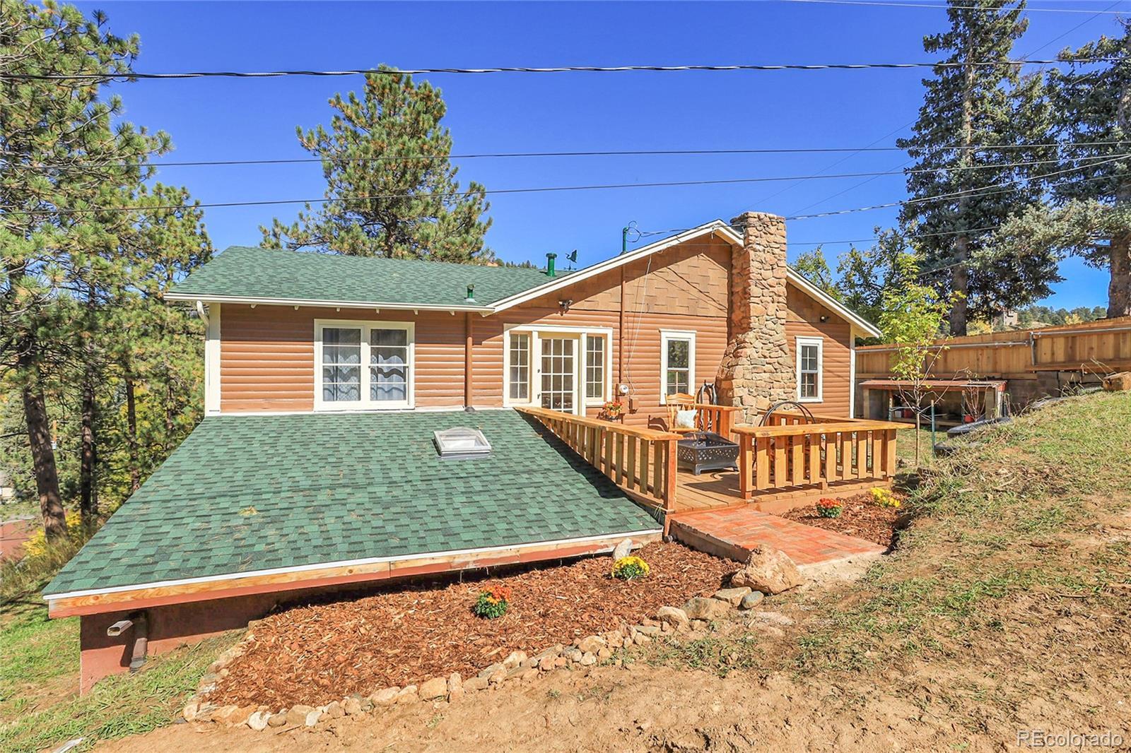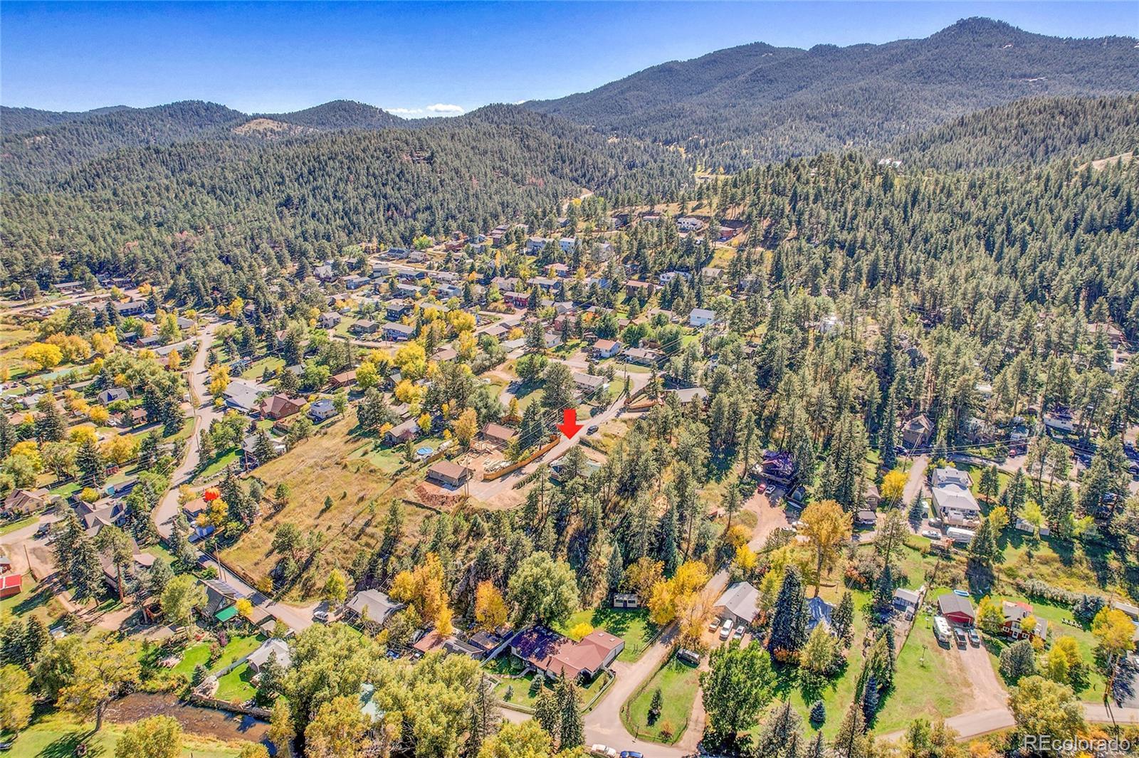 Welcome to this darling cottage, tucked away at the end of a quiet street on a rare, private ½-acre double lot with scenic views. This property blends vintage charm with extensive modern improvements for peace of mind, including a new electric panel, new roof, new sewer line, new interior & exterior paint, new deck, new bathroom & much more. Step inside & you will find warm character & ample space, starting with a cozy living room with hardwood floors & stone fireplace, and additional large sunlit family room. The updated kitchen is a gathering place, complete with all-new butcher block countertops & farm sink. Bar seating makes the kitchen a great place to hang, especially next to the cozy wood burning stove. The bedroom offers flexibility—perfect as a primary for main level living, or an office. Many rooms feature knotty pine, which can be left as-is or painted for a modern farmhouse look. Head downstairs to find a brand new kitchenette, 2 bedrooms with ample closets (one a walk-in), flex space for workout or crafting, laundry room & a lovely new bathroom with a luxury shower. This is an ideal primary bedroom area, with access to the yard. The newly built south-facing deck offers great outdoor living, as does much of the lot with plenty of flat area, fenced garden, privacy & views! The large attached workshop/storage has plentiful cabinetry & workbench Lots of parking too. This is a peaceful, private setting where one can hear the rippling waters of Bear Creek below. The darling hamlet of Kittredge offers so much - walk to the coffee shop, stroll to the park for a stream side picnic, experience fishing & miles of trails just 5 min away. And, it’s only 2 miles to downtown Evergreen with restaurants, shops, amenities & the lake. Or head to Red Rocks Amphitheater & all that Denver offers – just 12 min away! Public road and utilities, not to mention the plethora of upgrades, make this vintage charmer a modern delight! 3D Tour & more pics: www.3425 BurnhamDrive.com