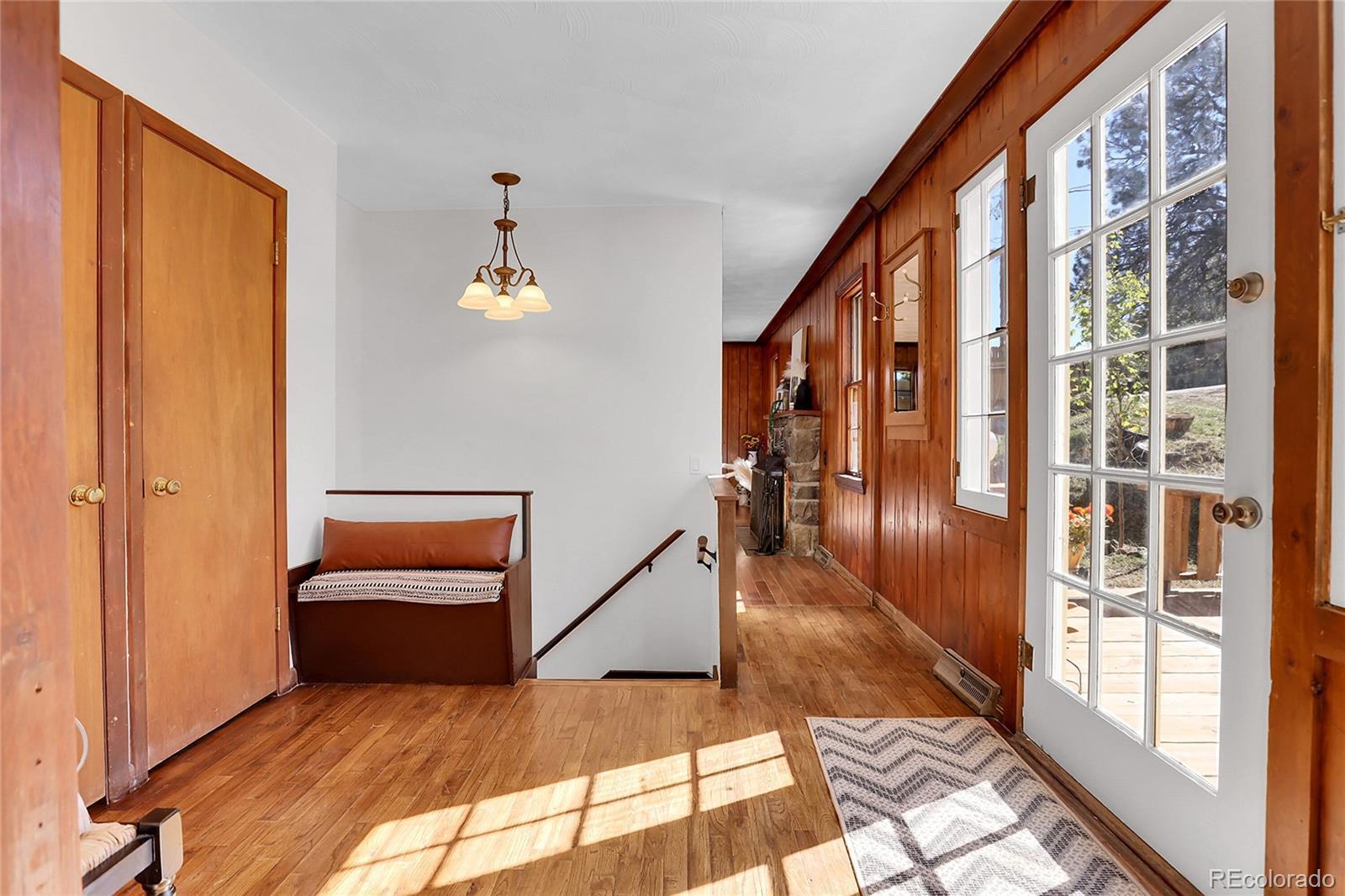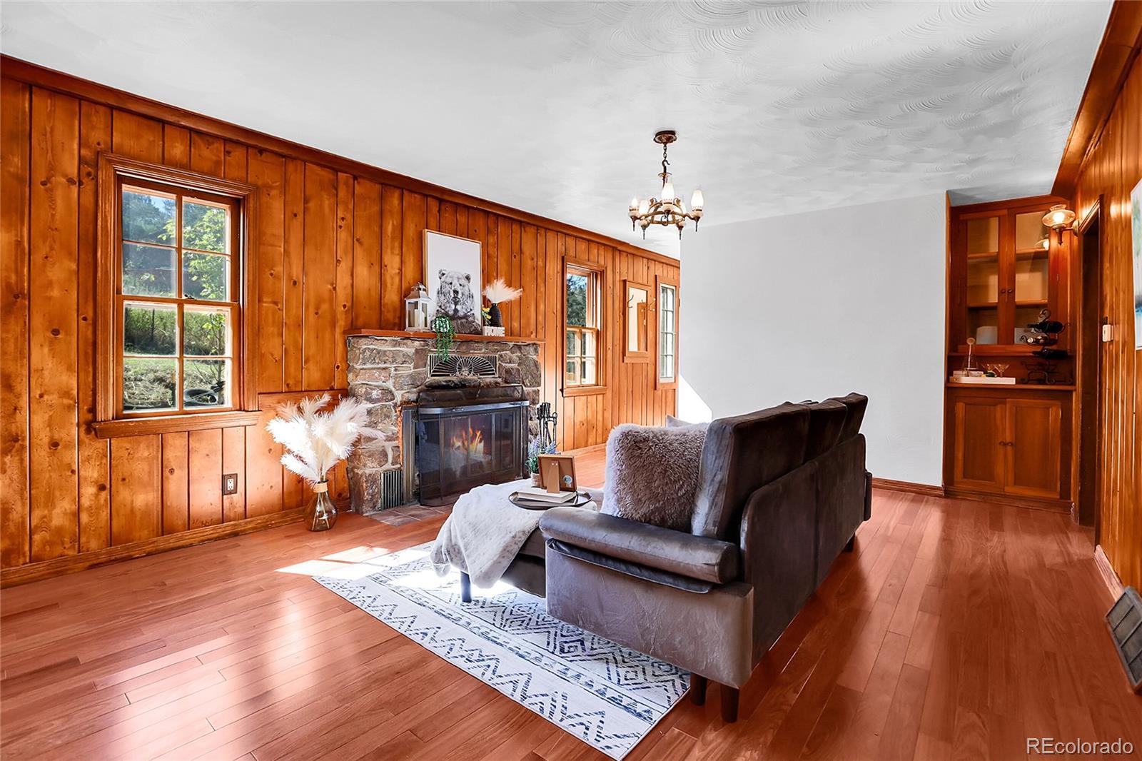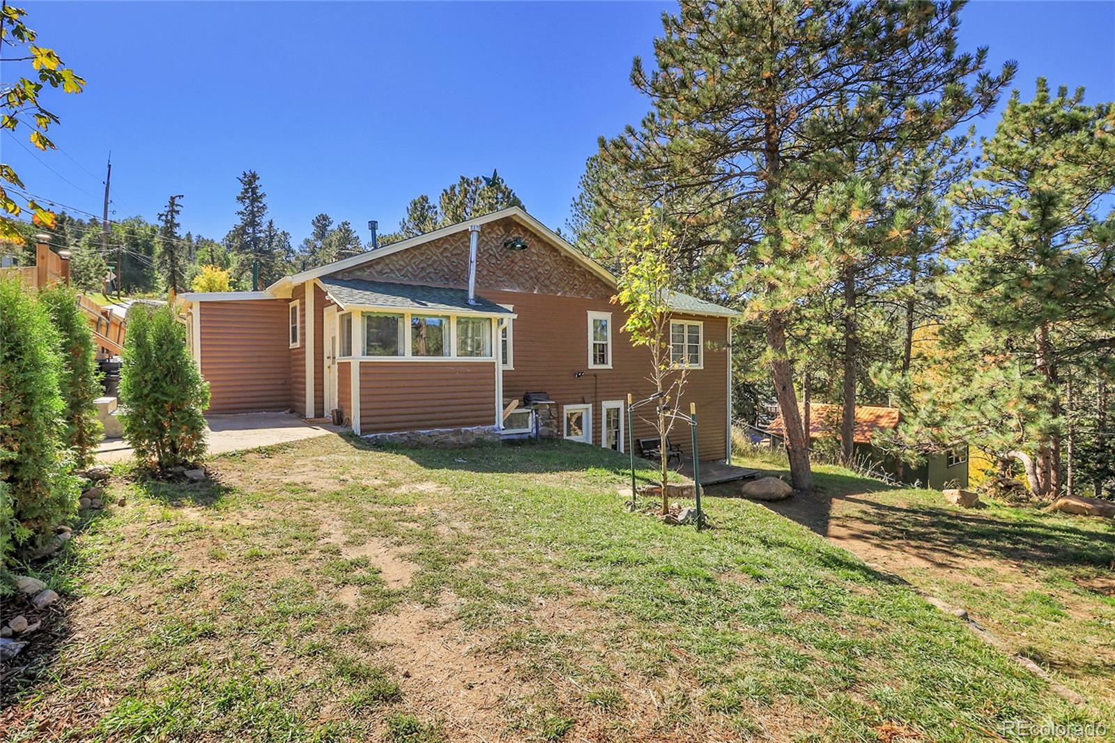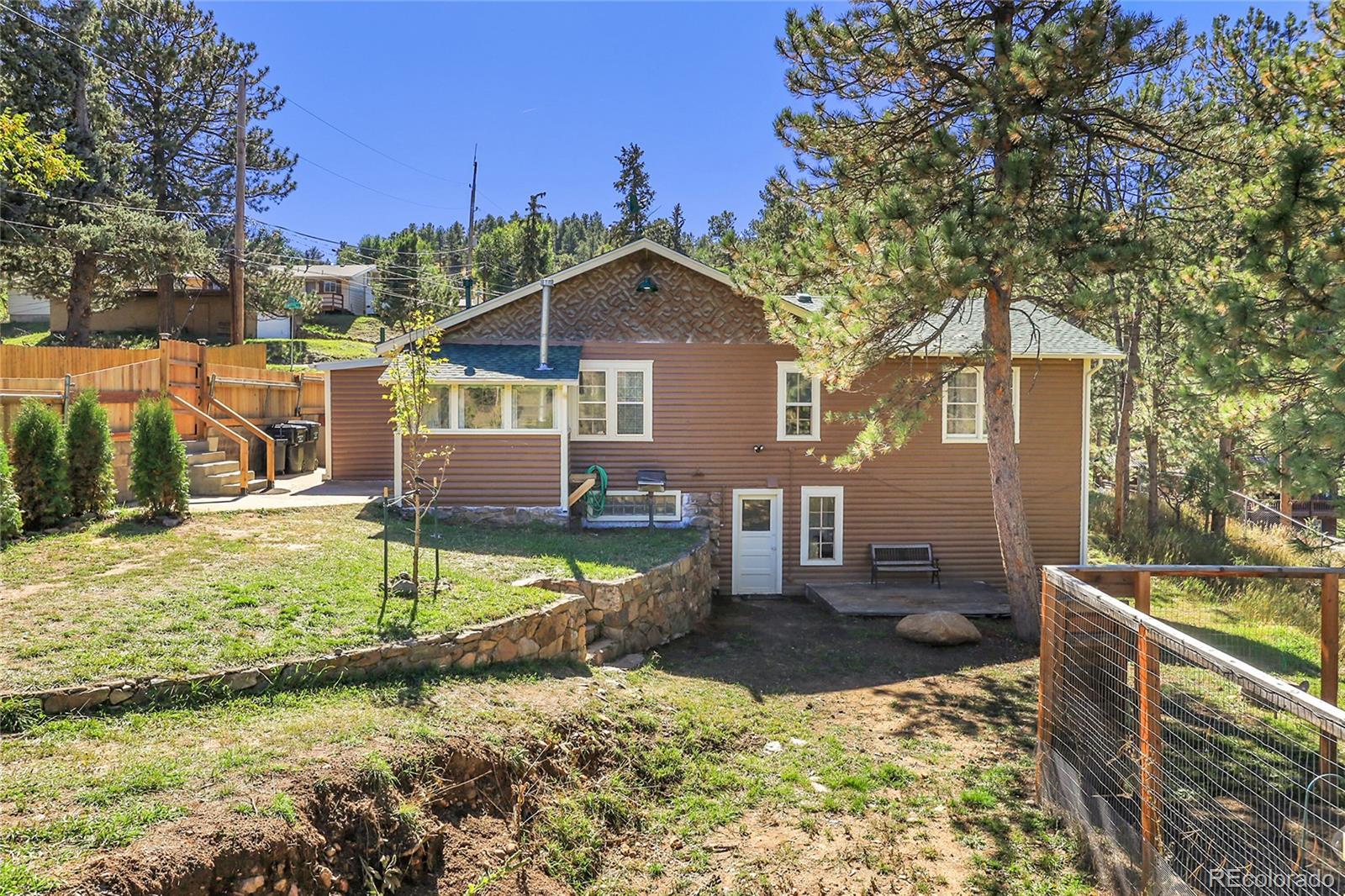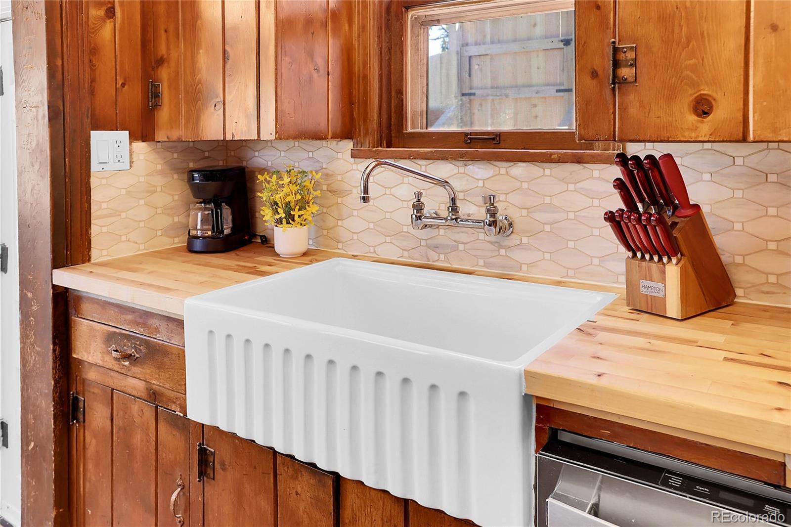 Welcome to this darling cottage, tucked away at the end of a quiet street on a rare, private ½-acre double lot with scenic views. This property blends vintage charm with extensive modern improvements for peace of mind, including a new electric panel, new roof, new sewer line, new interior & exterior paint, new deck, new bathroom & much more. Step inside & you will find warm character & ample space, starting with a cozy living room with hardwood floors & stone fireplace, and additional large sunlit family room. The updated kitchen is a gathering place, complete with all-new butcher block countertops & farm sink. Bar seating makes the kitchen a great place to hang, especially next to the cozy wood burning stove. The bedroom offers flexibility—perfect as a primary for main level living, or an office. Many rooms feature knotty pine, which can be left as-is or painted for a modern farmhouse look. Head downstairs to find a brand new kitchenette, 2 bedrooms with ample closets (one a walk-in), flex space for workout or crafting, laundry room & a lovely new bathroom with a luxury shower. This is an ideal primary bedroom area, with access to the yard. The newly built south-facing deck offers great outdoor living, as does much of the lot with plenty of flat area, fenced garden, privacy & views! The large attached workshop/storage has plentiful cabinetry & workbench Lots of parking too. This is a peaceful, private setting where one can hear the rippling waters of Bear Creek below. The darling hamlet of Kittredge offers so much - walk to the coffee shop, stroll to the park for a stream side picnic, experience fishing & miles of trails just 5 min away. And, it’s only 2 miles to downtown Evergreen with restaurants, shops, amenities & the lake. Or head to Red Rocks Amphitheater & all that Denver offers – just 12 min away! Public road and utilities, not to mention the plethora of upgrades, make this vintage charmer a modern delight! 3D Tour & more pics: www.3425 BurnhamDrive.com
