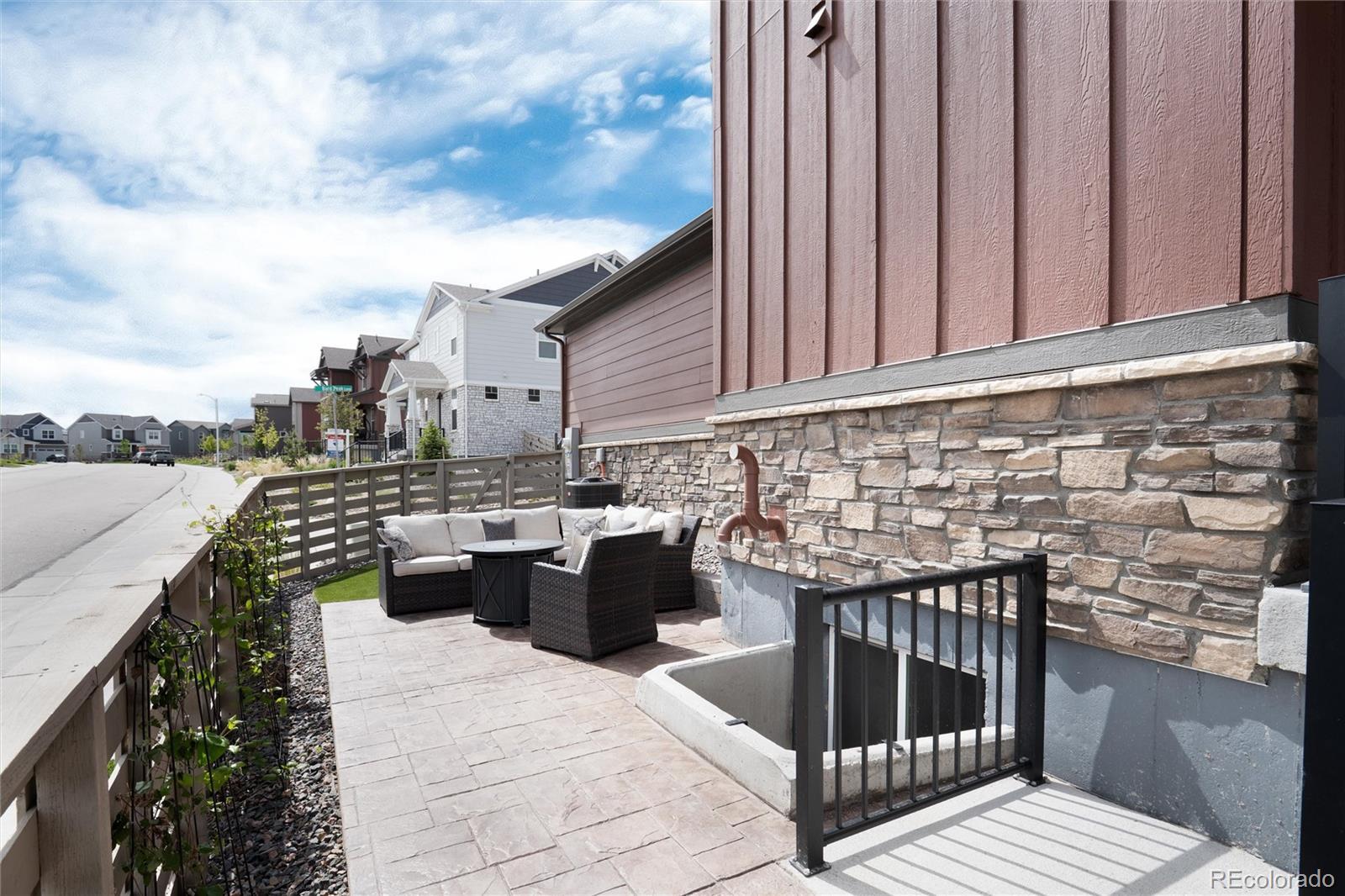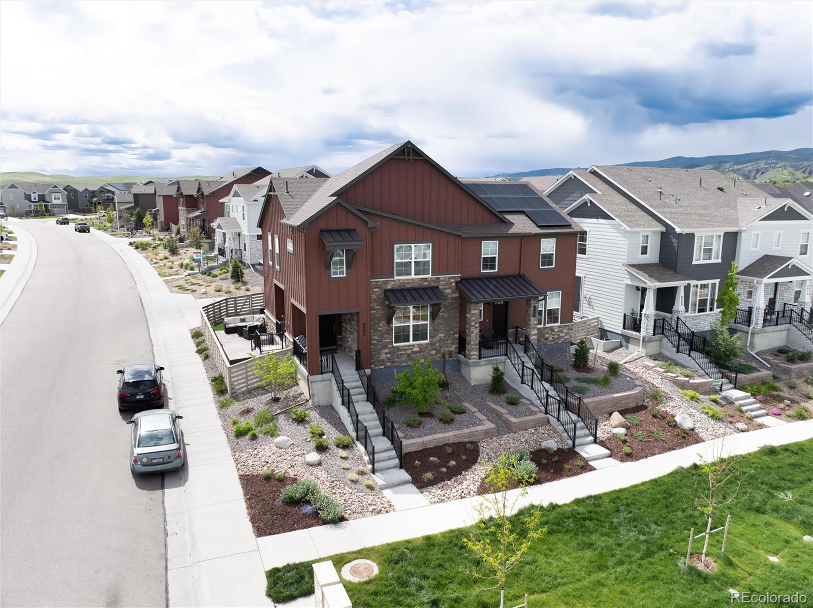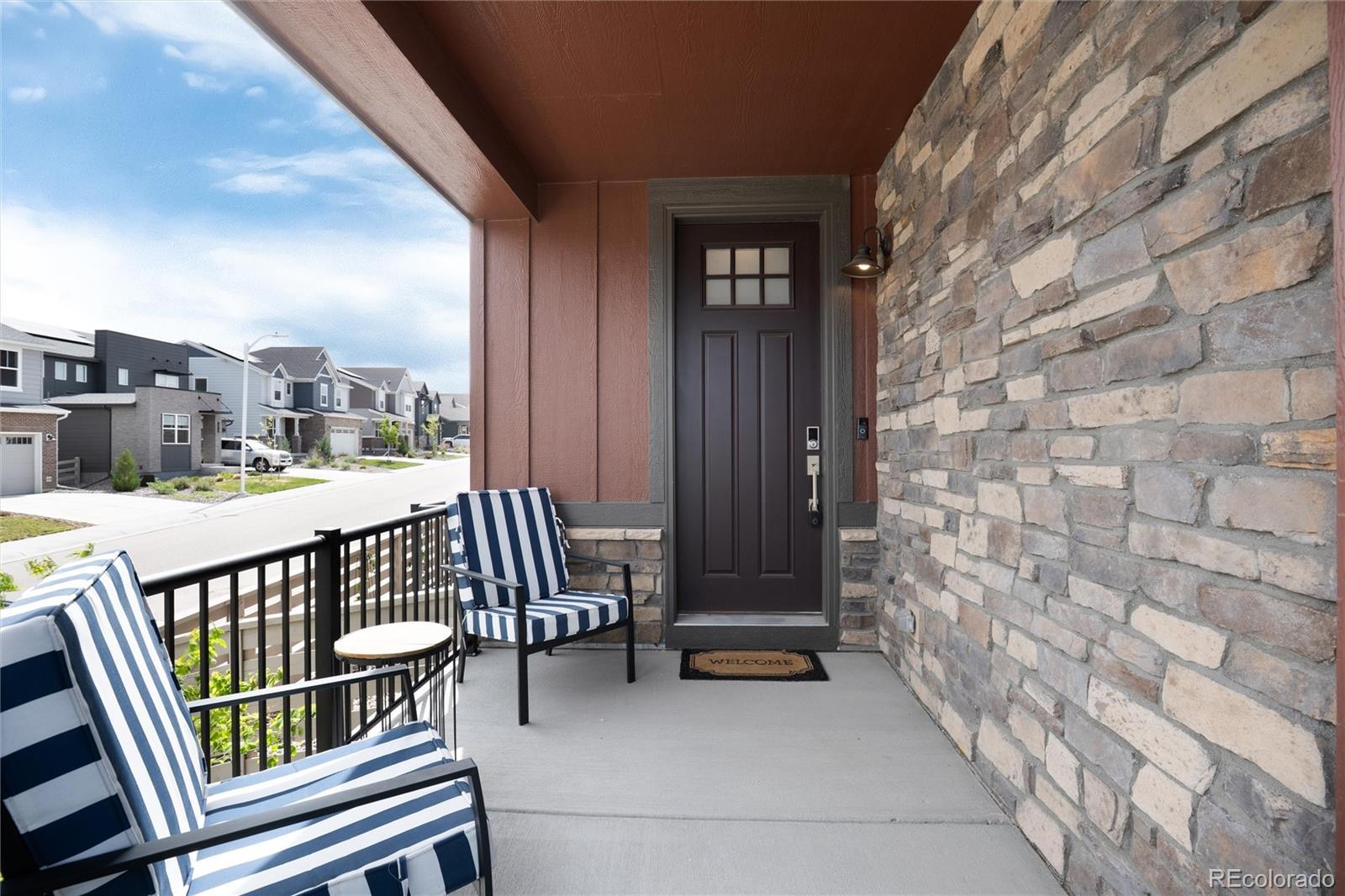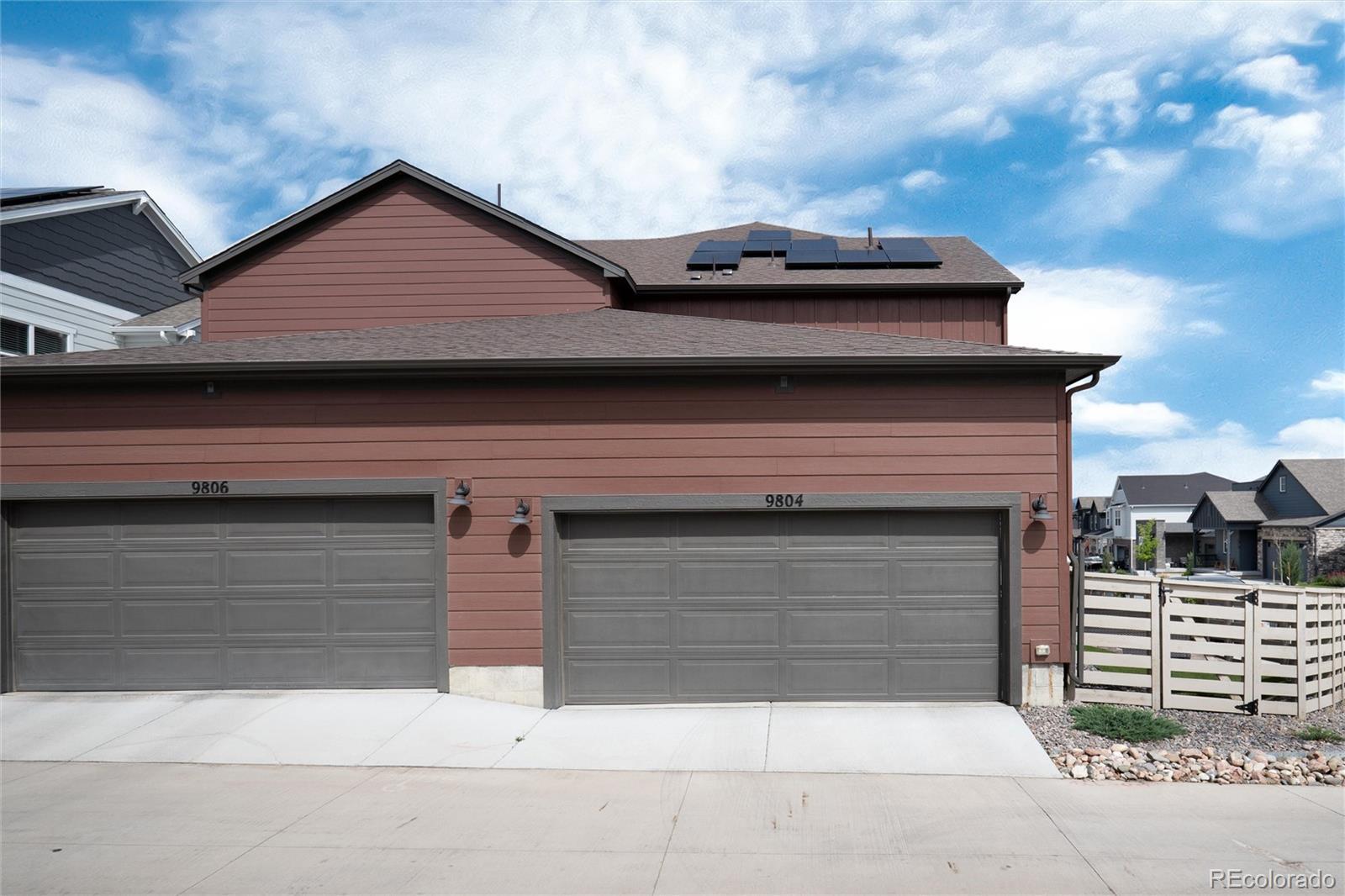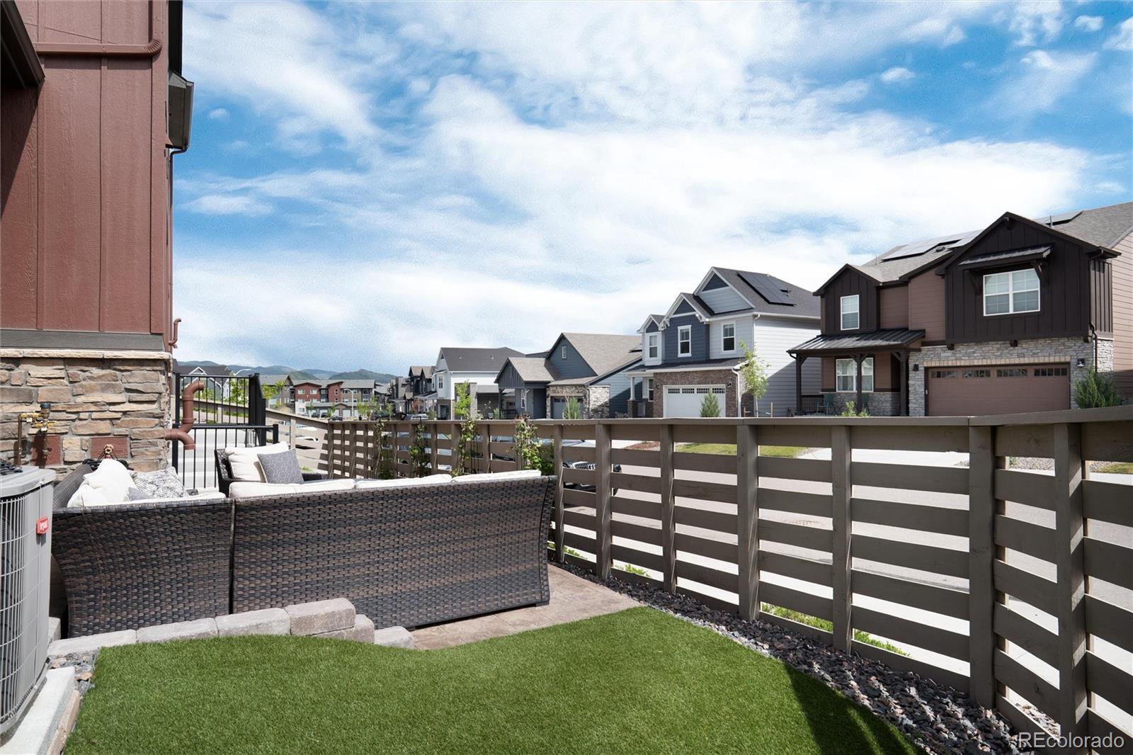ASSUMABLE FHA LOAN. Modern, Energy-Efficient Home with Designer Upgrades – Prime Location! Gorgeous Sterling Ranch paired home. Welcome to this stunning, like-new home—just two years old—boasting energy efficiency, contemporary design, and countless upgrades throughout. With an open floor plan ideal for entertaining, this home seamlessly blends comfort and style. Step inside to find beautiful LVP flooring, sleek tile in the main floor 1/2 bath, updated light fixtures, and high ceilings that enhance the spacious feel. The gourmet kitchen features quartz countertops, a stylish backsplash, large kitchen island, walk-in pantry, all stainless appliances included, coffee bar and plenty of space for hosting or daily living. Upstairs, you’ll find three generous bedrooms and laundry. Including a luxurious primary suite with a private 3/4 bathroom, large walk-in closet with natural light, barn door, double sinks and large walk-in shower. 2 other bedrooms share a full gorgeous updated bathroom. The unfinished basement is ready for you to make your own. Sump pump, rough in plumbing and large egress window that provides a lot of natural light. Additional upgrades include a tankless water heater and a radon mitigation system and solar panels for peace of mind.The outdoor space is just as impressive, with professional landscaping, low-maintenance Artificial turf, extended stamped concrete, and a covered patio—perfect for relaxing or entertaining all year round. The attached two-car garage is equipped with a 220V outlet for EV charging, a MyQ smart garage door system, high ceilings and a premium RYOBI wall storage system. Located close to grocery stores, top-rated restaurants, shopping, and with easy access to scenic state parks—this home truly offers the best of convenience and lifestyle. ***Don’t miss your chance to own this exceptional, move-in ready home!***