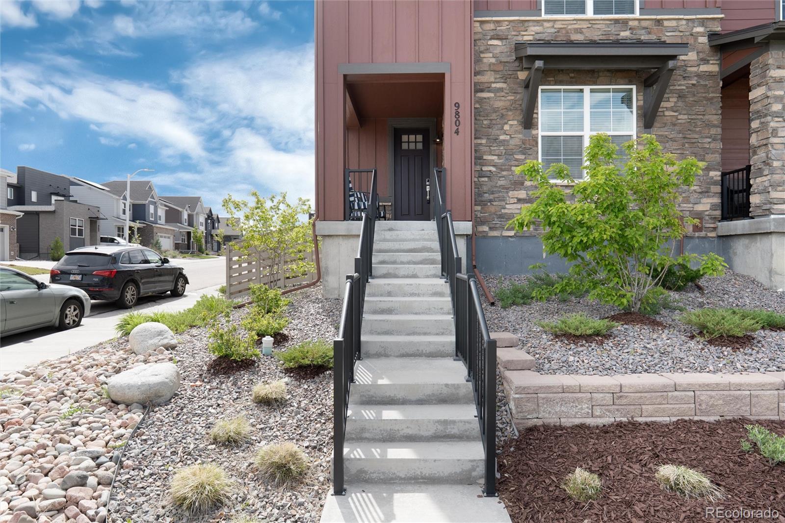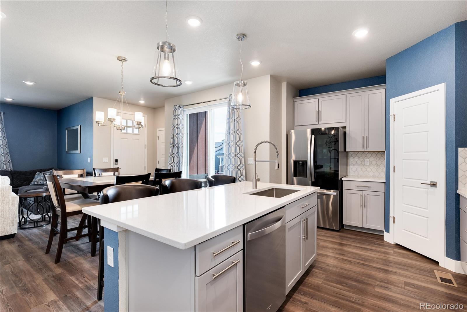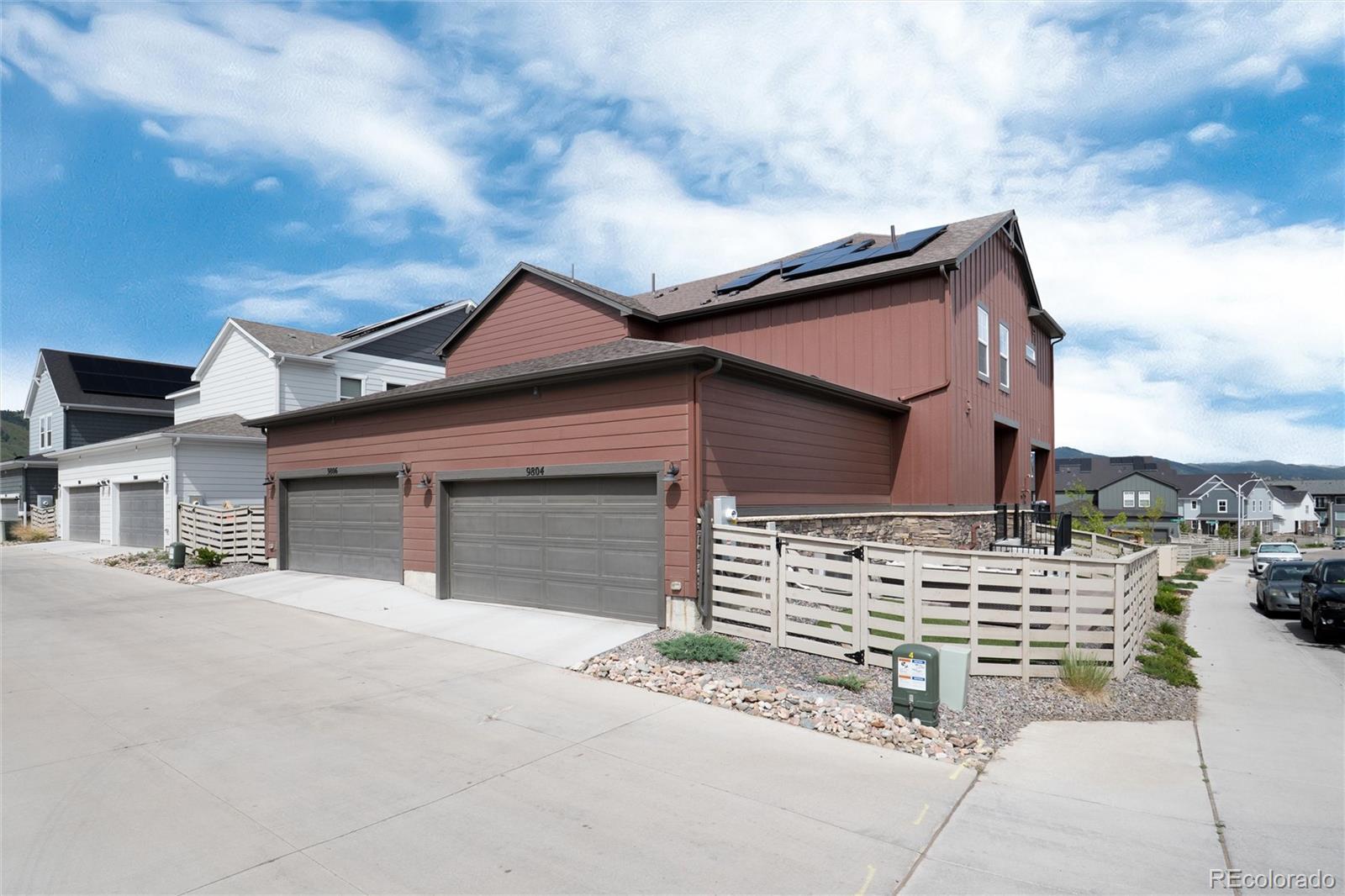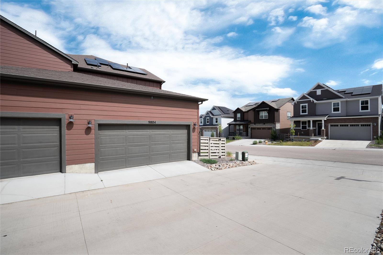 ASSUMABLE FHA LOAN. Modern, Energy-Efficient Home with Designer Upgrades – Prime Location! Gorgeous Sterling Ranch paired home. Welcome to this stunning, like-new home—just two years old—boasting energy efficiency, contemporary design, and countless upgrades throughout. With an open floor plan ideal for entertaining, this home seamlessly blends comfort and style. Step inside to find beautiful LVP flooring, sleek tile in the main floor 1/2 bath, updated light fixtures, and high ceilings that enhance the spacious feel. The gourmet kitchen features quartz countertops, a stylish backsplash, large kitchen island, walk-in pantry, all stainless appliances included, coffee bar and plenty of space for hosting or daily living. Upstairs, you’ll find three generous bedrooms and laundry. Including a luxurious primary suite with a private 3/4 bathroom, large walk-in closet with natural light, barn door, double sinks and large walk-in shower. 2 other bedrooms share a full gorgeous updated bathroom. The unfinished basement is ready for you to make your own. Sump pump, rough in plumbing and large egress window that provides a lot of natural light. Additional upgrades include a tankless water heater and a radon mitigation system and solar panels for peace of mind.The outdoor space is just as impressive, with professional landscaping, low-maintenance Artificial turf, extended stamped concrete, and a covered patio—perfect for relaxing or entertaining all year round. The attached two-car garage is equipped with a 220V outlet for EV charging, a MyQ smart garage door system, high ceilings and a premium RYOBI wall storage system. Located close to grocery stores, top-rated restaurants, shopping, and with easy access to scenic state parks—this home truly offers the best of convenience and lifestyle. ***Don’t miss your chance to own this exceptional, move-in ready home!***