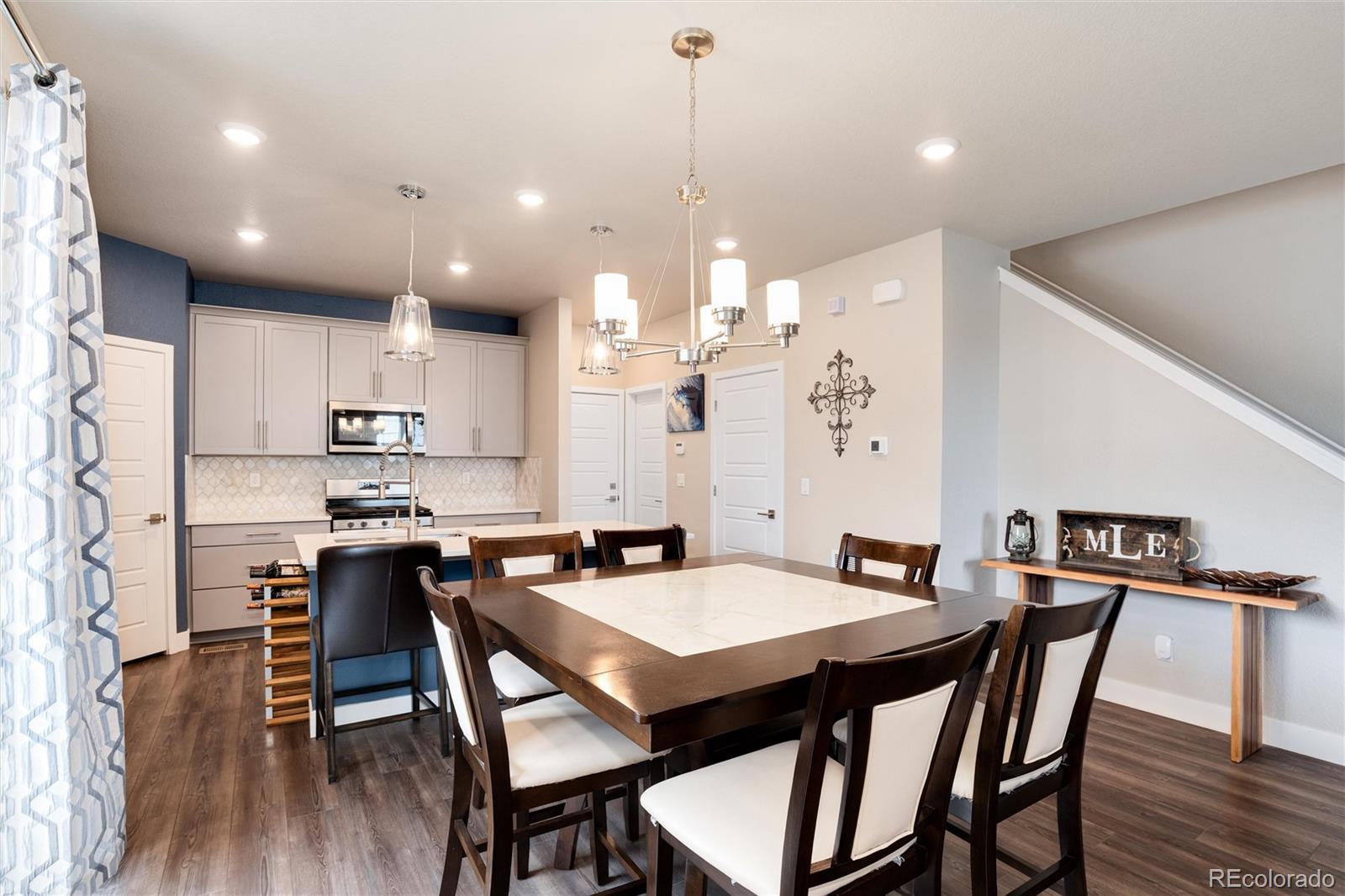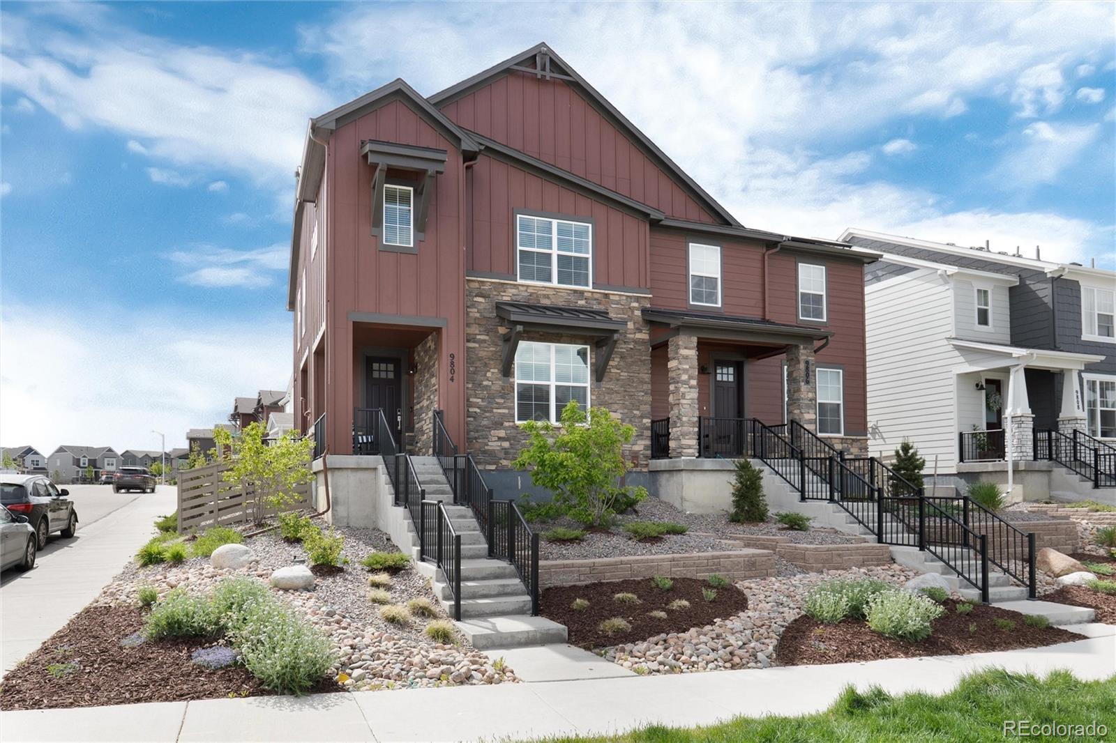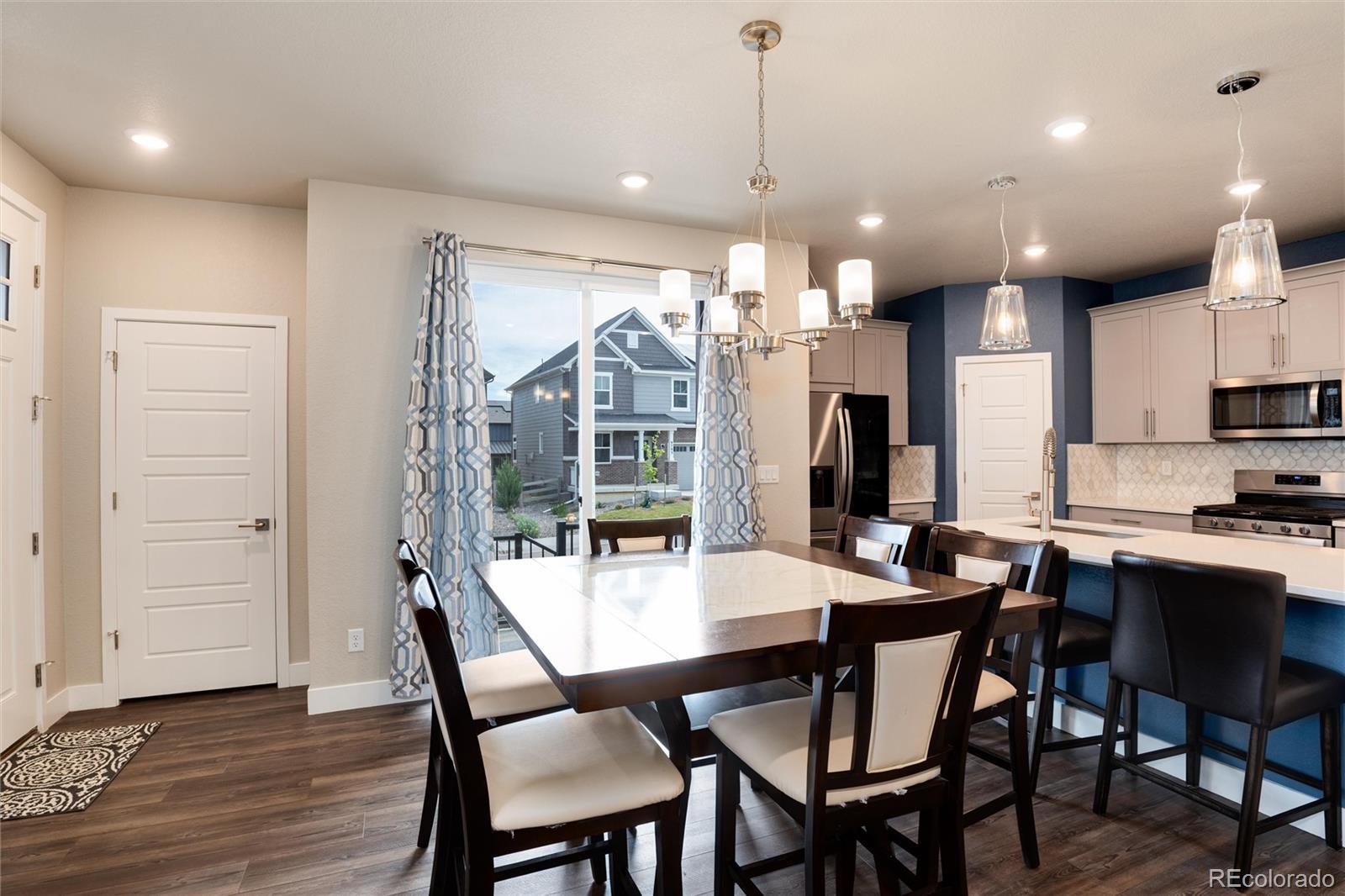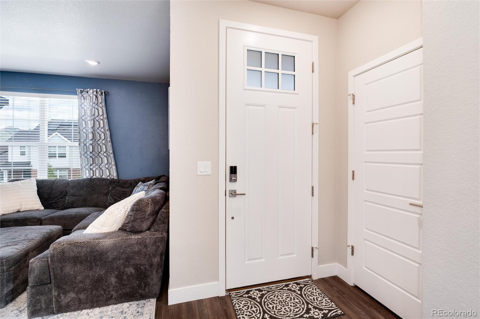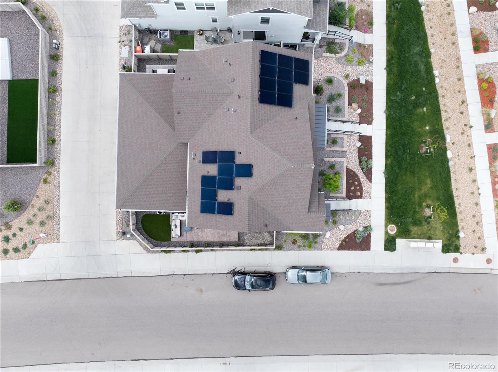 ASSUMABLE FHA LOAN. Modern, Energy-Efficient Home with Designer Upgrades – Prime Location! Gorgeous Sterling Ranch paired home. Welcome to this stunning, like-new home—just two years old—boasting energy efficiency, contemporary design, and countless upgrades throughout. With an open floor plan ideal for entertaining, this home seamlessly blends comfort and style. Step inside to find beautiful LVP flooring, sleek tile in the main floor 1/2 bath, updated light fixtures, and high ceilings that enhance the spacious feel. The gourmet kitchen features quartz countertops, a stylish backsplash, large kitchen island, walk-in pantry, all stainless appliances included, coffee bar and plenty of space for hosting or daily living. Upstairs, you’ll find three generous bedrooms and laundry. Including a luxurious primary suite with a private 3/4 bathroom, large walk-in closet with natural light, barn door, double sinks and large walk-in shower. 2 other bedrooms share a full gorgeous updated bathroom. The unfinished basement is ready for you to make your own. Sump pump, rough in plumbing and large egress window that provides a lot of natural light. Additional upgrades include a tankless water heater and a radon mitigation system and solar panels for peace of mind.The outdoor space is just as impressive, with professional landscaping, low-maintenance Artificial turf, extended stamped concrete, and a covered patio—perfect for relaxing or entertaining all year round. The attached two-car garage is equipped with a 220V outlet for EV charging, a MyQ smart garage door system, high ceilings and a premium RYOBI wall storage system. Located close to grocery stores, top-rated restaurants, shopping, and with easy access to scenic state parks—this home truly offers the best of convenience and lifestyle. ***Don’t miss your chance to own this exceptional, move-in ready home!***