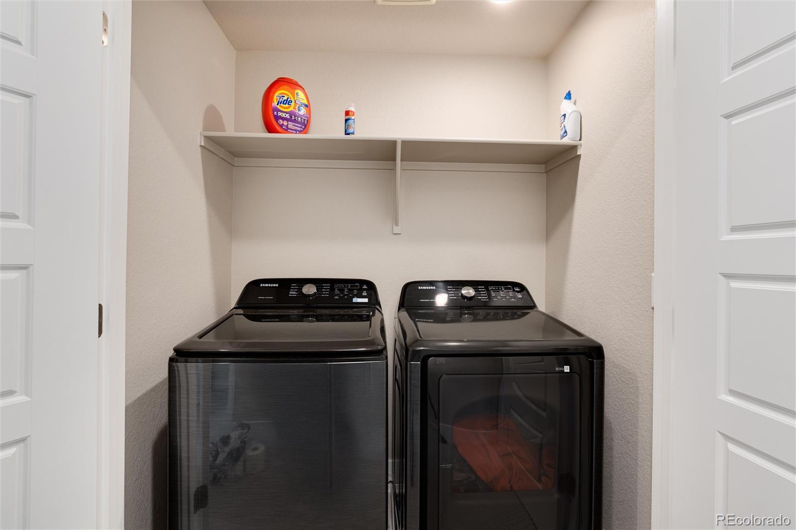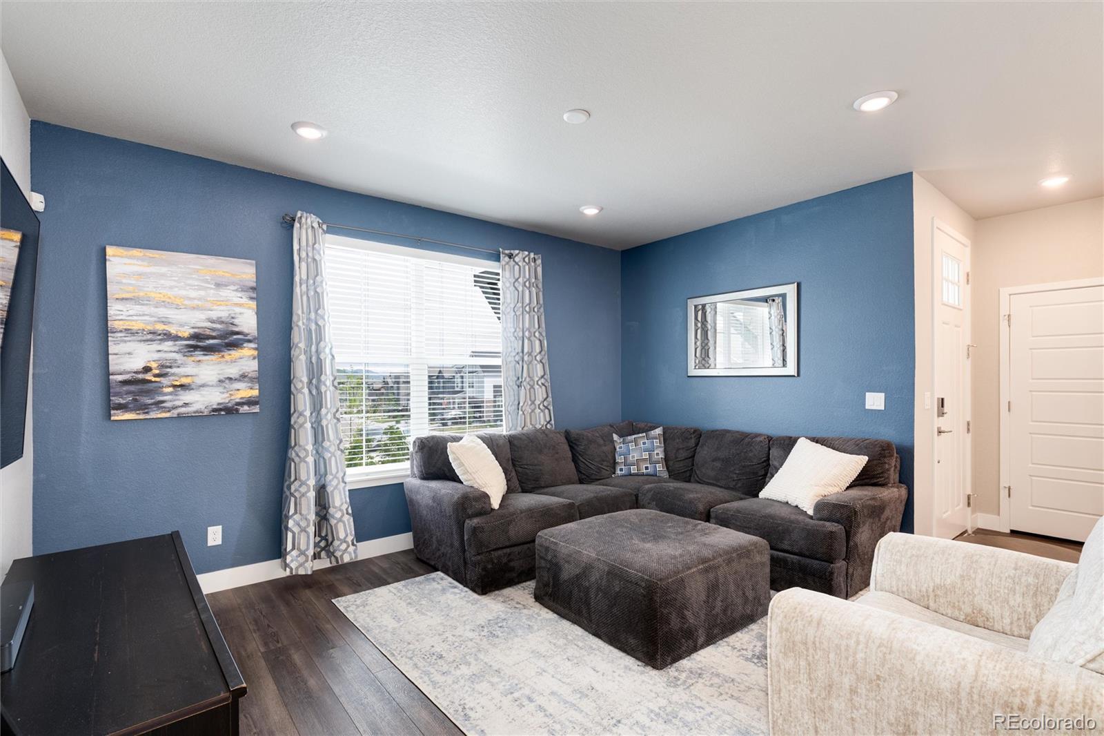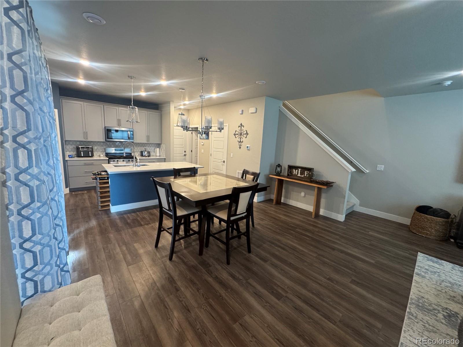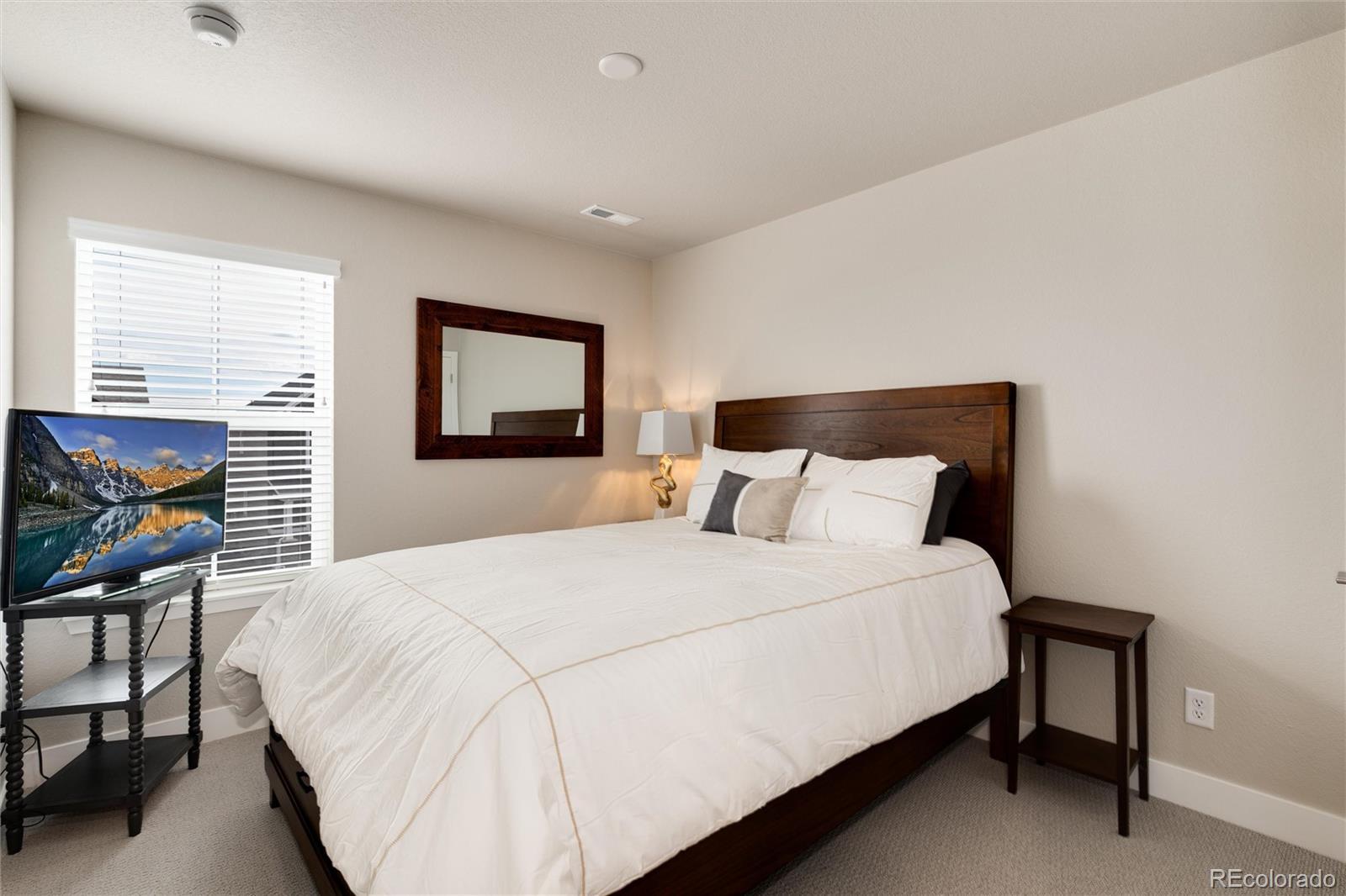 ASSUMABLE FHA LOAN. Modern, Energy-Efficient Home with Designer Upgrades – Prime Location! Gorgeous Sterling Ranch paired home. Welcome to this stunning, like-new home—just two years old—boasting energy efficiency, contemporary design, and countless upgrades throughout. With an open floor plan ideal for entertaining, this home seamlessly blends comfort and style. Step inside to find beautiful LVP flooring, sleek tile in the main floor 1/2 bath, updated light fixtures, and high ceilings that enhance the spacious feel. The gourmet kitchen features quartz countertops, a stylish backsplash, large kitchen island, walk-in pantry, all stainless appliances included, coffee bar and plenty of space for hosting or daily living. Upstairs, you’ll find three generous bedrooms and laundry. Including a luxurious primary suite with a private 3/4 bathroom, large walk-in closet with natural light, barn door, double sinks and large walk-in shower. 2 other bedrooms share a full gorgeous updated bathroom. The unfinished basement is ready for you to make your own. Sump pump, rough in plumbing and large egress window that provides a lot of natural light. Additional upgrades include a tankless water heater and a radon mitigation system and solar panels for peace of mind.The outdoor space is just as impressive, with professional landscaping, low-maintenance Artificial turf, extended stamped concrete, and a covered patio—perfect for relaxing or entertaining all year round. The attached two-car garage is equipped with a 220V outlet for EV charging, a MyQ smart garage door system, high ceilings and a premium RYOBI wall storage system. Located close to grocery stores, top-rated restaurants, shopping, and with easy access to scenic state parks—this home truly offers the best of convenience and lifestyle. ***Don’t miss your chance to own this exceptional, move-in ready home!***
