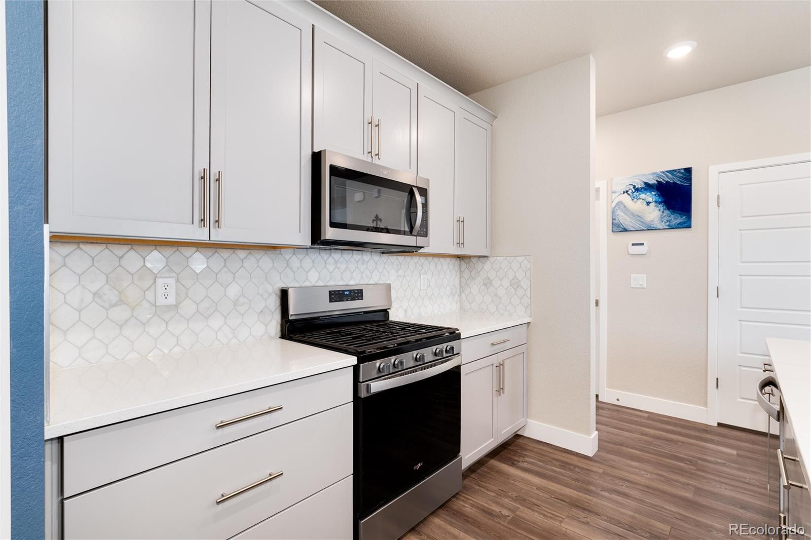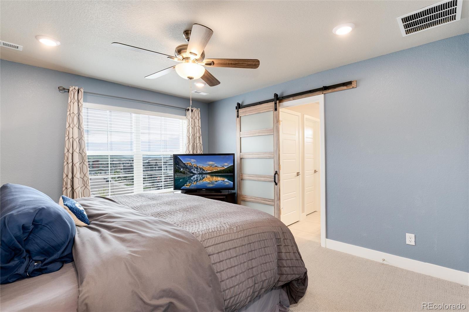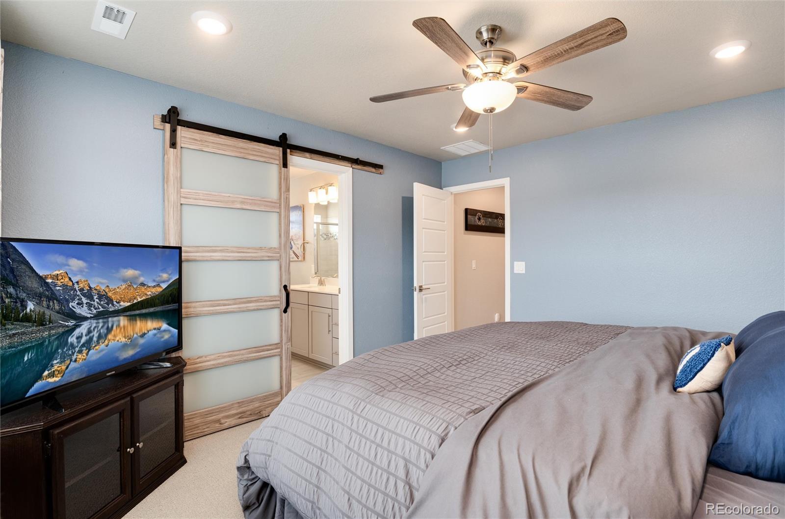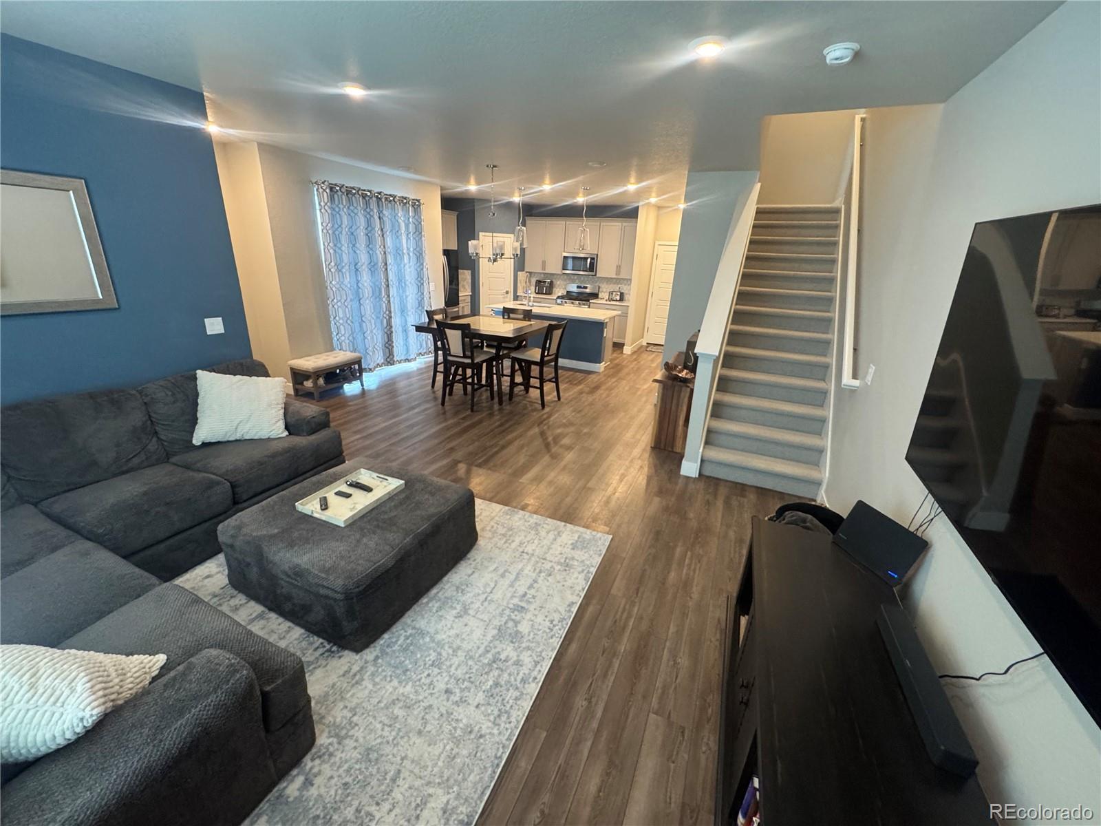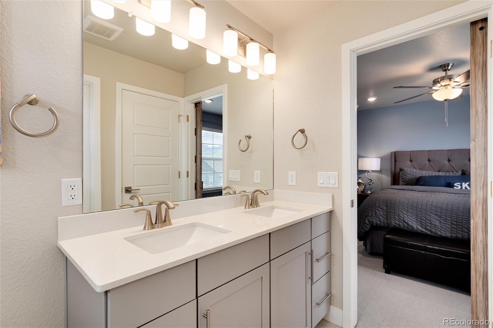 ASSUMABLE FHA LOAN. Modern, Energy-Efficient Home with Designer Upgrades – Prime Location! Gorgeous Sterling Ranch paired home. Welcome to this stunning, like-new home—just two years old—boasting energy efficiency, contemporary design, and countless upgrades throughout. With an open floor plan ideal for entertaining, this home seamlessly blends comfort and style. Step inside to find beautiful LVP flooring, sleek tile in the main floor 1/2 bath, updated light fixtures, and high ceilings that enhance the spacious feel. The gourmet kitchen features quartz countertops, a stylish backsplash, large kitchen island, walk-in pantry, all stainless appliances included, coffee bar and plenty of space for hosting or daily living. Upstairs, you’ll find three generous bedrooms and laundry. Including a luxurious primary suite with a private 3/4 bathroom, large walk-in closet with natural light, barn door, double sinks and large walk-in shower. 2 other bedrooms share a full gorgeous updated bathroom. The unfinished basement is ready for you to make your own. Sump pump, rough in plumbing and large egress window that provides a lot of natural light. Additional upgrades include a tankless water heater and a radon mitigation system and solar panels for peace of mind.The outdoor space is just as impressive, with professional landscaping, low-maintenance Artificial turf, extended stamped concrete, and a covered patio—perfect for relaxing or entertaining all year round. The attached two-car garage is equipped with a 220V outlet for EV charging, a MyQ smart garage door system, high ceilings and a premium RYOBI wall storage system. Located close to grocery stores, top-rated restaurants, shopping, and with easy access to scenic state parks—this home truly offers the best of convenience and lifestyle. ***Don’t miss your chance to own this exceptional, move-in ready home!***