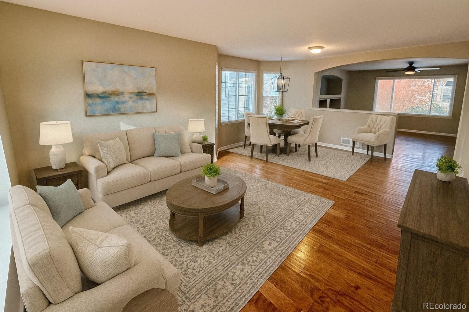 Welcome to this extraordinary 5-bedroom, 4-bathroom single-family home nestled in the desirable Willow Trace community of Aurora (80015) and located in the highly regarded Cherry?Creek?School?District. From the moment you arrive, you’ll appreciate the perfect combination of comfort, luxury and functionality. Step inside to a bright, open main level featuring a beautifully designed chef’s kitchen that is sure to impress — boasting elegant quartz countertops, a generous pantry and all appliances included. The seamless flow from the kitchen into the living and dining zones makes this home ideal for both casual everyday living and entertaining. Upstairs, you’ll find a well-appointed primary suite along with 3 additional bedrooms and 1 full bath. The thoughtfully finished basement expands your living possibilities with a 5th bedroom, a full bath, and flexible space for a recreation room or gym. Outside, enjoy your lovely private backyard oasis — a tranquil setting perfect for al-fresco dining, relaxing or playtime. With mature landscaping and plenty of privacy, this outdoor retreat completes the home. A spacious 2-car garage and ample storage throughout round out the features. Located in Willow Trace, you’ll appreciate a family-friendly neighborhood with access to parks, trails and quality schools. Don’t miss this opportunity to own a spacious, move-in ready home that checks every box for modern living.