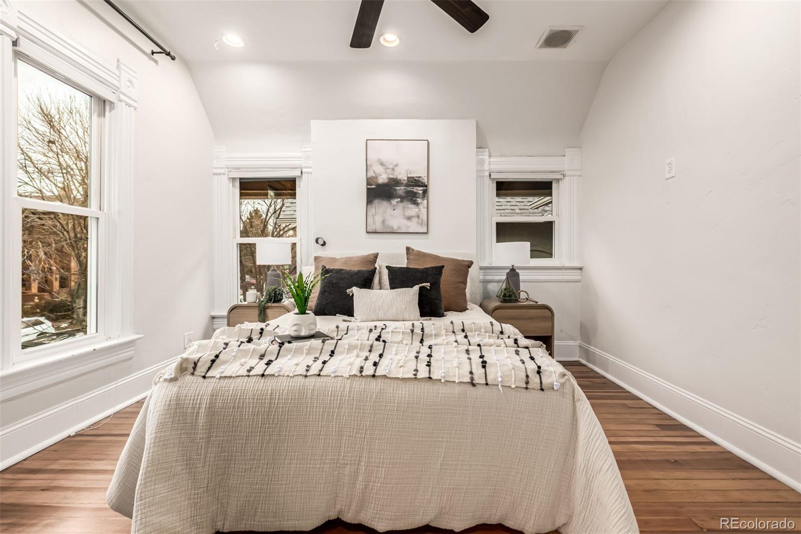 Buyers who use our preferred lender will receive a 1/2 point temporary buy-down for the first year AND $2,500 toward closing costs! Zoning allows for mixed use of office/living space with proper permitting. Victorian architecture, the vibrance of Congress Park, and a location that gathers the best of Denver together. Built in 1901, this 4 bedroom 3 bath residence bears its history with pride, with tall ceilings, hardwood floors, ornate trim, and a working wood burning hearth, all complemented by modern appointments that preserve character while bestowing comfort. The main floor flows from parlor to dining hall and into a kitchen renewed in 2024 with walnut cabinetry, granite counters, stainless refrigerator and range, and modern lighting. Above, 4 chambers await, including a primary suite with updated bath and a west facing bedroom opening to a private balcony with leafy prospect. The baths are finished with radiant heated floors, dual vanities, and timeless tilework. Outdoor living offers a front porch swing, elevated deck, stamped terrace, raised garden boxes, and fenced grounds with mature landscaping. At the rear stands a detached garage with EV charger beside a pad for 2 more spaces. Improvements include solar panels, a new heat pump and furnace in 2023, renewal of sewer and lead water lines, and a fireplace serviced for cheerful use. Modern refinements extend to a Nest thermostat and integrated sound system, while a partially finished basement lends storage and utility. The Walk Score is 90 where one scarcely requires carriage or keys, with City Park, Cheesman Park, and Congress Park close by, along with the Zoo, Botanic Gardens, Tattered Cover, Bar Max, Cerebral Brewing, Copper Door Coffee, and The City Park Farmers Market. Sellers delighted in summers of garden gatherings and winters beside the hearth, with tree lined avenues and neighborhood haunts completing a life both cultivated and welcoming, and now the home awaits the penning of its next chapter.