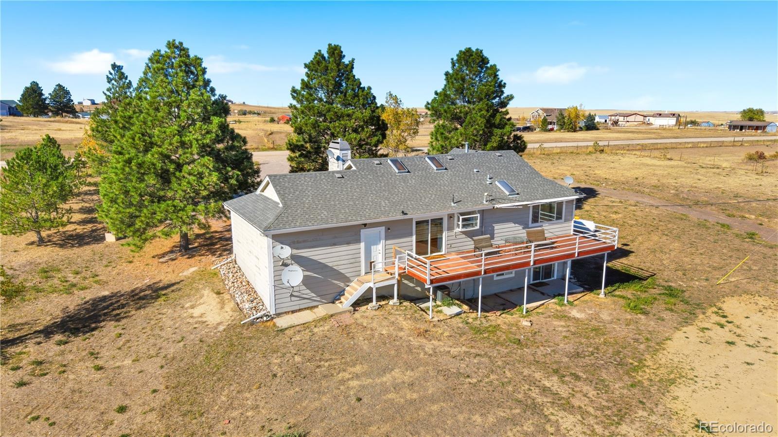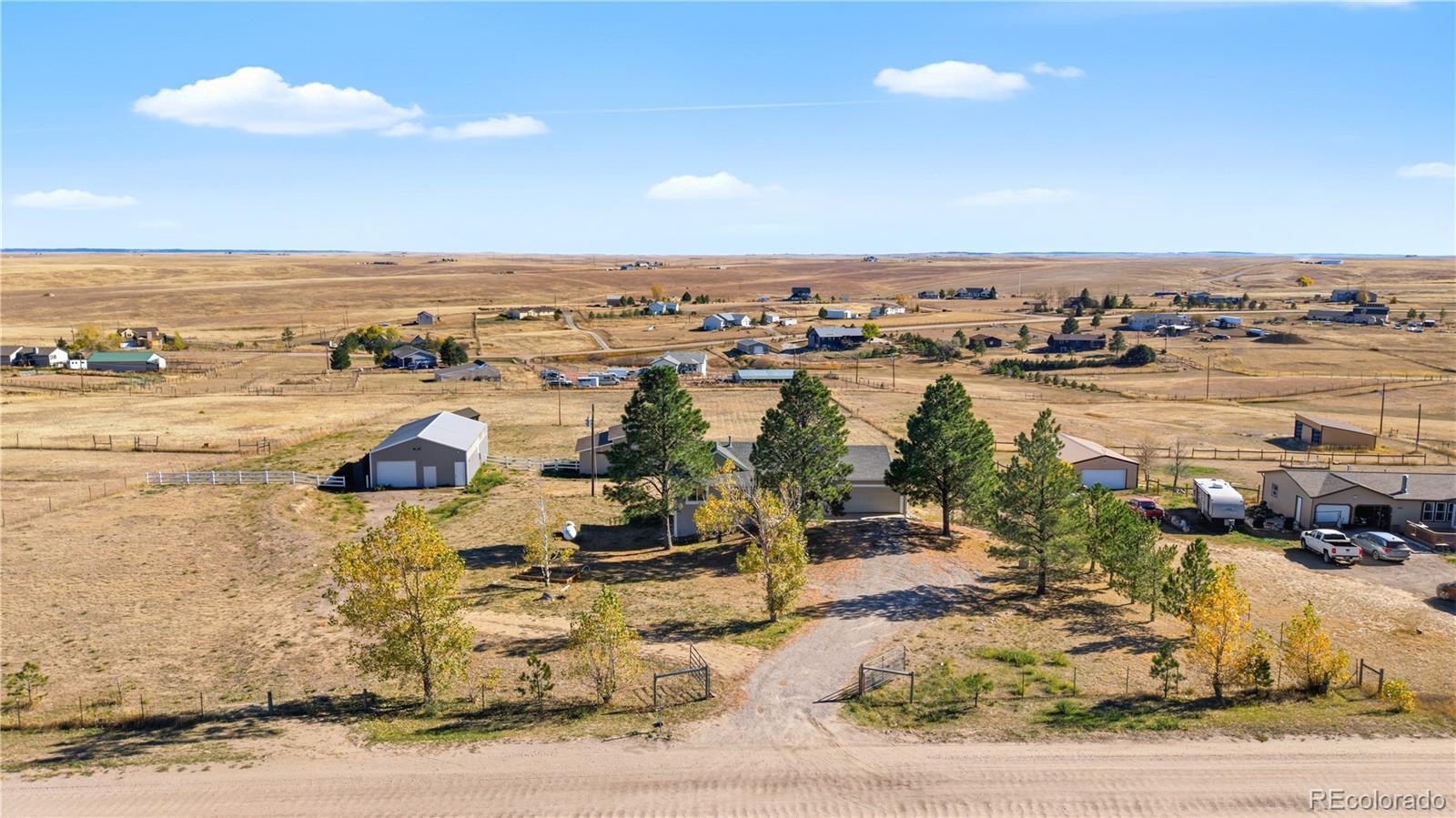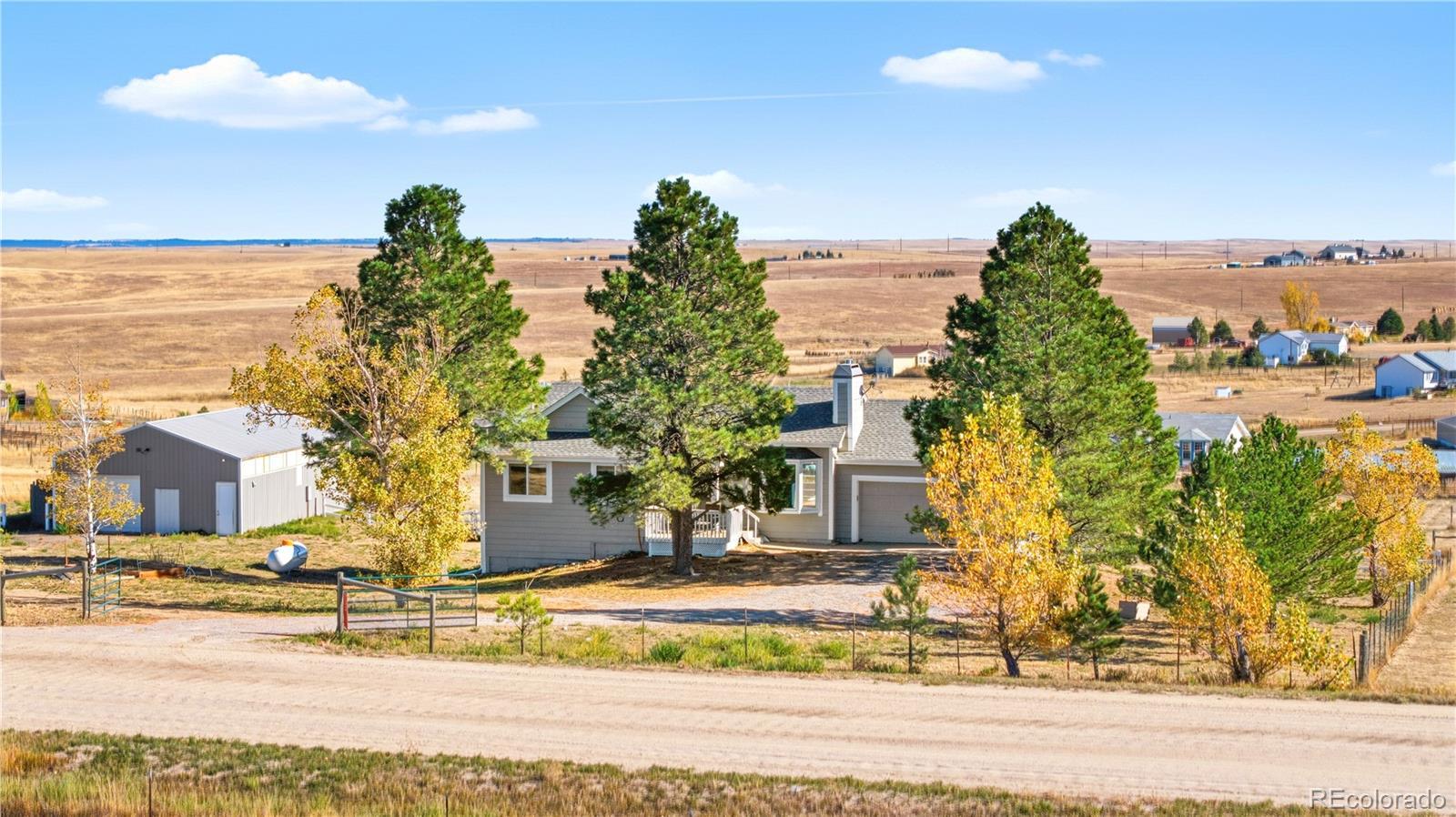 A beautiful ranch home that sits on 4 gated and fenced acres. A wonder of expansiveness and beauty. Recently renovated with a new kitchen, appliances and baths. Vaulted ceilings, front porch, beautiful deck, skylights and a full walk-out basement with rough-ins. The views go on forever with fantastic sunsets and sunrises. 1500+ SQ FT shop with R-7 spray foam insulation, an 864 sq ft horse barn with two stalls, a tack room and a hay room. Both have functioning water and lights. Also, a loafing shed. Clean, vacant and ready for a new family. Seller carry financing is available with 20% down. The Sun Country Meadows is a safe and happy place. The HOA is $80.00/annual (voluntary) and the communities amenities include horse trails and a market. Escape the crowds, move to Elizabeth with room to roam.