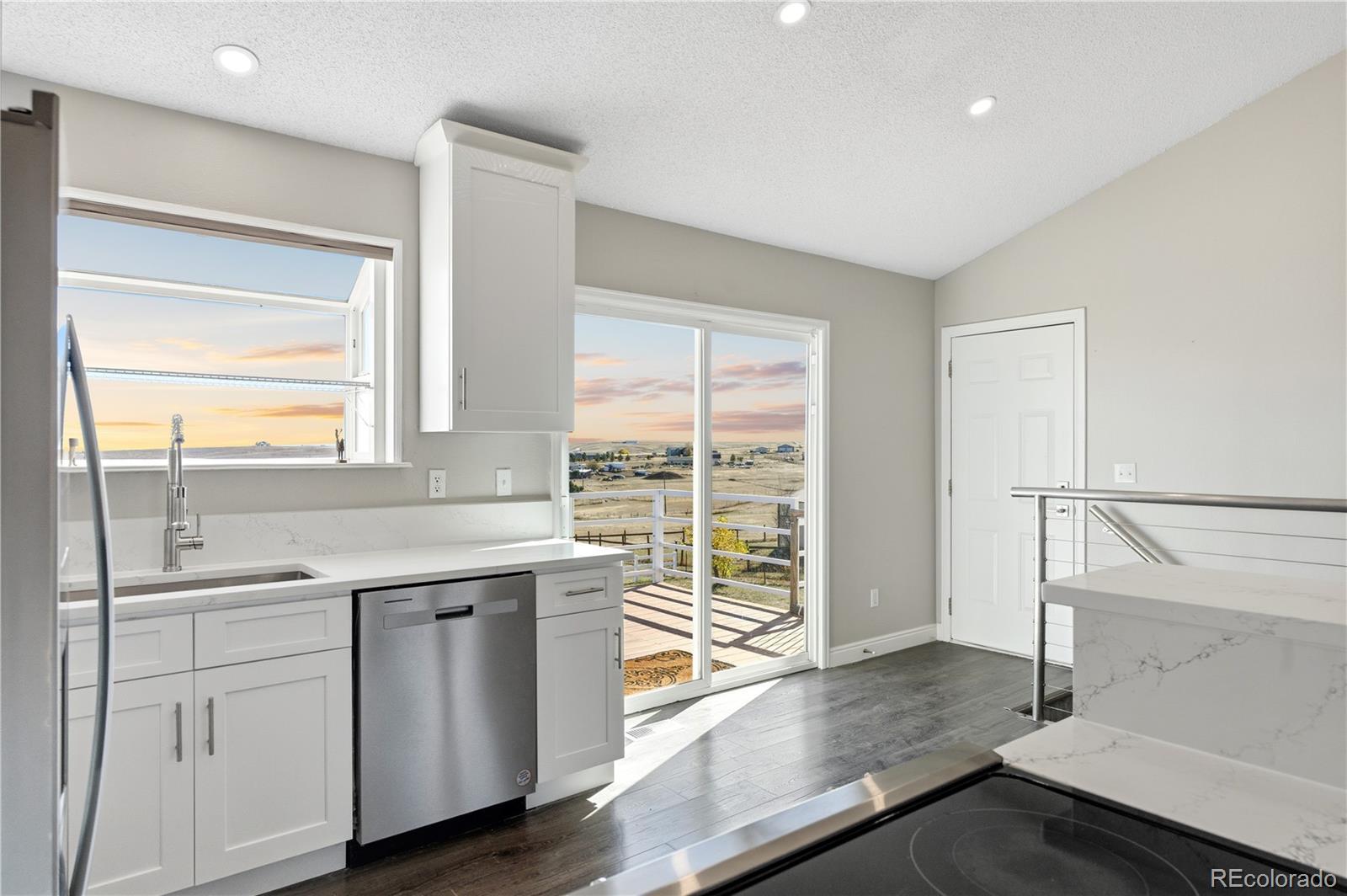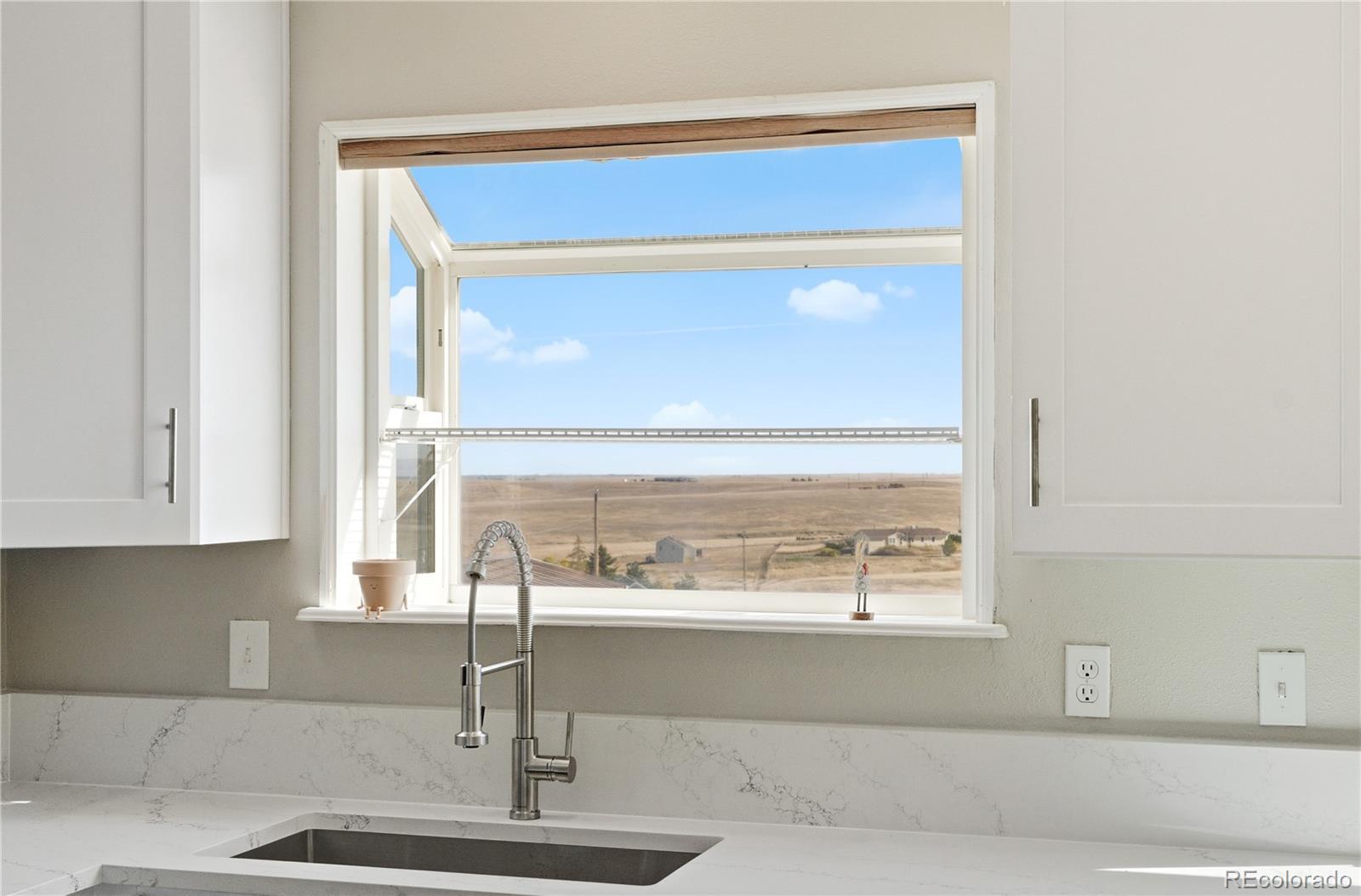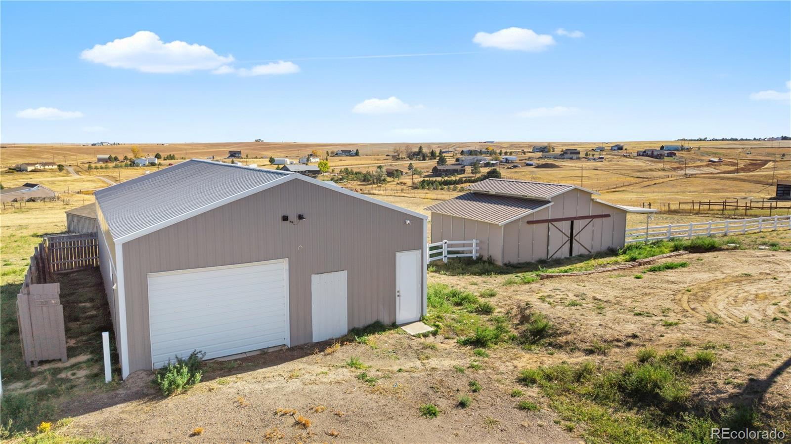 A beautiful ranch home that sits on 4 gated and fenced acres. A wonder of expansiveness and beauty. Recently renovated with a new kitchen, appliances and baths. Vaulted ceilings, front porch, beautiful deck, skylights and a full walk-out basement with rough-ins. The views go on forever with fantastic sunsets and sunrises. 1500+ SQ FT shop with R-7 spray foam insulation, an 864 sq ft horse barn with two stalls, a tack room and a hay room. Both have functioning water and lights. Also, a loafing shed. Clean, vacant and ready for a new family. Seller carry financing is available with 20% down. The Sun Country Meadows is a safe and happy place. The HOA is $80.00/annual (voluntary) and the communities amenities include horse trails and a market. Escape the crowds, move to Elizabeth with room to roam.