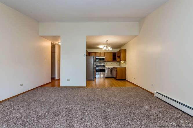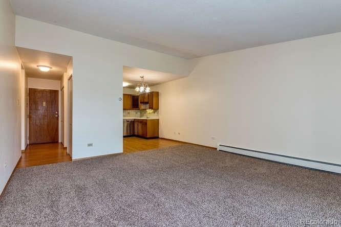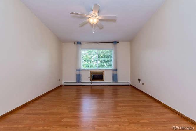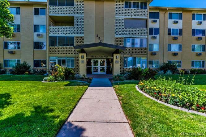 ATTENTION 55+ SENIORS: COME HOME TO WINDSOR GARDENS, Denver's premier 55+ adult community featuring resort-style living in the middle of town...golf course, golf shop, restaurant/bar, indoor and outdoor pools, hot tub, saunas, fitness center, pool hall, card rooms, library, woodworking shop, auditorium and activities galore! Very nice 1b/1b condo, 855 SF, penthouse level (4th floor) featuring vaulted ceilings, enclosed lanai, carpeting, new stainless appliances and newly painted throughout. Wall AC units in living room and bedroom. Bathroom has a cut-away tub for "walk-in" shower access. Looks out on grassy courtyard and views of the mountains. Additional storage closet on same floor plus cowboy storage unit in detached garage. 24/7 Community Response patrols for safety and resident assistance. PETS ARE WELCOME. NO SMOKING! At least one tenant must be 55+. All other tenants must be 17 or older. All residents must complete the Windsor Gardens orientation class and complete all Windsor Gardens required forms.