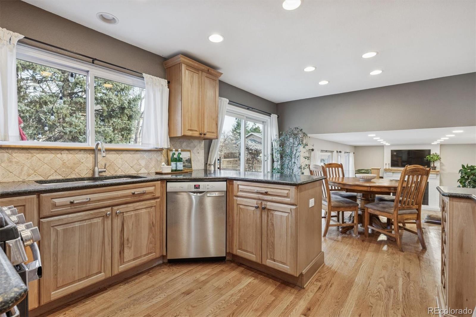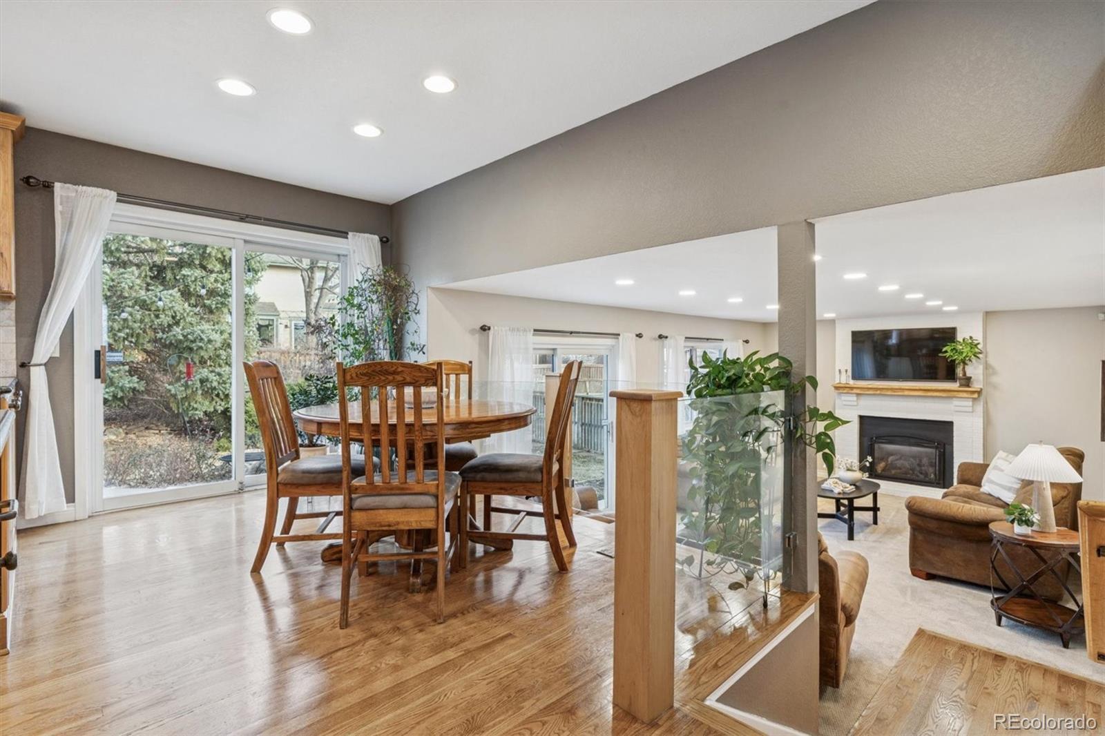 Welcome to a home where space, sunshine, and everyday comfort come together in the heart of Highlands Ranch. This quaint home offers 4 bedrooms and 4 bathrooms designed to live beautifully and effortlessly. The open living and dining rooms feel bright and airy, thanks to vaulted ceiling and large windows with expansive Mountain View’s and rich hardwood floors, adding both warmth and timeless charm. The kitchen standouts, with stainless steel appliances, granite countertops, and ample storage. The family room is cozy yet impressive, anchored by a fireplace and complemented by additional sliders that lead straight to the backyard. Downstairs, the newly carpeted basement offers a versatile open space ready to become whatever you need most - perhaps a fifth bedroom with egress window and walk-in closet!? Upstairs, the 4 bedrooms offer comfort and privacy, including a spacious primary suite with a walk-in closet and a beautifully updated en-suite bath. Three additional bedrooms and a full bath round out the upper level. Out back is where this home truly shines - Enjoy a large, fully fenced yard with expansive grass and patio — ideal for summer BBQs, backyard play, or relaxing under Colorado’s blue skies!