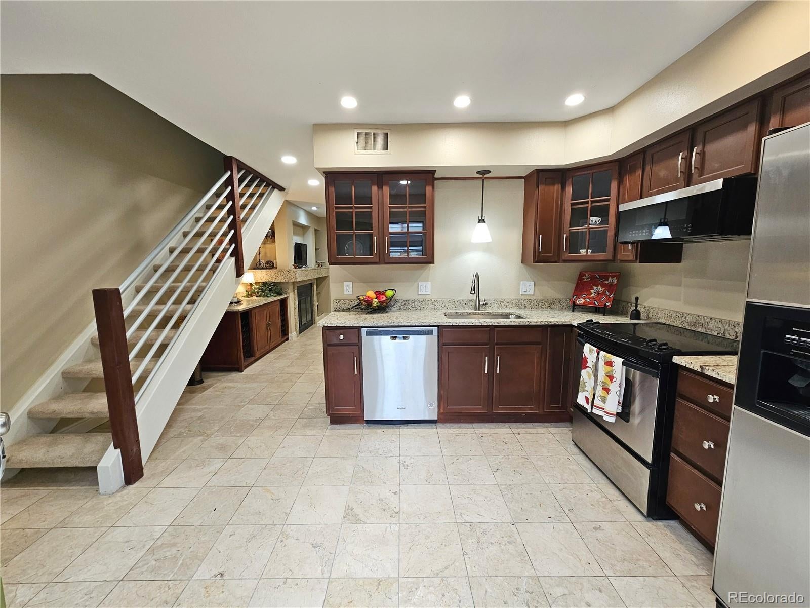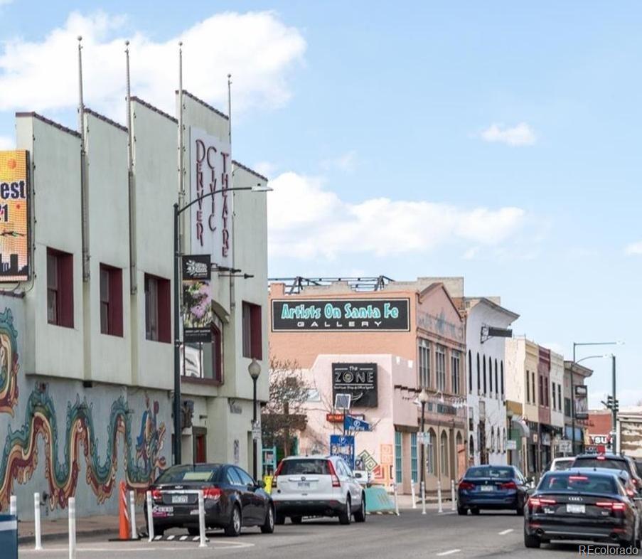 Prime Denver Location - a great investment opportunity only a few blocks from the Denver Broncos Stadium redevelopment area. Great Lincoln Park community close to everything, including Cherry Creek Trail, Santa Fe Arts District, Denver Art Museum, the outstanding bar and restaurant scene and only 100 yards to a grocery store and public transportation. Community amenities include a pool, clubhouse, fitness center, movie room, green space, and dog park. Completely updated 2 BR 1 1/2 bath Townhome with New lighting, paint, carpet, cabinets and pantry. Granite counters throughout the Kitchen, bar, and fireplace mantle and nooks. Both baths have new tile vanities and lighting. There is a dedicated covered carport parking space, attic storage area, fenced back patio and front porch. HOA with great amenities and lowest fee in the area. EV charging stations are coming soon. This area may qualify for the 1.75% CRA credit (up to $7,000) at closing. Don’t miss this great chance to own a turnkey townhouse in one of the best urban locations in Denver.