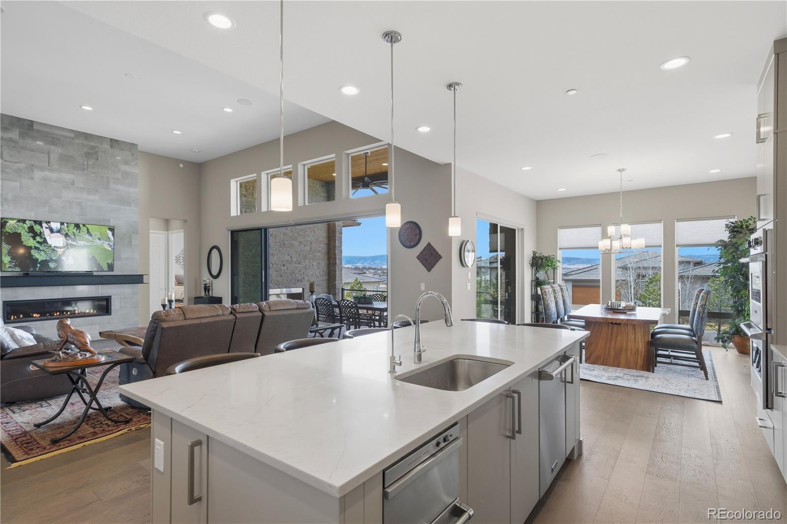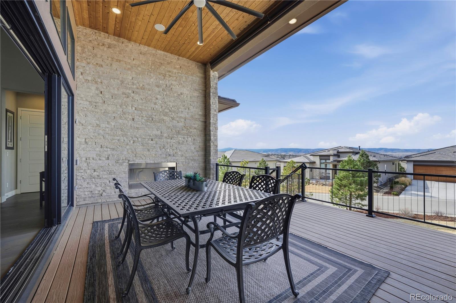 Welcome to effortless living in this exclusive gated, secured community where the HOA handles your landscaping and snow removal, allowing you to simply lock the door and go while your home is always beautifully maintained. This is not just a home, it’s a lifestyle. This stunning residence blends modern design with Colorado’s breathtaking natural beauty. Inside, wide-plank 8” engineered hardwood floors flow throughout, setting the tone for the home’s refined elegance. A dramatic glass-wall study offers a private, light-filled space perfect for working or creating. At the heart of the home is a chef’s kitchen featuring all Viking appliances, including a powerful eight-burner gas cooktop, designed for both serious cooking and entertaining. The kitchen opens seamlessly to the dining and living areas, making it ideal for gatherings of any size. The primary suite is a true retreat, featuring a spa inspired bath with his and her vanities, a standalone soaking tub, and a large walk-in shower with dual shower heads. The large primary bedroom also includes a custom designed closet system. The show-stopping family room with a full wall of folding glass doors opens to the expansive deck with a fireplace creating the ultimate indoor-outdoor lifestyle to enjoy spectacular, mountain views and sunsets. The fully finished walkout basement adds exceptional versatility, offering a spacious great room with a stylish wet bar. The basement has two bedrooms and a bonus room with a Murphy bed. Walk out to the expanded patio and unwind in your private hot tub. Designed for both luxury and convenience, this home delivers a rare combination of low-maintenance living, high-end finishes, and breathtaking scenery—all within a secure, beautifully maintained community. Other features; prewired for data, sound, internet. Enjoy the benefit of a 4% sales tax, Electric car charger, Quantum Fiber, dual zones on the HVAC, water softener. Community pools, fitness centers, tennis and pickleball, trails.