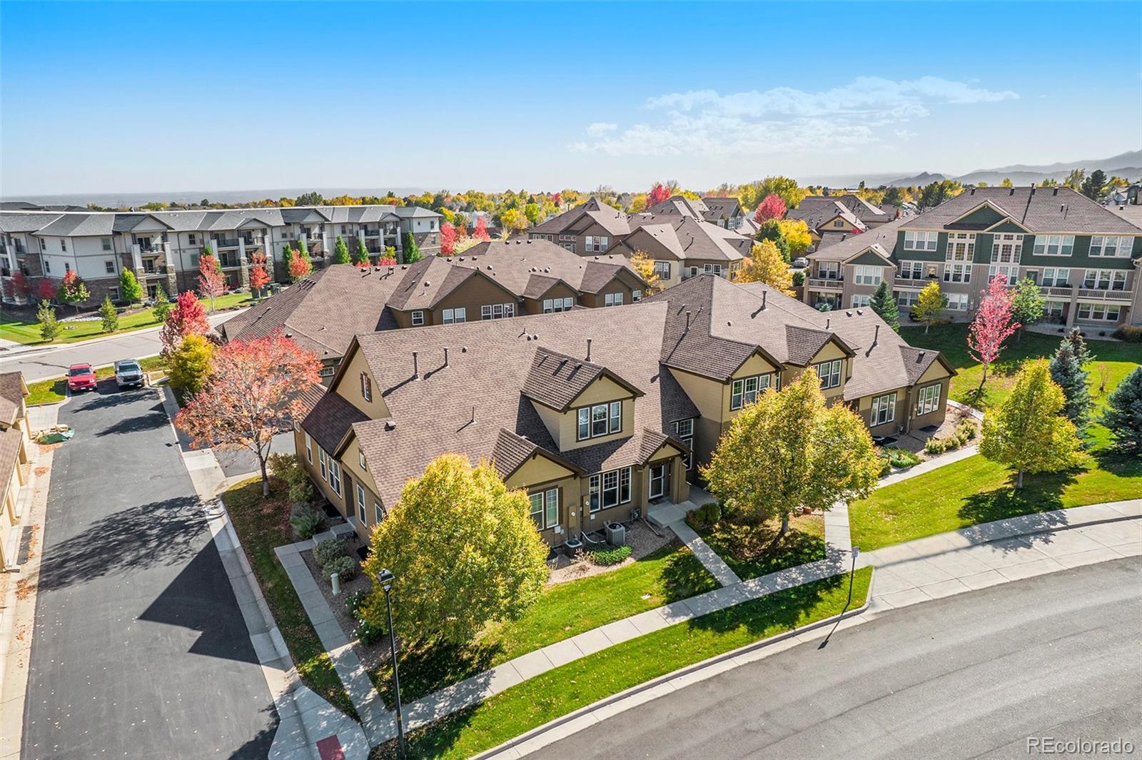 Lock-and-leave living with space, flexibility, and quick possession available. This Dancing Willows townhome offers 2,243 finished square feet plus bonus space, thoughtfully designed for buyers who want low-maintenance living without sacrificing room to live, work, and host. In addition to the two upper-level bedrooms, the finished basement offers a non-conforming third bedroom option, ideal for guests/roommate, or flex space, along with additional storage and room to customize further with a roughed in bath. The layout supports privacy between levels, making it well-suited for a variety of living arrangements. The main level features an open living area with soaring ceilings, hardwood floors, and a gas fireplace. The kitchen includes ample cabinetry, a central island, and connects easily to the dining area for everyday living and entertaining. A main-floor primary suite with five-piece bath and walk-in closet allows for comfortable one-level living. Upstairs includes a spacious secondary bedroom, full bath, and a versatile loft with built-ins for the home office plus additional living space. A spacious attached two-car garage plus unassigned guest parking nearby adds everyday convenience. Dancing Willows is known for its pool, clubhouse, walking trails, pond, scenic foothill views, and active community events, all minutes from C-470, shopping, dining, and highly sought-after Dakota Ridge High School. A rare opportunity to enjoy lock-and-leave living with flexibility, community amenities, and the ability to close quickly.