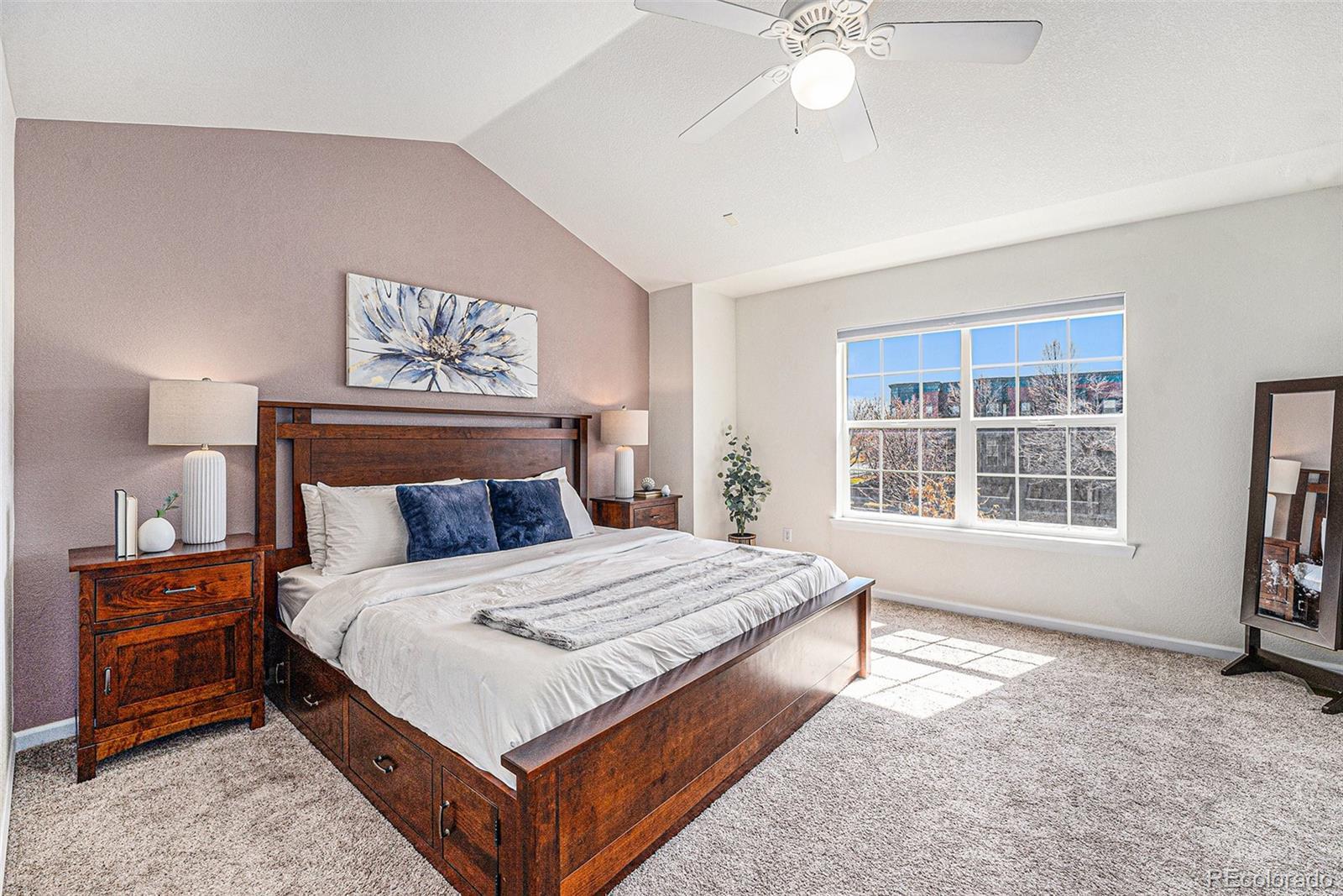 Step into this stunning, sun-drenched home in the heart of Central Park! Tucked in to a picturesque tree lined street, truly makes this home feel special. Thoughtfully designed for both comfort and entertaining, this home boasts soaring ceilings in the 2nd floor and an open layout that seamlessly connects indoor and outdoor living. The spacious kitchen features elegant maple cabinetry, while eucalyptus wood floors add warmth and character throughout the main level. Upstairs, both bedrooms are true retreats, complete with vaulted ceilings, en-suite bathrooms, and generous walk-in closets. The fully finished basement offers incredible versatility-with a full egress window and a wall of closets, it can easily function as a third bedroom, home office, recreation space, or creative studio to suit your needs. There is also space for a bathroom in the basement and it has a rough in for plumbing already in place. Don’t miss the HUGE 13.5’ x 19’ insulated storage space with cement flooring—clean, solid, and a rare bonus for serious storage needs. Outside, the backyard is a dream for garden enthusiasts, offering abundant sunlight and the potential for a thriving harvest. Nestled on a picturesque tree-lined street, this home is just moments from top dining, shopping, parks, pools, a rec center, and the vibrant Stanley Marketplace. With its unbeatable location and inviting charm, this home is more than just a place to live-it’s a place to truly feel at home. Sellers have installed a new heat pump and furnace with a cost of over $17,000 in August 2025.