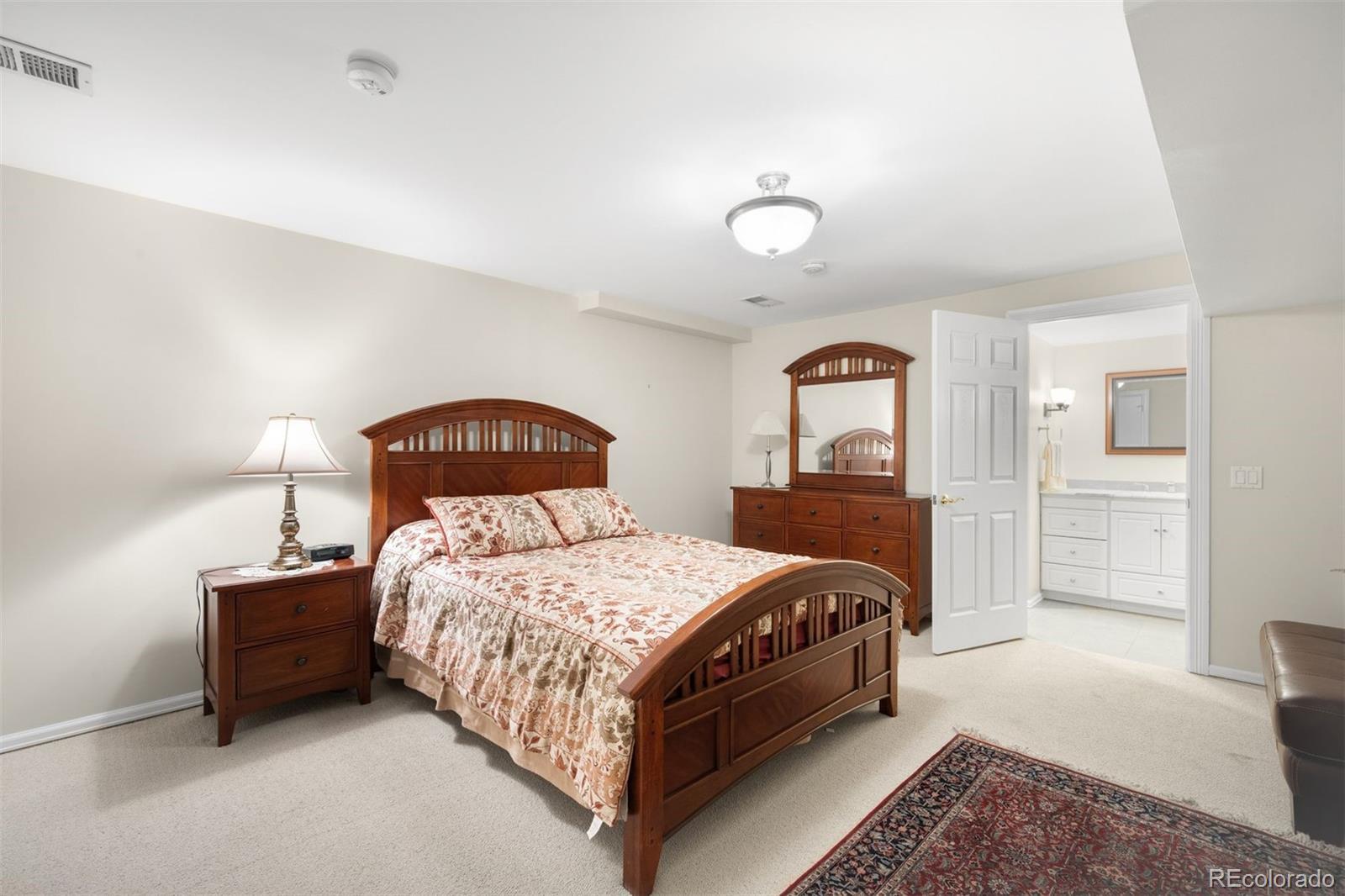 Welcome to this beautifully updated and meticulously maintained 2-story home in the sought-after Cherry Hills III community. Tucked away in a private Denver location, this residence offers tranquil outdoor living with brick patios, retractable awnings, and the soothing sound of a nearby stream. Inside, floor-to-ceiling windows, vaulted ceilings, and a cozy fireplace create a light-filled living space. The gourmet kitchen features GE Profile and Bosch stainless steel appliances, with a formal dining area and bar nearby—perfect for entertaining. A breakfast nook opens to a private side patio, ideal for morning coffee or evening wine. The main-level suite (currently a family room) includes a fireplace, en-suite bath, and private patio. Upstairs, enjoy a spacious loft, guest room, and a second primary suite—each with a private balcony, walk-in closet, and en-suite bath.The finished basement offers a bedroom with en-suite bath, wine cellar, kitchenette, and two flexible living spaces. New furnace and A/C (2022). Cherry Hills III amenities include a clubhouse, pool, spa, tennis courts, and vibrant social events—true resort-style living in the heart of Denver.