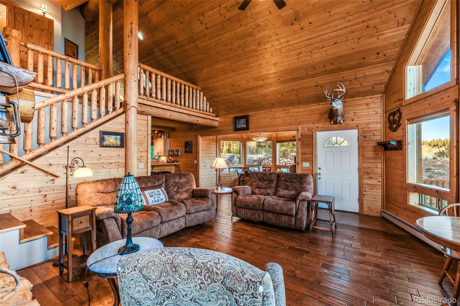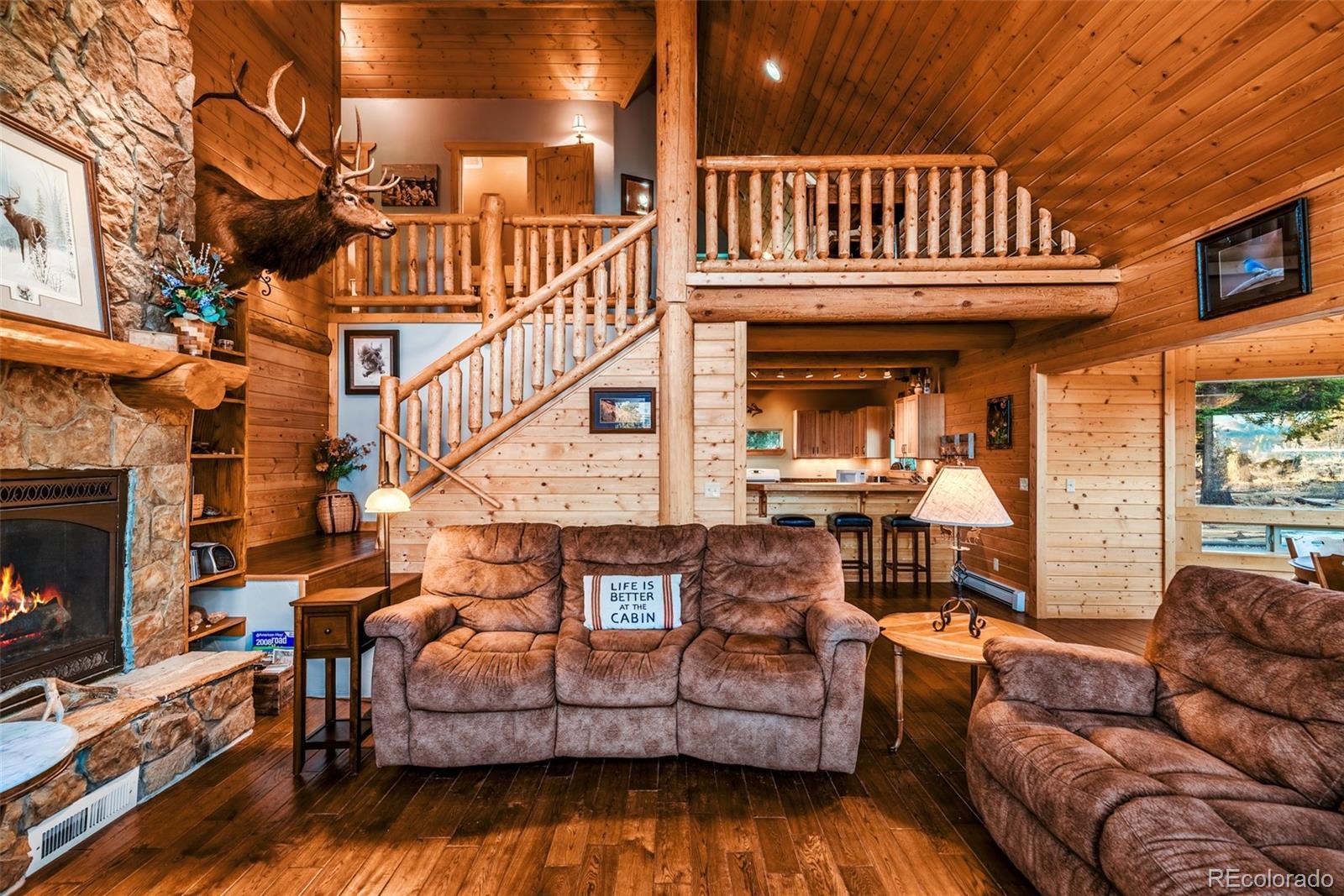 This cabin in the most beautiful part of Indian Mountain is true luxury, off-grid, cabin living. From the native landscaping to the unique design of the home so many details make this a truly special cabin. This log sided cabin in a beautiful location would be the perfect vacation cabin, family home, or rental property. The main level living area has a spacious great room with a gas log fireplace, a well appointed kitchen with a pantry and extra seating, and dining space. This is an ideal space for spending time with family or entertaining. Tongue and groove walls and ceilings and beautiful log beams add a cabin ambiance. A wall of windows lets you take in the mountain and valley views. A half bath and laundry room are also located on the main level. The primary suite is tucked away at the back of the main level with a roomy bedroom and a lovely bathroom with a soaking tub and walk in shower. The wrap around deck, a great spot for entertaining and relaxing, is accessible from both the living area and the primary suite. The upper level has two bedrooms with walk in closets, a 3/4 bath, and a loft space perfect for a home office or extra sleeping. The lower level completes the cabin with a game room and a utility room. This level leads you out to a lovely stone patio where you can enjoy the clear night skies and cozy up to the firepit. A massive solar system with new batteries, a Kohler generator, a tankless water heater, and a boiler which provides baseboard heat will keep you cozy year round. This elegant, off-grid, self sufficient cabin is a must see.
