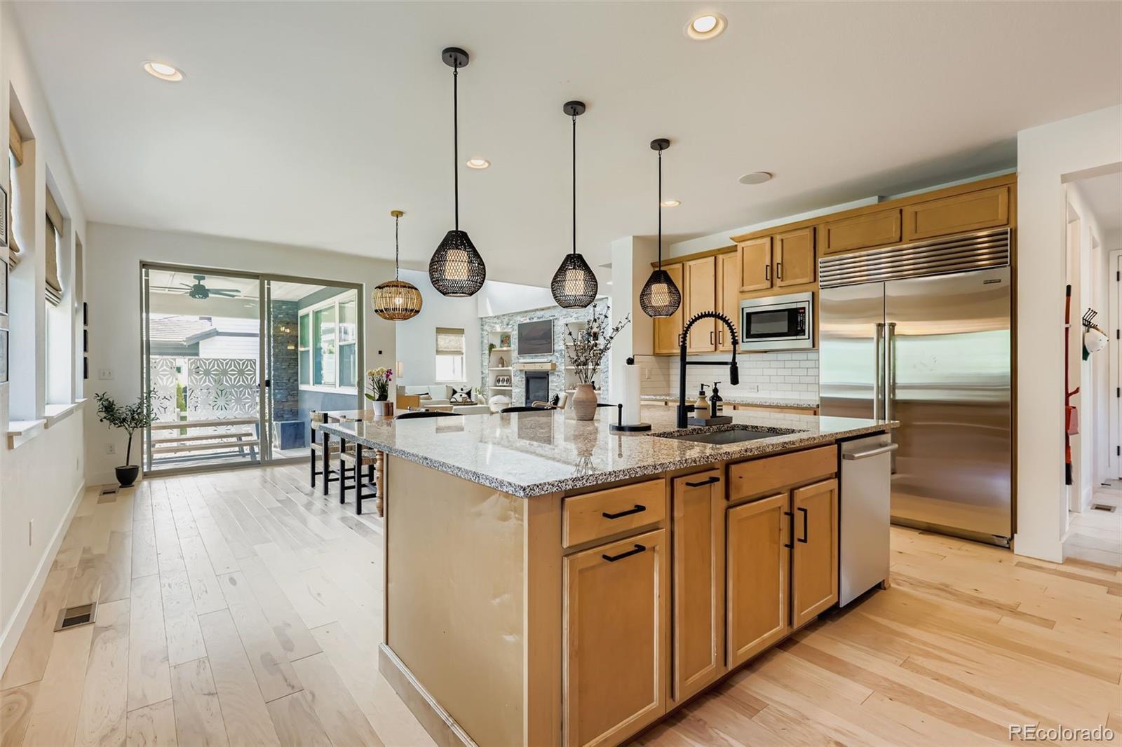 Exquisite 5-Bed, 4-Bath Home in Prime Broomfield Location | Luxury Kitchen Welcome to your dream home in the heart of the Anthem community in Broomfield, Colorado, where modern luxury meets everyday comfort. This beautifully appointed 5-bedroom, 4-bathroom home offers spacious living, elegant finishes, in-ceiling speakers and a chef-inspired kitchen that will exceed your highest expectations. Nestled in a quiet, friendly neighborhood with top-rated schools, parks, and easy access to Denver, Boulder, and DIA. Enjoy nearby trails, shopping, dining, and all that Broomfield has to offer. Property Highlights: 5 Spacious Bedrooms – Including a stunning primary suite with walk-in closet and spa-like en-suite bath. 4 Bathrooms – Tastefully designed with modern tile, vanities, and high-end fixtures. Luxury Kitchen – A true showstopper! Featuring custom cabinetry, high-end stainless steel appliances including a Sub-Zero refrigerator and a Wolf cooktop, oversized granite island, double ovens, and a walk-in pantry — perfect for entertaining or the passionate home chef. Open Concept Living – Bright and airy living space with soaring ceilings, hardwood floors, and a cozy custom stone gas fireplace. Finished Basement – Ideal for a home theater which has been pre-wired for surround sound, gym, or guest suite. 2-Car Garage – Plenty of room for vehicles, storage, and gear. Professionally Landscaped Yard – Fully fenced backyard with heated patio space and Evergreen Trees.