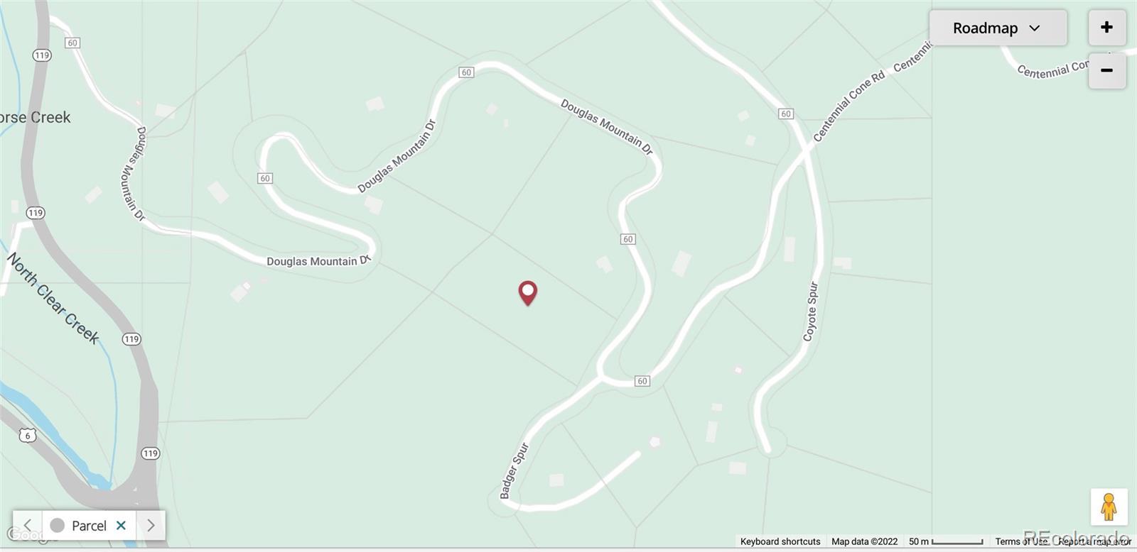 Amazing opportunity to build your dream home, and be surrounded by peace and beauty! Located just 20 minutes from Golden, in the desirable Douglas Mountain Ranch between Golden Gate and Clear Creek Canyons. Less than a mile to the Centennial Cone Park West Trailhead with over 3,500 acres to explore! Mayhem Gulch Trailhead, Clear Creek, and the paved Peak to Plains trail are waiting for you to enjoy with Biking, Hiking, and Fishing at your disposal. This Southwest-facing lot has easy access with a short drive from Highway 119 and is well maintained in the winter. The Well permit has been granted, including allowance to serve an accessory dwelling. The County has also approved driveway access off of Badger Spur. Electric connection is close by. No HOA.