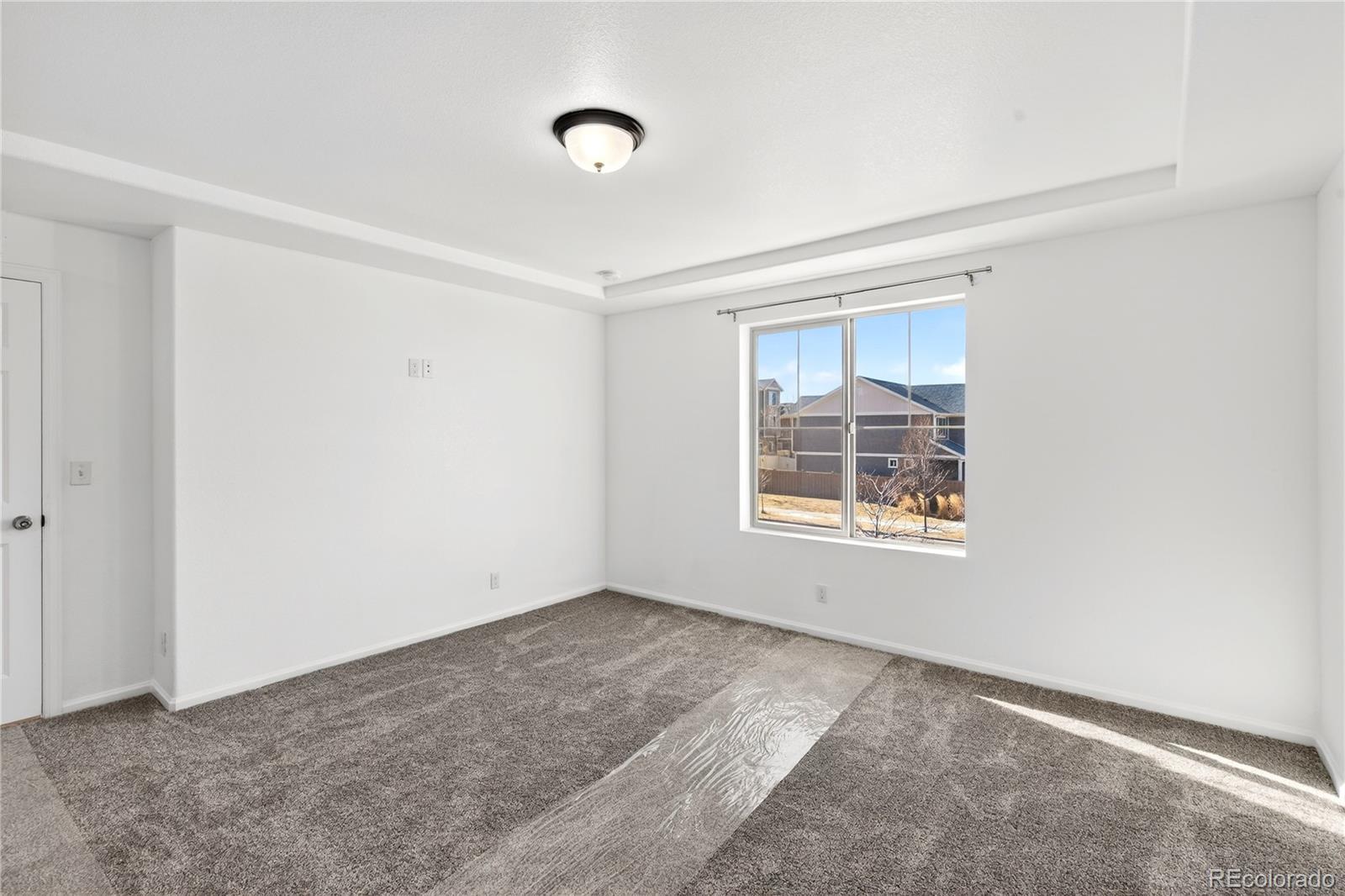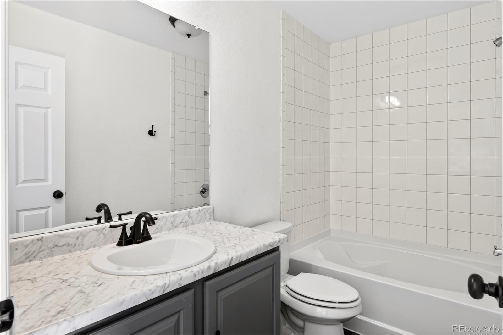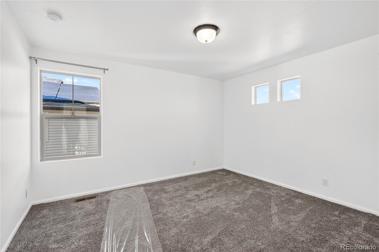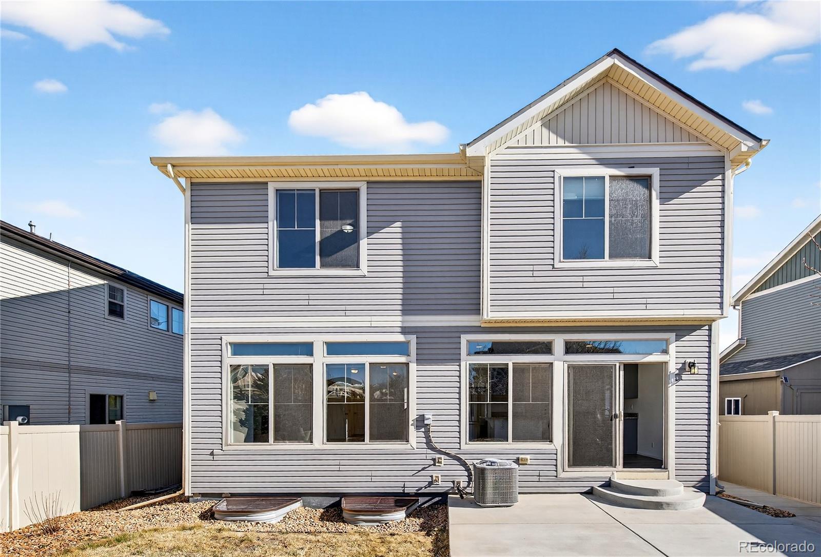 Welcome home to this beautifully maintained 2018 two-story residence with a fully finished basement, perfectly situated in the highly desirable First Creek Village / Green Valley Ranch community. Offering over 3,300 sq ft of thoughtfully designed living space, this home combines comfort, functionality, and style—ready for its next owners to enjoy. Step inside to an inviting open-concept main level featuring a formal dining room, spacious living room with a cozy gas fireplace, and a well-appointed kitchen ideal for both everyday living and entertaining. A convenient powder room greets you near the entry. Upstairs, you’ll find most of the bedrooms plus a perfectly placed laundry room, making daily routines effortless. The finished basement expands your living options with a large family room, guest bedroom, 3/4 bathroom, and a dedicated office with bonus room—ideal for remote work, guests, or multi-generational living. Outside, enjoy a fully fenced backyard with sprinkler system and expansive concrete patio, perfect for summer gatherings, play, or relaxing evenings under the Colorado sky. With 4 bedrooms, 3.25 bathrooms, a great layout, and pride of ownership throughout, this home truly checks every box. Schedule your showing today—this one is a must-see!