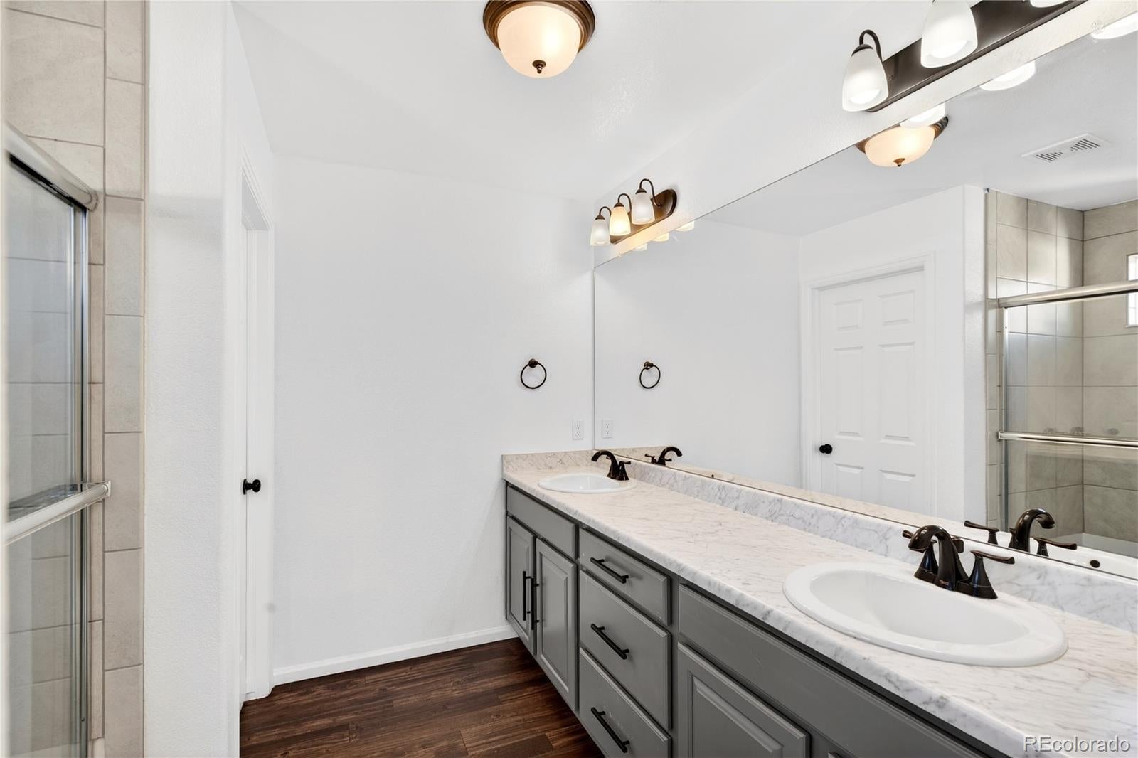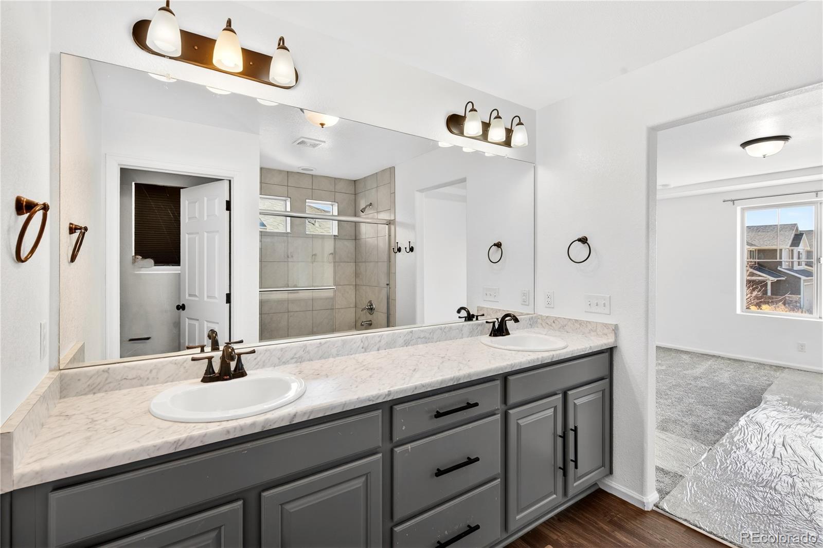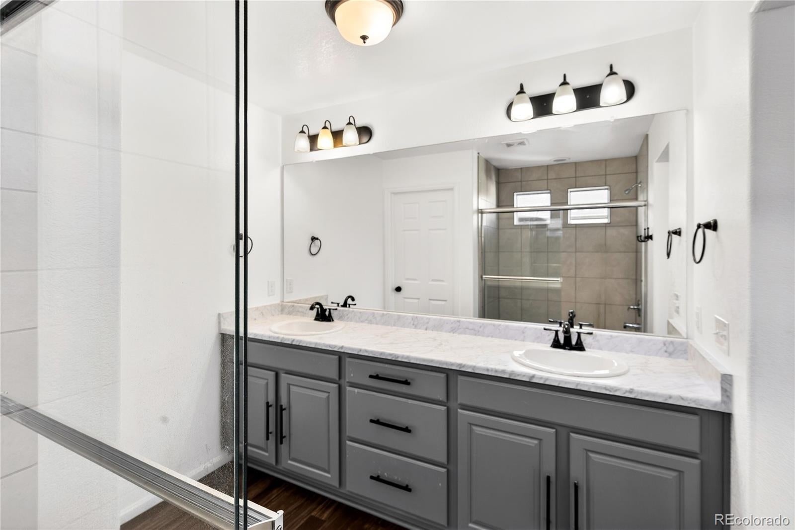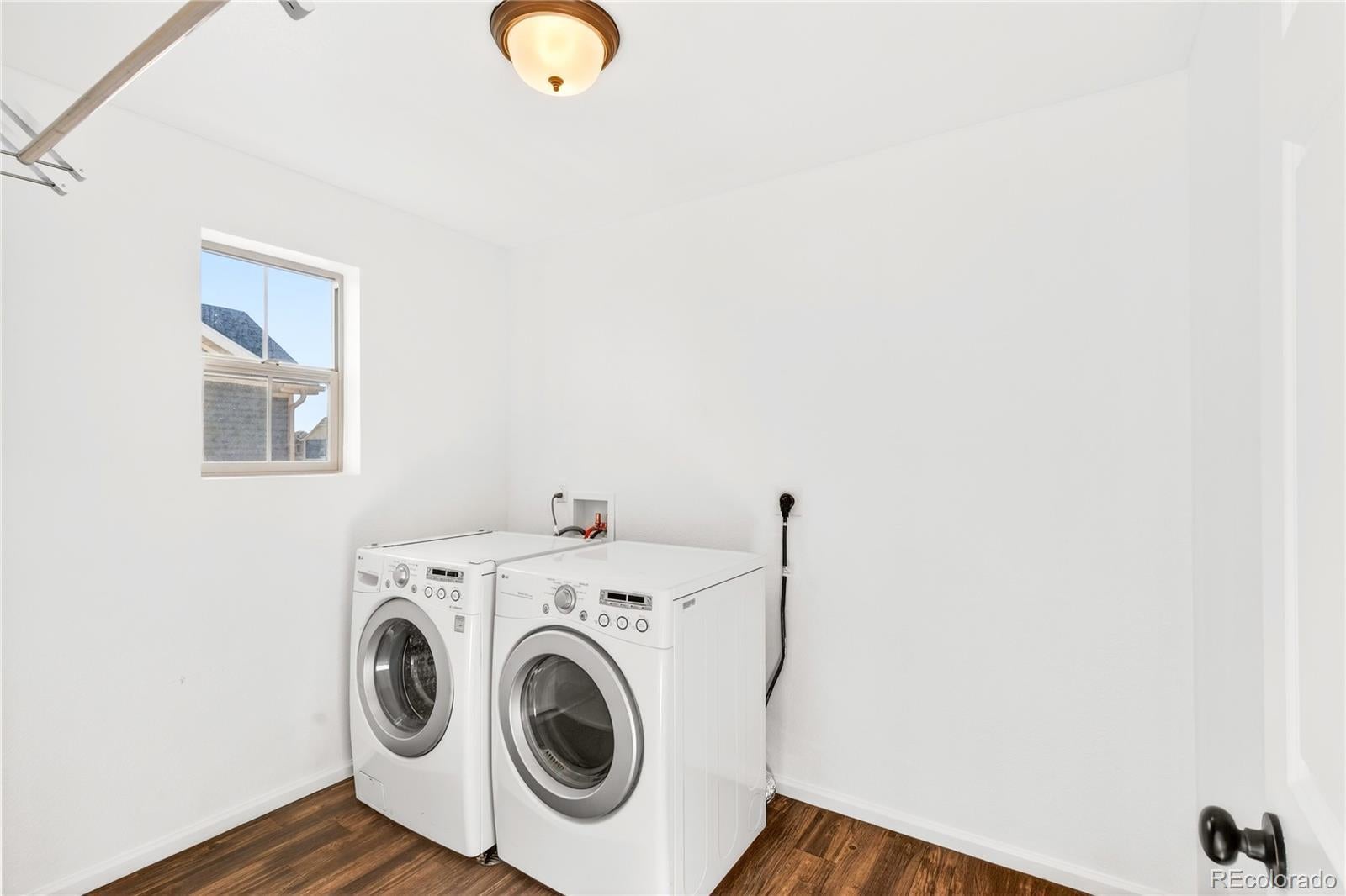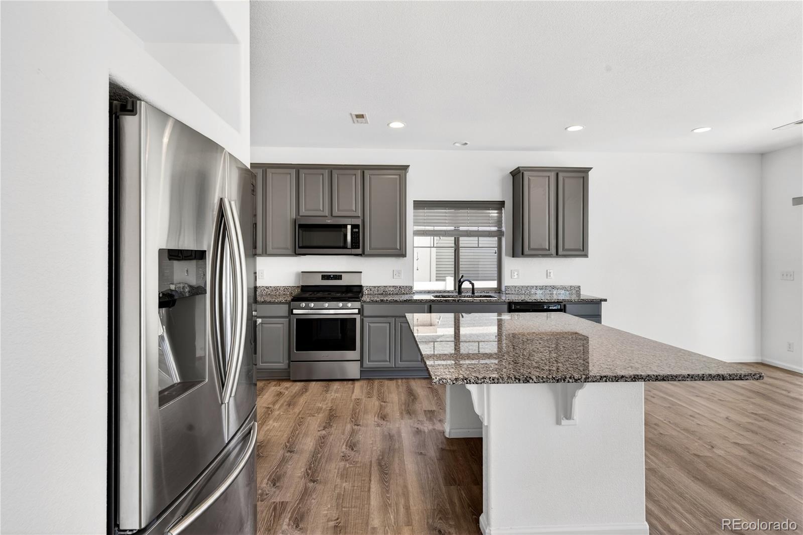 Welcome home to this beautifully maintained 2018 two-story residence with a fully finished basement, perfectly situated in the highly desirable First Creek Village / Green Valley Ranch community. Offering over 3,300 sq ft of thoughtfully designed living space, this home combines comfort, functionality, and style—ready for its next owners to enjoy. Step inside to an inviting open-concept main level featuring a formal dining room, spacious living room with a cozy gas fireplace, and a well-appointed kitchen ideal for both everyday living and entertaining. A convenient powder room greets you near the entry. Upstairs, you’ll find most of the bedrooms plus a perfectly placed laundry room, making daily routines effortless. The finished basement expands your living options with a large family room, guest bedroom, 3/4 bathroom, and a dedicated office with bonus room—ideal for remote work, guests, or multi-generational living. Outside, enjoy a fully fenced backyard with sprinkler system and expansive concrete patio, perfect for summer gatherings, play, or relaxing evenings under the Colorado sky. With 4 bedrooms, 3.25 bathrooms, a great layout, and pride of ownership throughout, this home truly checks every box. Schedule your showing today—this one is a must-see!
