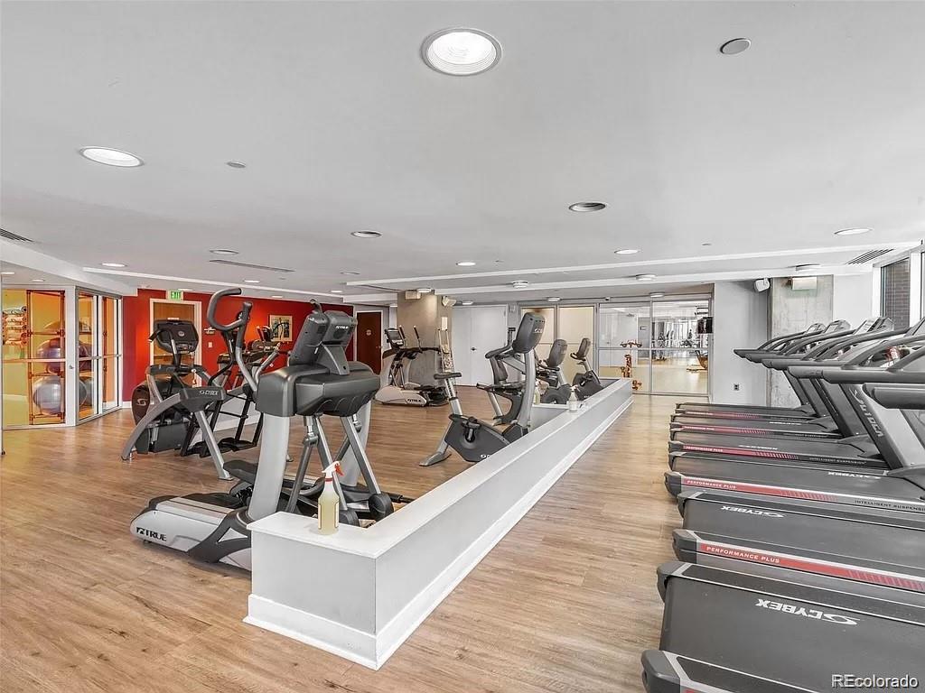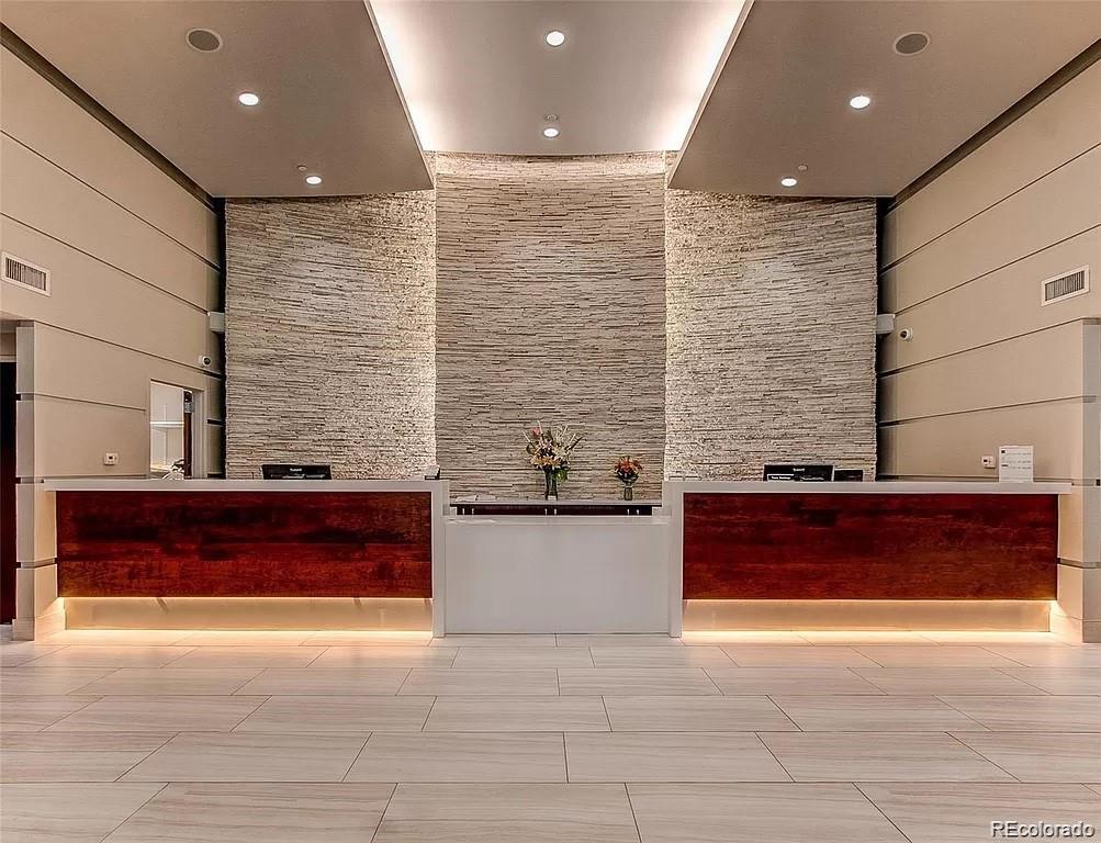 This elegant corner unit lives up to its name with floor-to-ceiling windows throughout and expansive views of the city. The kitchen features newer cabinets, granite counters, and a noiseless Bosch dishwasher. Heated, wood-look tile floors in living and dining room. The Glass House is a premier building in Riverfront Park with close proximity to the Performing Arts Center, Commons Park, Confluence Park, the Platte River, and Union Station. Newer remodeled common area on the 8th floor with free wi-fi, complimentary coffee and a variety of espresso drinks, deck, work space, movie room, and a great outdoor pool area and gardens. Fitness center in building. Front desk staffed 24/7. The ultimate in convenience in downtown living.