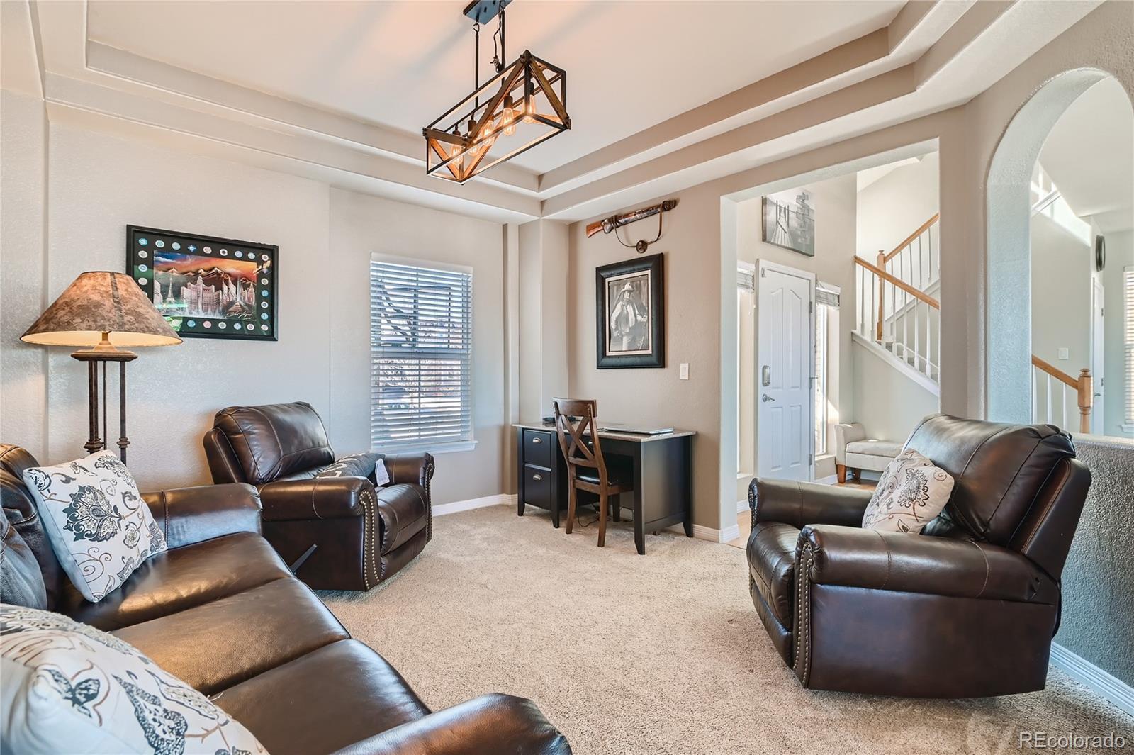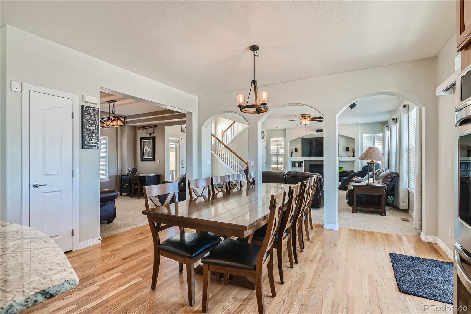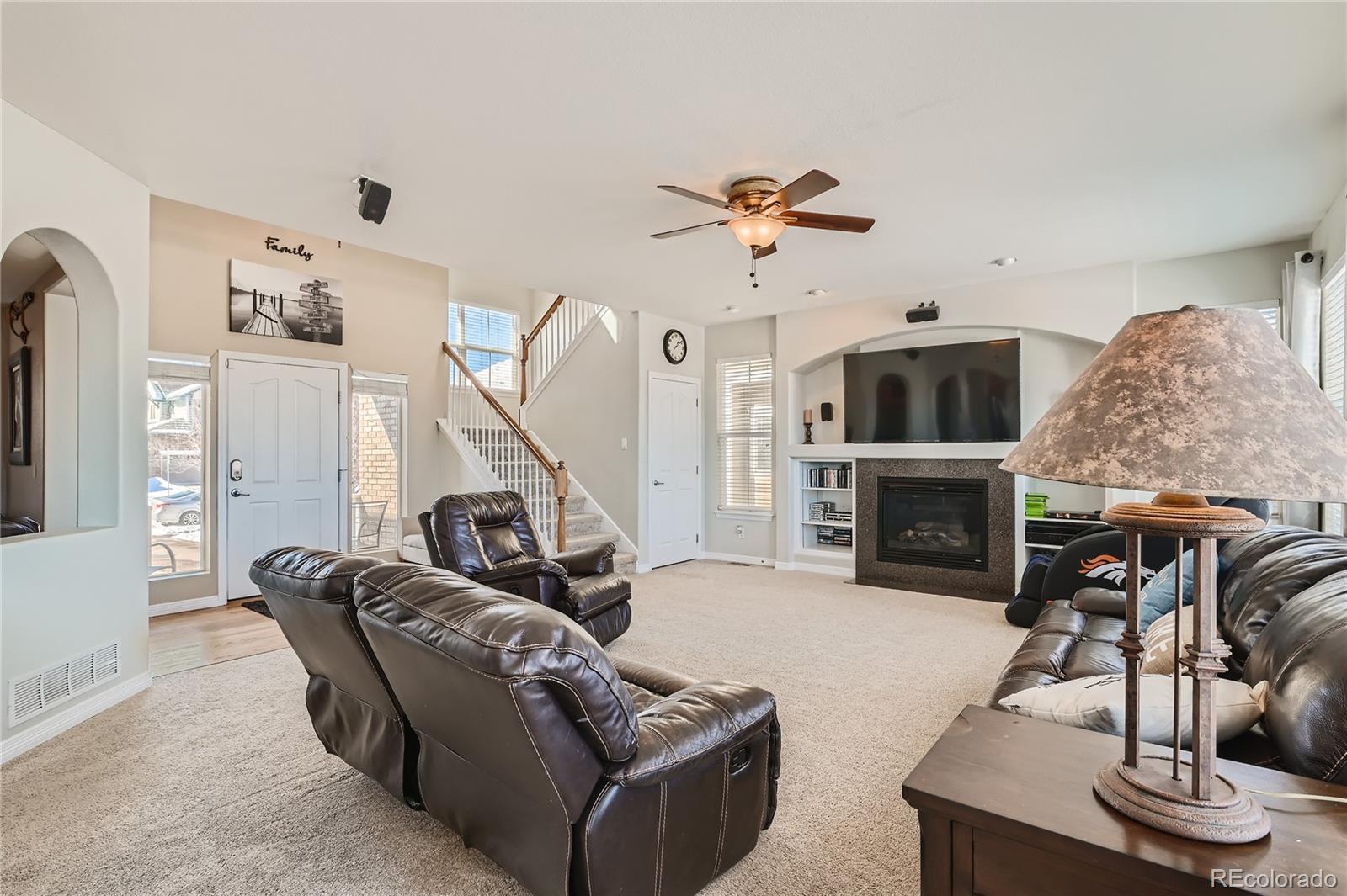 You’ll love this expansive 6-bedroom, 4-bath home near the Aurora Reservoir. This home offers 3,782 square feet of well-proportioned interior space and a layout that adapts easily to a wide range of lifestyles. For qualified veterans, an incredible opportunity awaits with the potential to assume the seller’s VA loan at an enviable 2.25% interest rate. The main level opens with vaulted ceilings and generous sightlines that bring in natural light and create a sense of scale without feeling overwhelming. A gas fireplace anchors the living room, with easy transitions to the formal dining area and breakfast nook—spaces that work for quiet evenings and hosting. The kitchen is polished and practical, with granite countertops, a substantial island, double ovens, and ample workspace. It’s a room designed for use, not just display. Upstairs, the primary suite offers privacy and space, with vaulted ceilings, large walk-in closet, and a five-piece bath with a clean, timeless feel. Three other bedrooms on the upper level provide flexibility for guests, offices, or creative use. The walkout lower level extends the living experience with a generous rec room, wet bar, and two more bedrooms. Outdoors, the home is framed by tasteful landscaping and provides easy maintenance with sprinklers front and back. A deck and covered patio create multiple options for outdoor use. The three-car garage accommodates vehicles, storage, and gear with ease. Enjoy peace of mind knowing the roof was replaced in 2023. Residents enjoy access to a community pool and clubhouse for a low annual HOA fee. The location offers convenient access to Southlands, E-470, and daily essentials, and is served by the Cherry Creek School District. Additional features include leased, transferable solar panels, energy-efficient systems, and recent bathroom updates. This is a property that delivers scale, flexibility, and long-term livability in one of southeast Aurora’s most coveted communities.