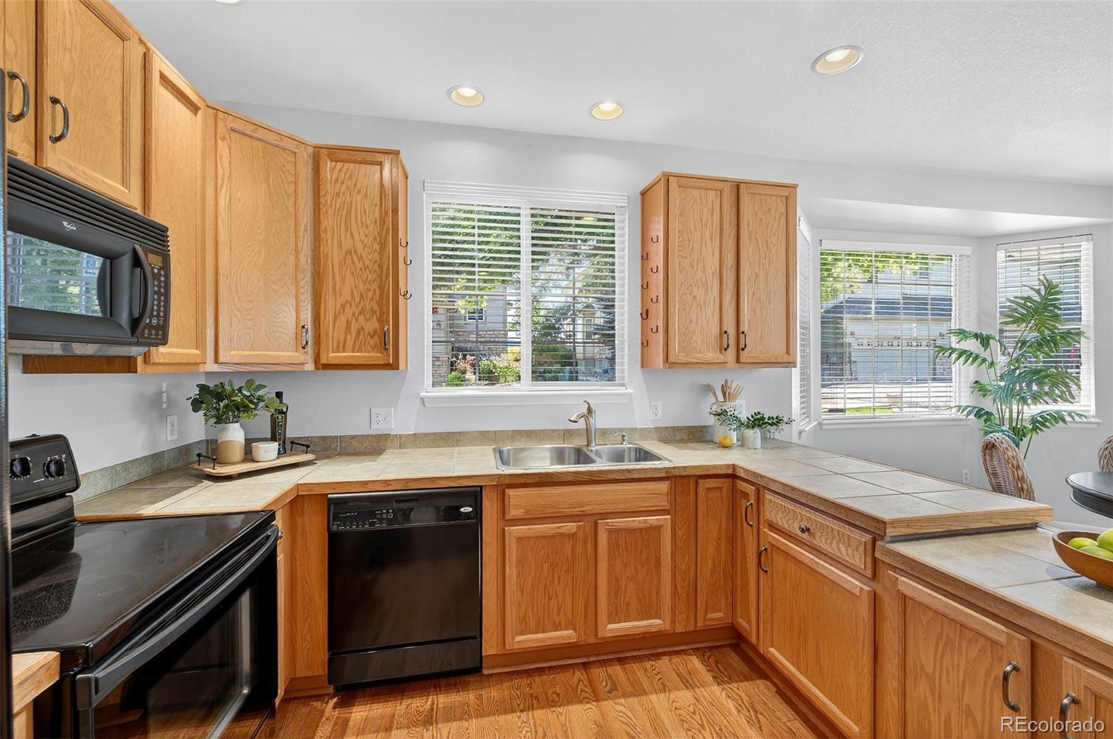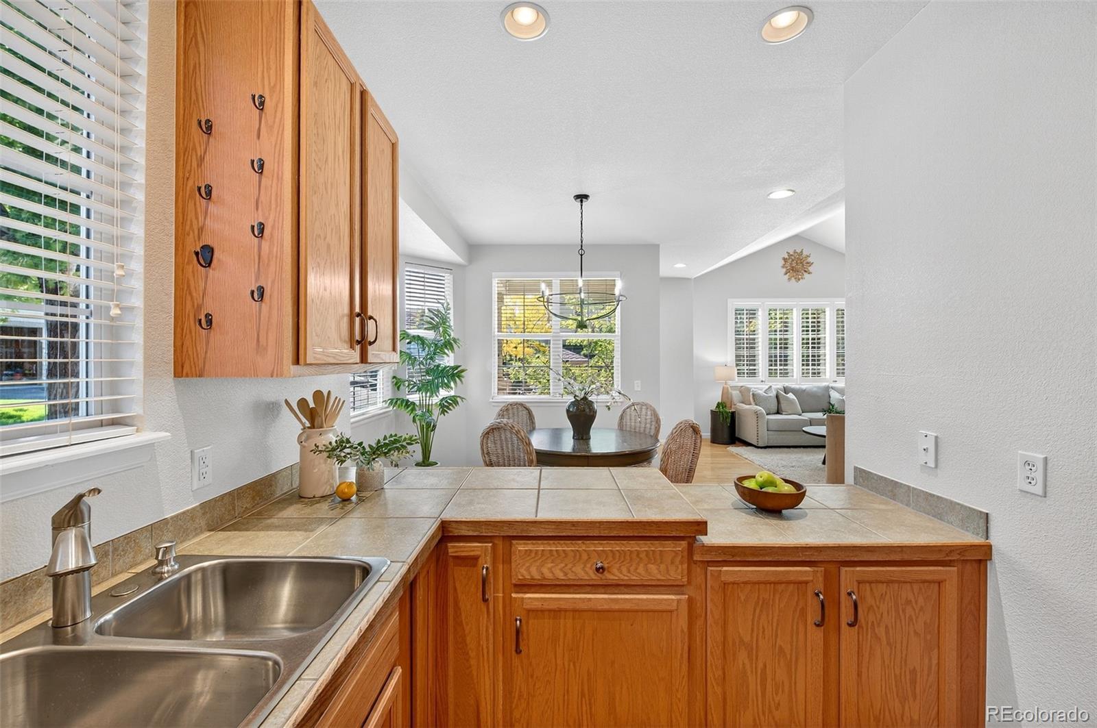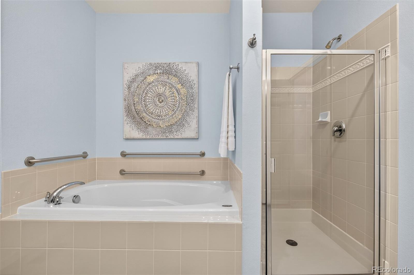 Welcome to this beautifully appointed end-unit RANCH townhome offering a combination of handicapped accessibility and low maintenance living. This home has been well taken care of and is near the Polly A Deane Reservoir. You will love the spacious open floor plan with vaulted ceilings and abundant natural light. The kitchen is open to the charming dining area The private main floor primary suite features a luxurious 5-piece bath with handicapped bars. Another large bedrooms with a full hall bath and handicapped bars is perfect for guests or an office. There is an unfinished basement with a great built-in workbench. A drill press and saw are included as well. The HOA covers exterior maintenance, snow removal, and community amenities including the nearby pool. Just steps to community paths, lake access, regional park trails, and open space. Easy commuting via I-70 and C-470. If you have been waiting for a fabulous low maintenance ranch home- this is the one!