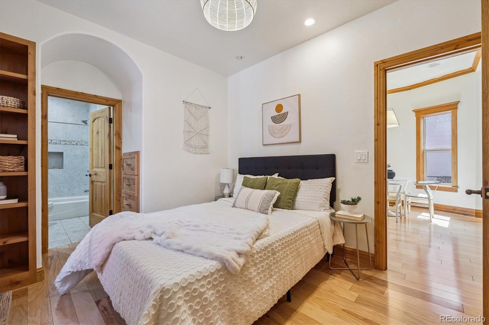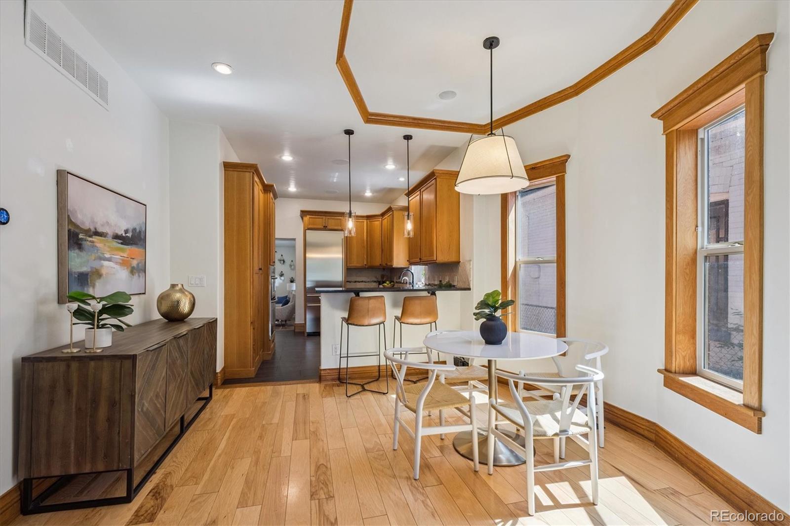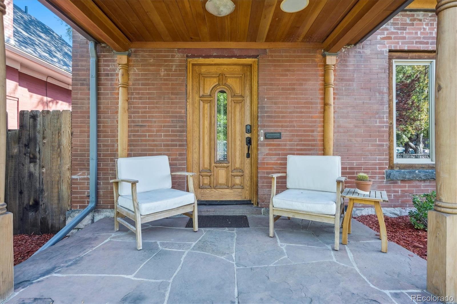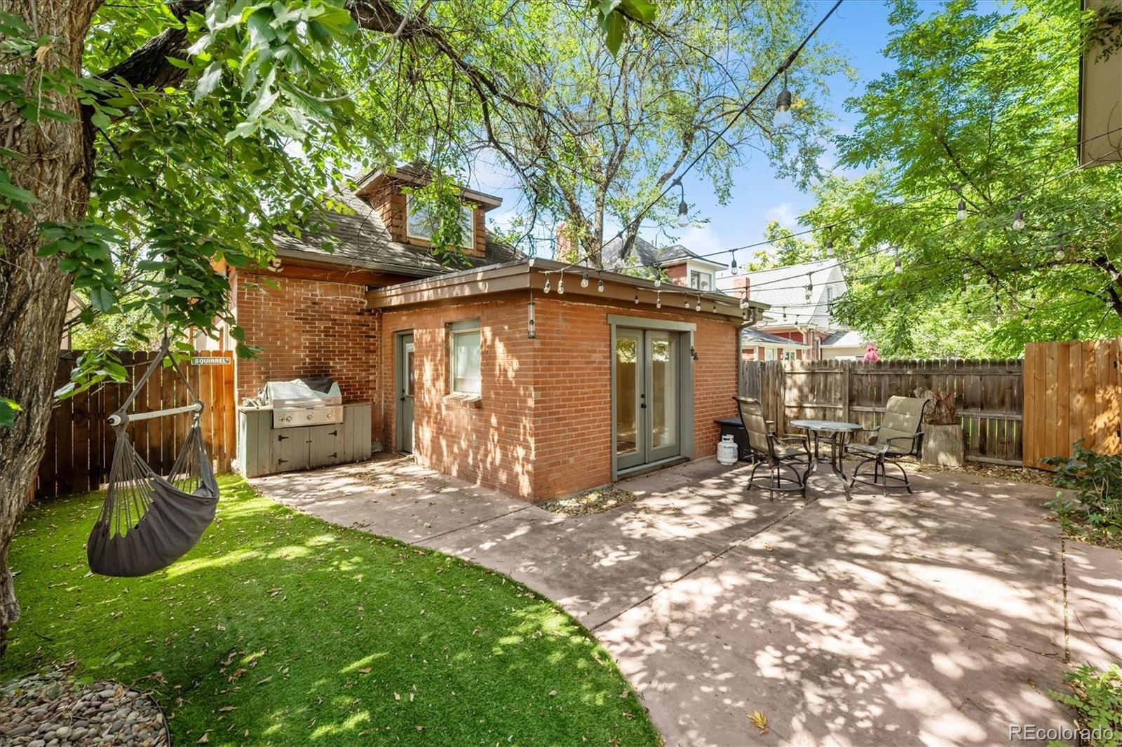 Your search ends here w/ this Cole neighborhood stunner—featuring not only a beautifully updated main home, but also a private ADU perfect for extra income or hosting guests. The main residence offers 2 bedrooms & 2.5 baths, thoughtfully renovated to balance modern finishes w/ timeless character. Step into a welcoming foyer which flows into the living room, where tall ceilings, a cozy fireplace, solid wood doors, & custom oak built ins set the tone providing style & functionality. The open yet practical layout offers both flow & privacy, while the dining room w/ darling coved windows is ideal for entertaining. The remodeled kitchen is a chef’s delight w/ granite counters, a plethora of storage, gas range & breakfast bar. The family room in rear of the home provides an additional flexible space for lounging, home office or home gym. 1/2 bathroom is tucked away nicely w/ easy access for guests and residents alike. The main level bedroom includes its own updated bath & generous storage. Head upstairs for the private office as well as the generous primary suite w/ private bath and westerly facing window & views. Lots of space to spread out, recreate and relax in the front and back yard spaces. Fully fenced front yard features raised garden beds & gorgeous green lawn. When you're done recreating, cruise around to the back patio to relax in seclusion. The built-in grill, easy access to kitchen & the turf combine to make this space functional & low maintenance. Oversized 2-car garage w/ storage & heat was added in 2021 along w/ the ADU, offering 423 sq. ft. w/ 1 bed & 1 bath—ideal for guests, extended family, or rentals(STR rental history can be provided to interested buyers). All of this in an unbeatable location: minutes to Downtown, RiNo Arts District, easy Light Rail access. Walk to favorite shops, markets, & restaurants, come home to a true Denver gem where historic character meets modern convenience. ADU sq. ft. included in total. Open House Saturday 11/8 11-1