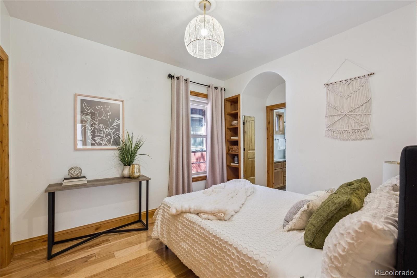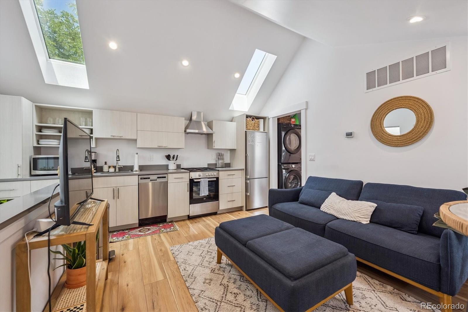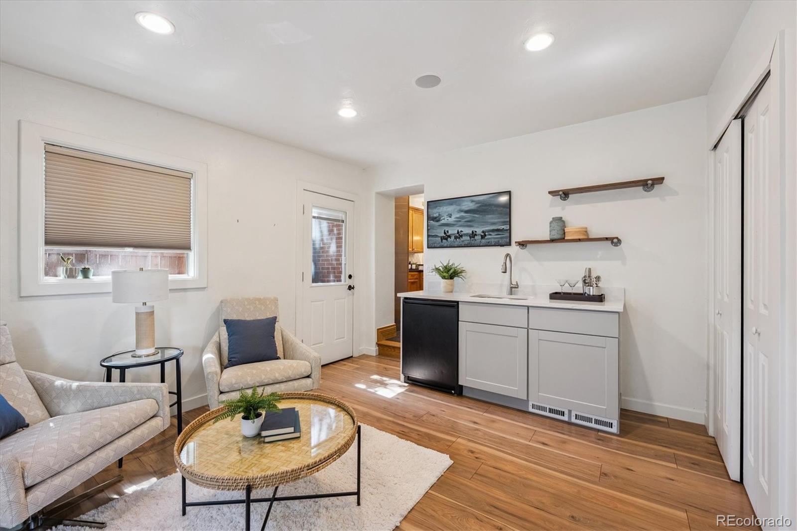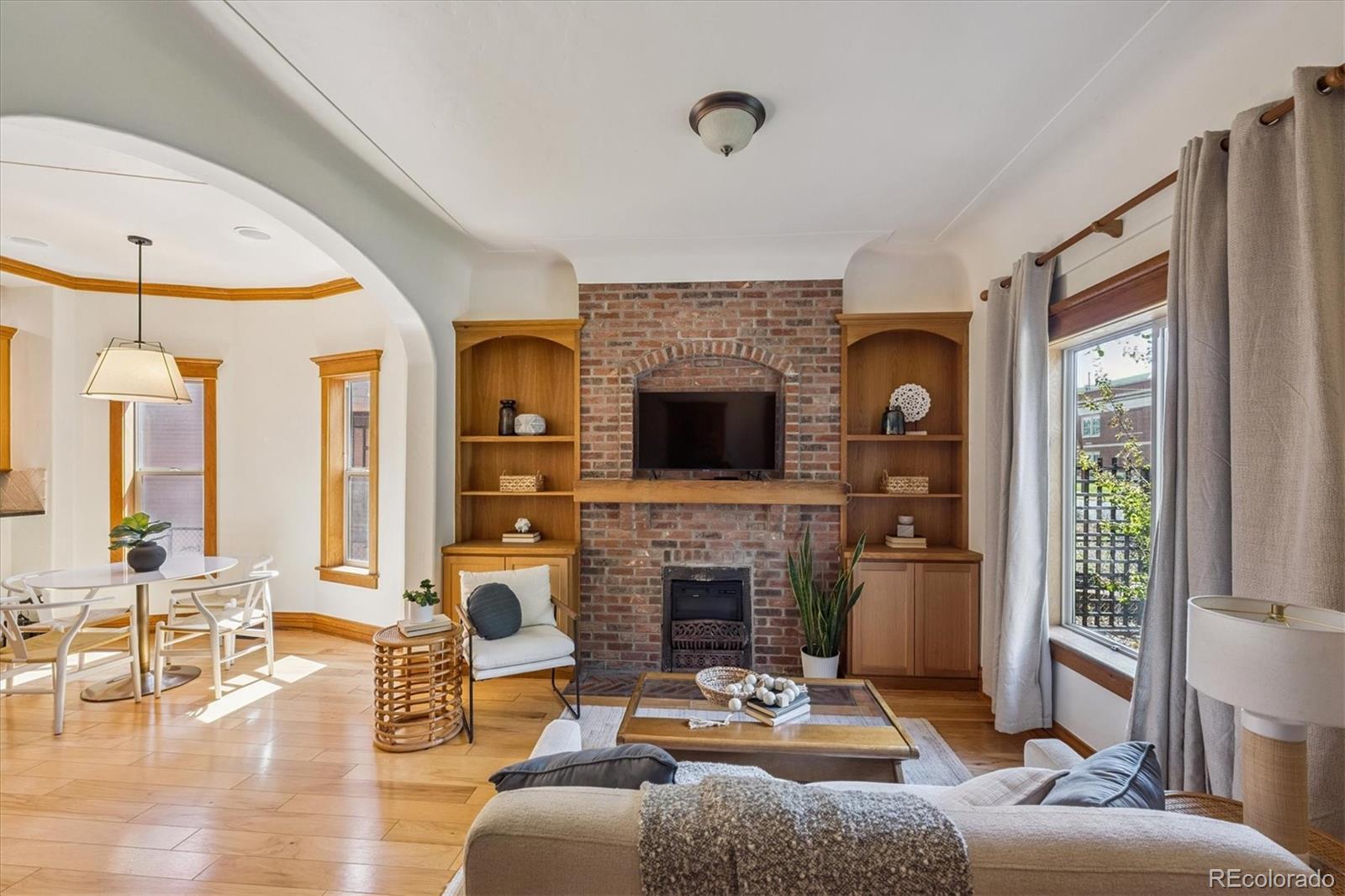 Your search ends here w/ this Cole neighborhood stunner—featuring not only a beautifully updated main home, but also a private ADU perfect for extra income or hosting guests. The main residence offers 2 bedrooms & 2.5 baths, thoughtfully renovated to balance modern finishes w/ timeless character. Step into a welcoming foyer which flows into the living room, where tall ceilings, a cozy fireplace, solid wood doors, & custom oak built ins set the tone providing style & functionality. The open yet practical layout offers both flow & privacy, while the dining room w/ darling coved windows is ideal for entertaining. The remodeled kitchen is a chef’s delight w/ granite counters, a plethora of storage, gas range & breakfast bar. The family room in rear of the home provides an additional flexible space for lounging, home office or home gym. 1/2 bathroom is tucked away nicely w/ easy access for guests and residents alike. The main level bedroom includes its own updated bath & generous storage. Head upstairs for the private office as well as the generous primary suite w/ private bath and westerly facing window & views. Lots of space to spread out, recreate and relax in the front and back yard spaces. Fully fenced front yard features raised garden beds & gorgeous green lawn. When you're done recreating, cruise around to the back patio to relax in seclusion. The built-in grill, easy access to kitchen & the turf combine to make this space functional & low maintenance. Oversized 2-car garage w/ storage & heat was added in 2021 along w/ the ADU, offering 423 sq. ft. w/ 1 bed & 1 bath—ideal for guests, extended family, or rentals(STR rental history can be provided to interested buyers). All of this in an unbeatable location: minutes to Downtown, RiNo Arts District, easy Light Rail access. Walk to favorite shops, markets, & restaurants, come home to a true Denver gem where historic character meets modern convenience. ADU sq. ft. included in total. Open House Saturday 11/8 11-1