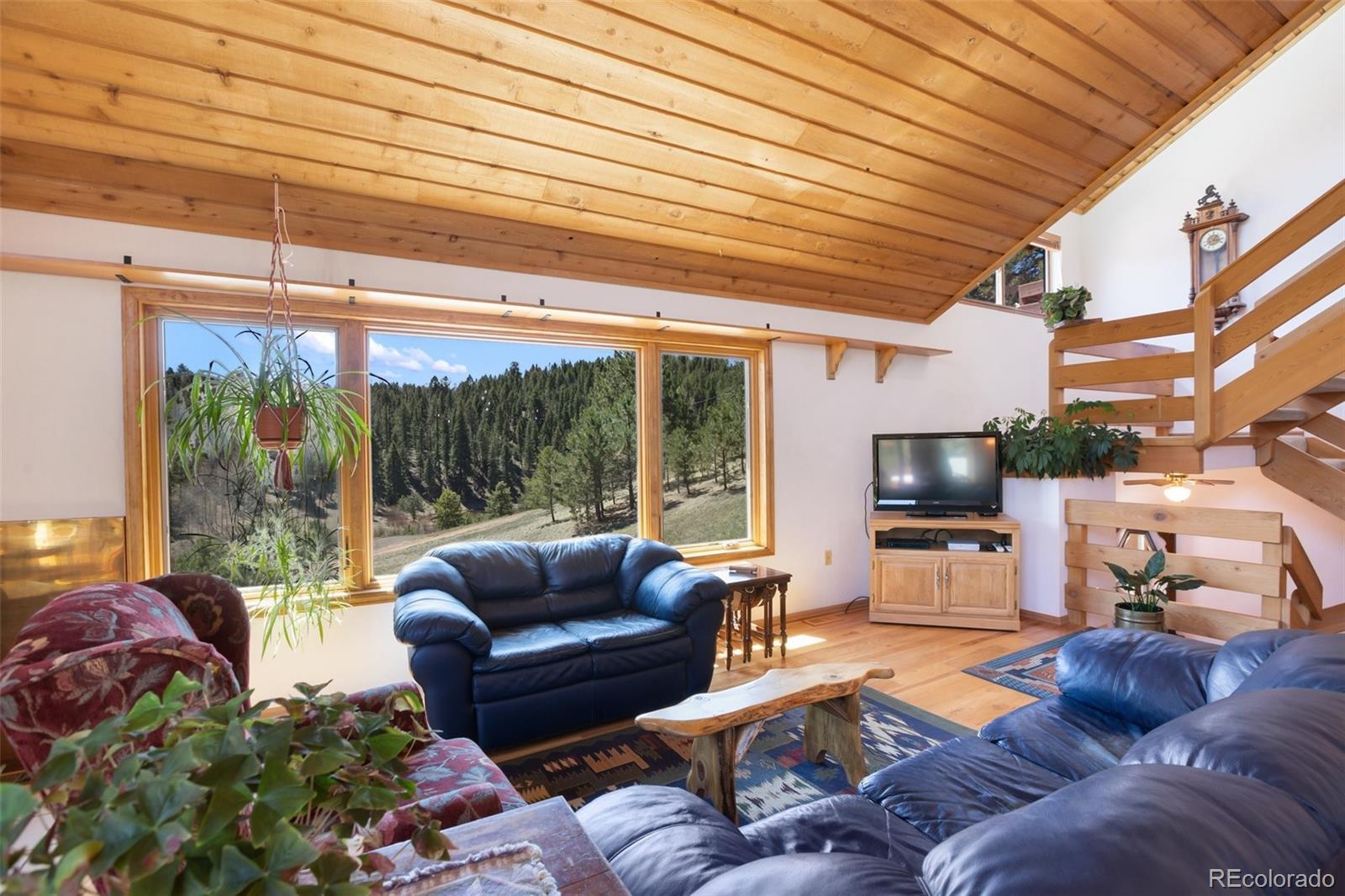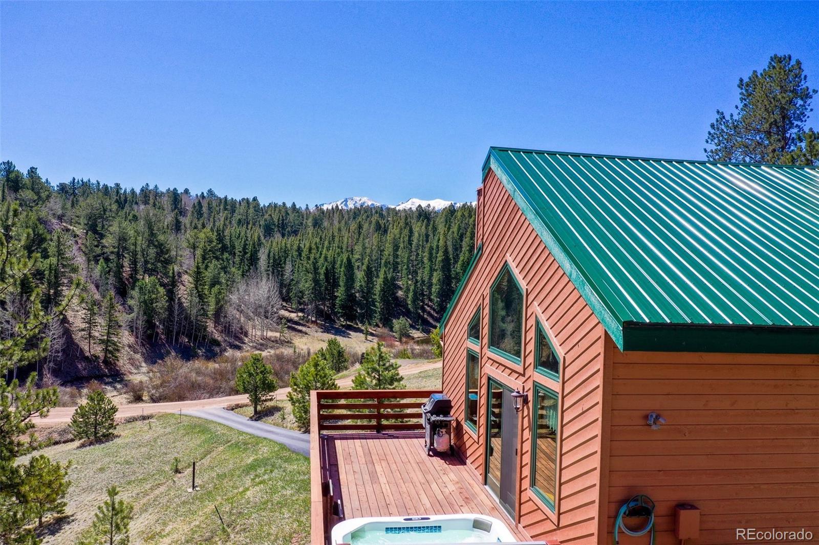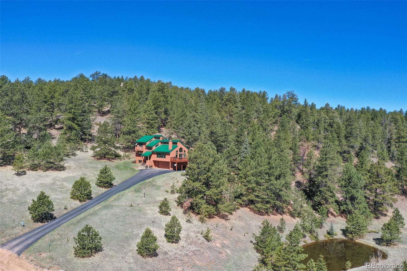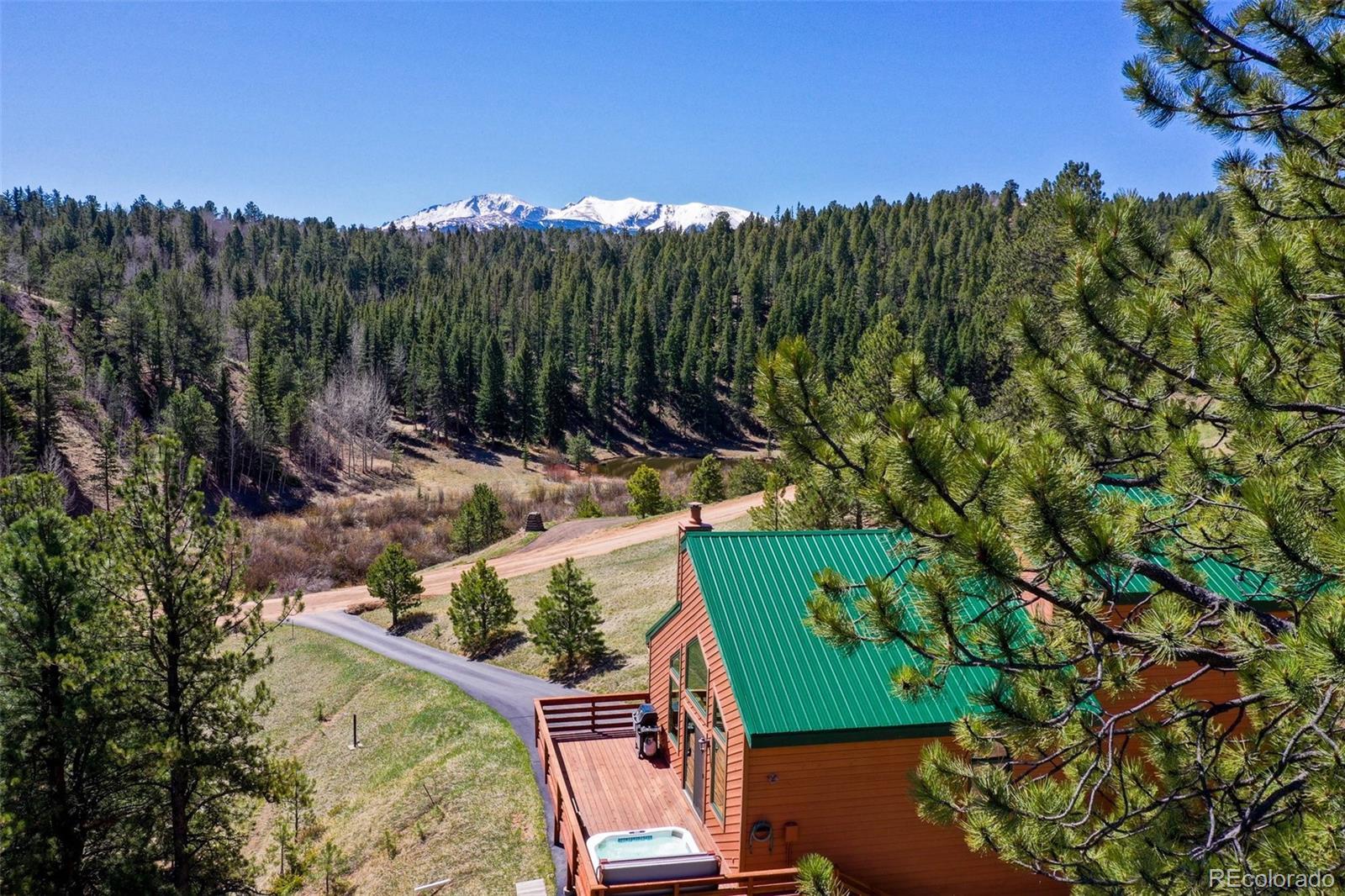 Mountain Luxury Meets Timeless Elegance – Pikes Peak Views, Private Creek & Pond on Nearly 5 Acres Welcome to a truly extraordinary offering in the heart of Colorado’s most desirable mountain town. Nestled on just under 5 pristine acres, this exquisite 4-bedroom, 3-bath estate blends refined mountain living with comfort, craftsmanship, and unforgettable views. Sophisticated Living Spaces: Step inside to soaring vaulted ceilings with tongue-and-groove detail, rich hardwood flooring, and a sun-drenched great room anchored by a freestanding wood-burning stove. The open-concept kitchen features a large breakfast bar, walk-in pantry, and near-new appliances—perfect for entertaining or quiet evenings at home. Serene Master Retreat: Privately perched on the upper level, the luxurious master suite offers a five-piece spa bath, spacious walk-in closet, and a private balcony showcasing panoramic views of iconic Pikes Peak. Versatile Spaces: A charming loft overlooks the main living area, ideal for a library, studio, or home office. The expansive lower level includes a beautifully appointed office with custom built-ins, a guest bedroom, and full bath—ideal for multi-generational living or a private work-from-home setup. Unmatched Outdoor Beauty: Enjoy the ultimate in outdoor Colorado living with a spacious deck and hot tub, a serene creek and pond, and mature pines offering peace and seclusion. The oversized 2-car garage, carport, and workshop provide ample room for vehicles and gear. Premium Features Include: Brand NEW Furnace, Recently painted wood siding Durable 4-year-old metal roof Resealed paved driveway Radon Mitigation System Minutes from Woodland Park yet feels worlds away Experience the rare blend of luxury, privacy, and natural beauty – a true mountain sanctuary. Don’t miss this once-in-a-lifetime opportunity.