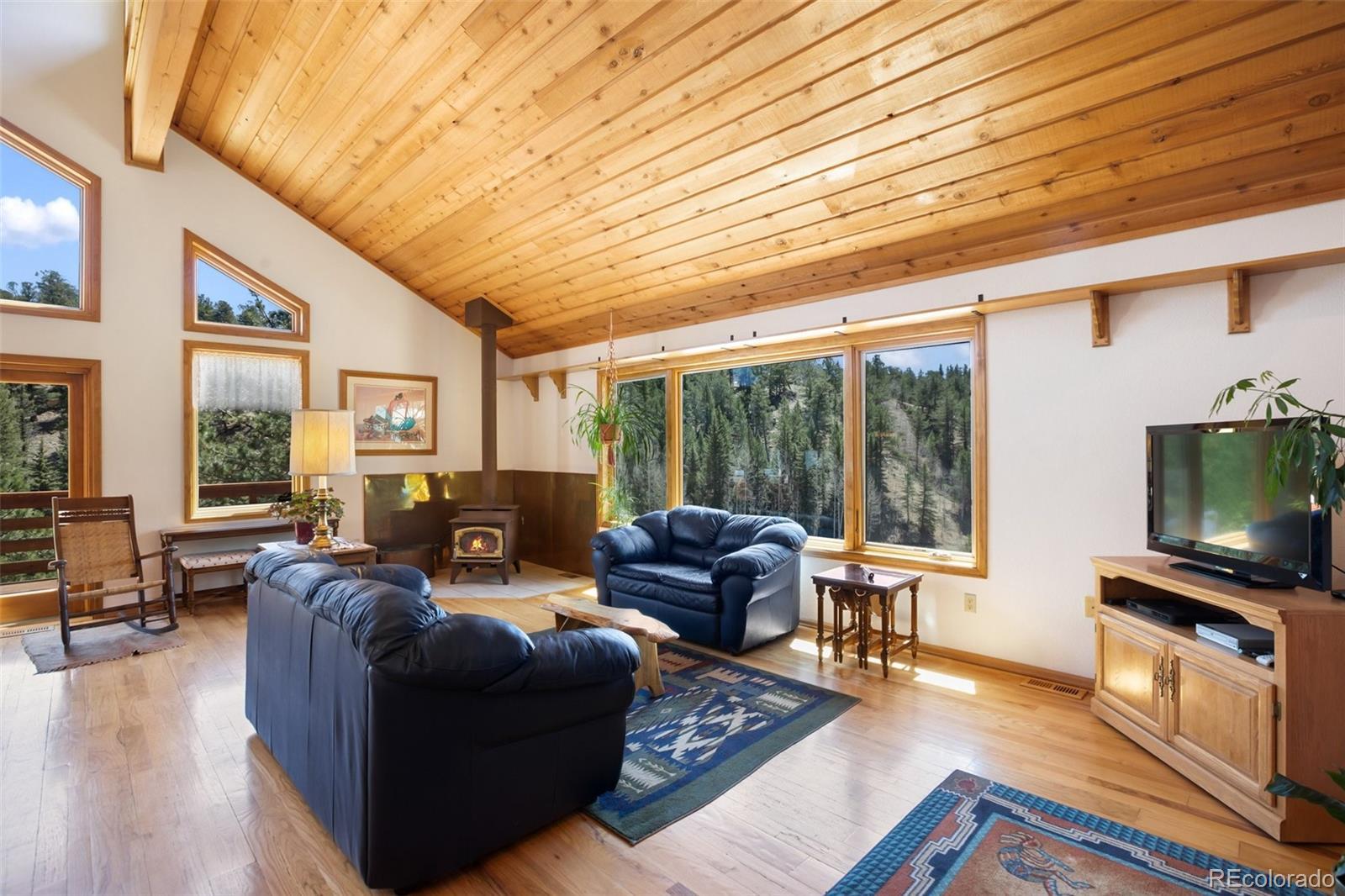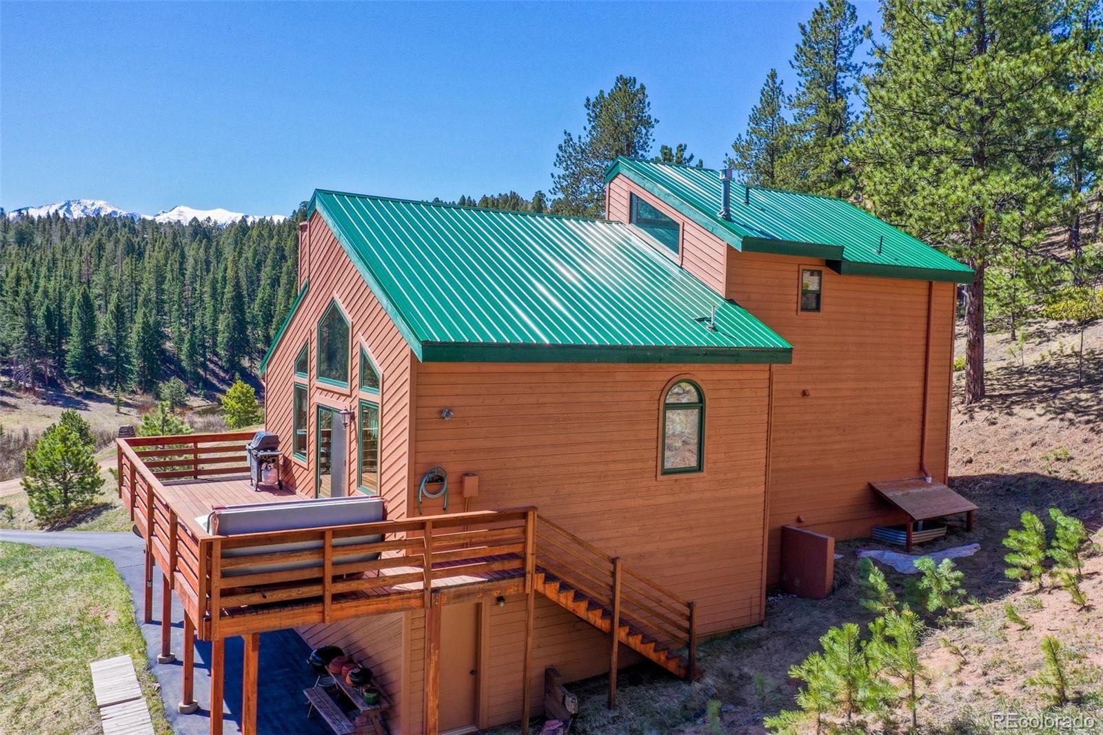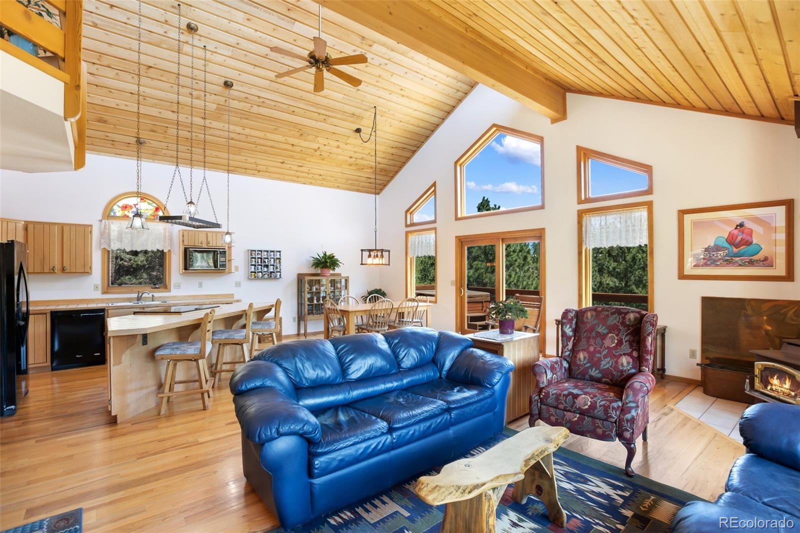 Mountain Luxury Meets Timeless Elegance – Pikes Peak Views, Private Creek & Pond on Nearly 5 Acres Welcome to a truly extraordinary offering in the heart of Colorado’s most desirable mountain town. Nestled on just under 5 pristine acres, this exquisite 4-bedroom, 3-bath estate blends refined mountain living with comfort, craftsmanship, and unforgettable views. Sophisticated Living Spaces: Step inside to soaring vaulted ceilings with tongue-and-groove detail, rich hardwood flooring, and a sun-drenched great room anchored by a freestanding wood-burning stove. The open-concept kitchen features a large breakfast bar, walk-in pantry, and near-new appliances—perfect for entertaining or quiet evenings at home. Serene Master Retreat: Privately perched on the upper level, the luxurious master suite offers a five-piece spa bath, spacious walk-in closet, and a private balcony showcasing panoramic views of iconic Pikes Peak. Versatile Spaces: A charming loft overlooks the main living area, ideal for a library, studio, or home office. The expansive lower level includes a beautifully appointed office with custom built-ins, a guest bedroom, and full bath—ideal for multi-generational living or a private work-from-home setup. Unmatched Outdoor Beauty: Enjoy the ultimate in outdoor Colorado living with a spacious deck and hot tub, a serene creek and pond, and mature pines offering peace and seclusion. The oversized 2-car garage, carport, and workshop provide ample room for vehicles and gear. Premium Features Include: Brand NEW Furnace, Recently painted wood siding Durable 4-year-old metal roof Resealed paved driveway Radon Mitigation System Minutes from Woodland Park yet feels worlds away Experience the rare blend of luxury, privacy, and natural beauty – a true mountain sanctuary. Don’t miss this once-in-a-lifetime opportunity.