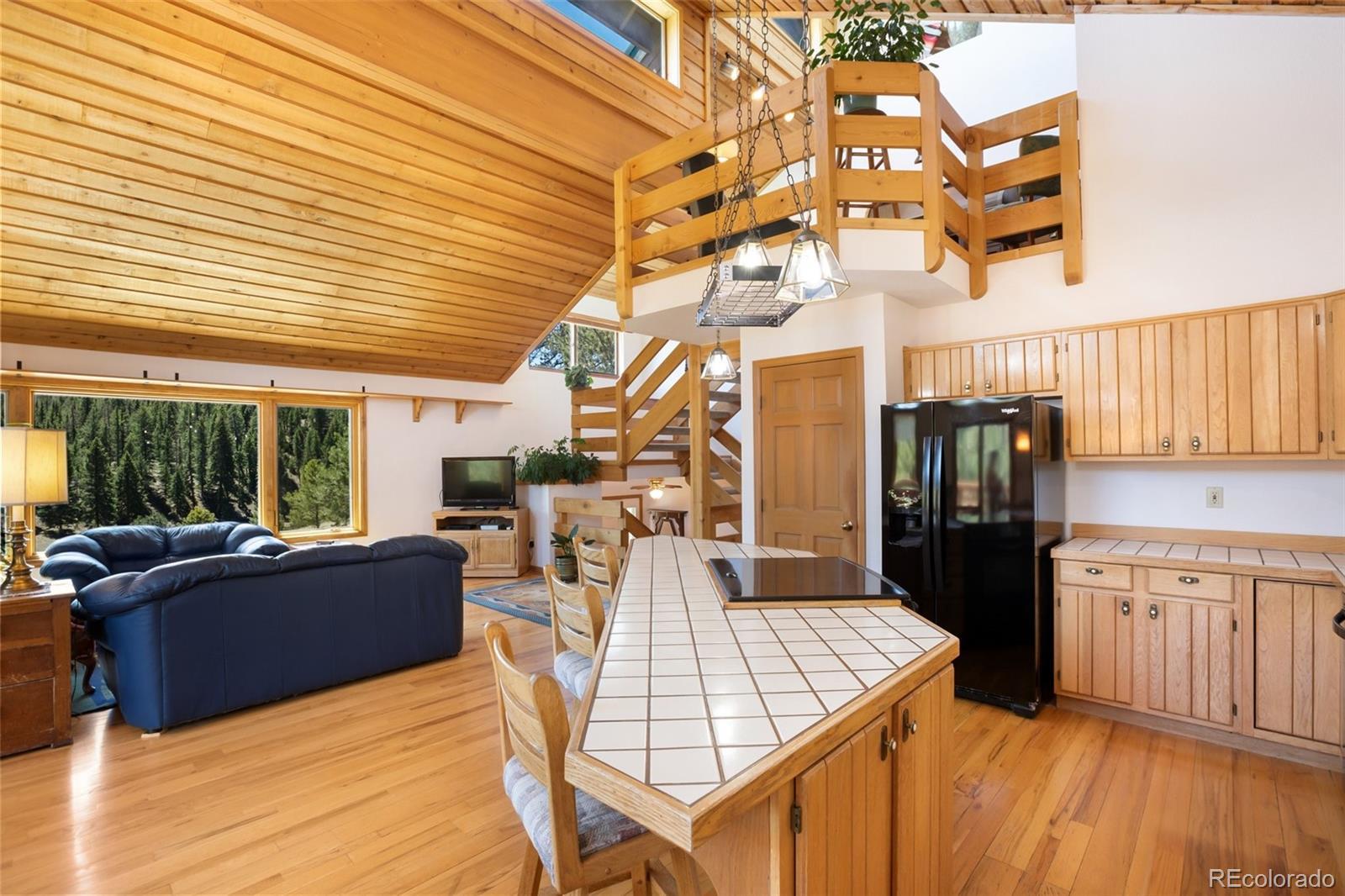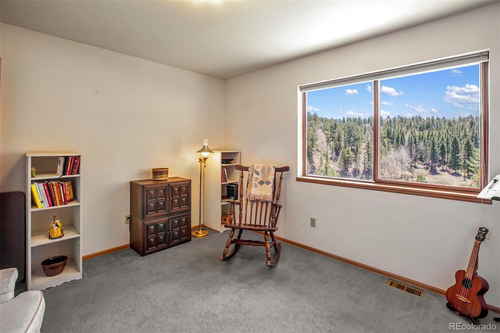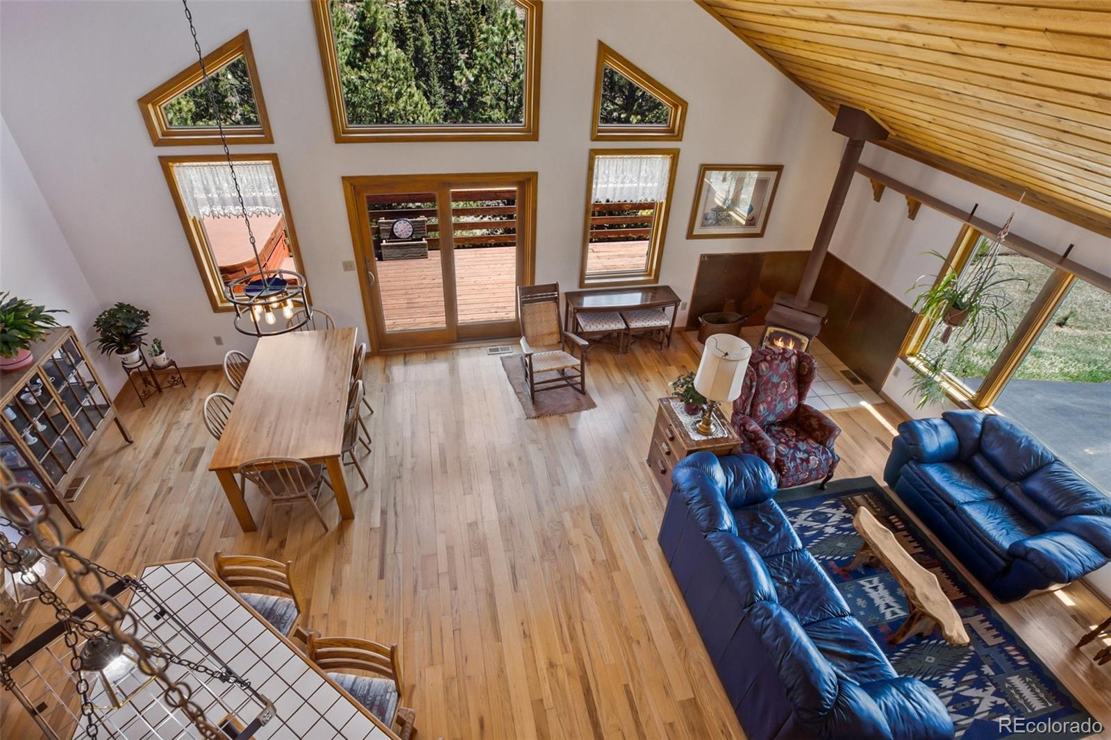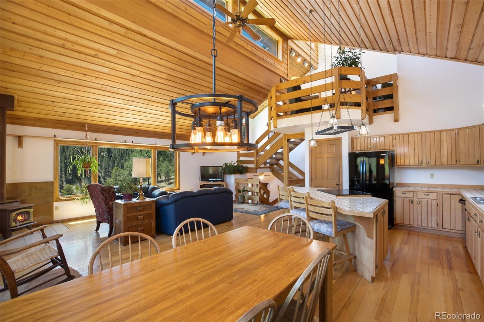 Mountain Luxury Meets Timeless Elegance – Pikes Peak Views, Private Creek & Pond on Nearly 5 Acres Welcome to a truly extraordinary offering in the heart of Colorado’s most desirable mountain town. Nestled on just under 5 pristine acres, this exquisite 4-bedroom, 3-bath estate blends refined mountain living with comfort, craftsmanship, and unforgettable views. Sophisticated Living Spaces: Step inside to soaring vaulted ceilings with tongue-and-groove detail, rich hardwood flooring, and a sun-drenched great room anchored by a freestanding wood-burning stove. The open-concept kitchen features a large breakfast bar, walk-in pantry, and near-new appliances—perfect for entertaining or quiet evenings at home. Serene Master Retreat: Privately perched on the upper level, the luxurious master suite offers a five-piece spa bath, spacious walk-in closet, and a private balcony showcasing panoramic views of iconic Pikes Peak. Versatile Spaces: A charming loft overlooks the main living area, ideal for a library, studio, or home office. The expansive lower level includes a beautifully appointed office with custom built-ins, a guest bedroom, and full bath—ideal for multi-generational living or a private work-from-home setup. Unmatched Outdoor Beauty: Enjoy the ultimate in outdoor Colorado living with a spacious deck and hot tub, a serene creek and pond, and mature pines offering peace and seclusion. The oversized 2-car garage, carport, and workshop provide ample room for vehicles and gear. Premium Features Include: Brand NEW Furnace, Recently painted wood siding Durable 4-year-old metal roof Resealed paved driveway Radon Mitigation System Minutes from Woodland Park yet feels worlds away Experience the rare blend of luxury, privacy, and natural beauty – a true mountain sanctuary. Don’t miss this once-in-a-lifetime opportunity.