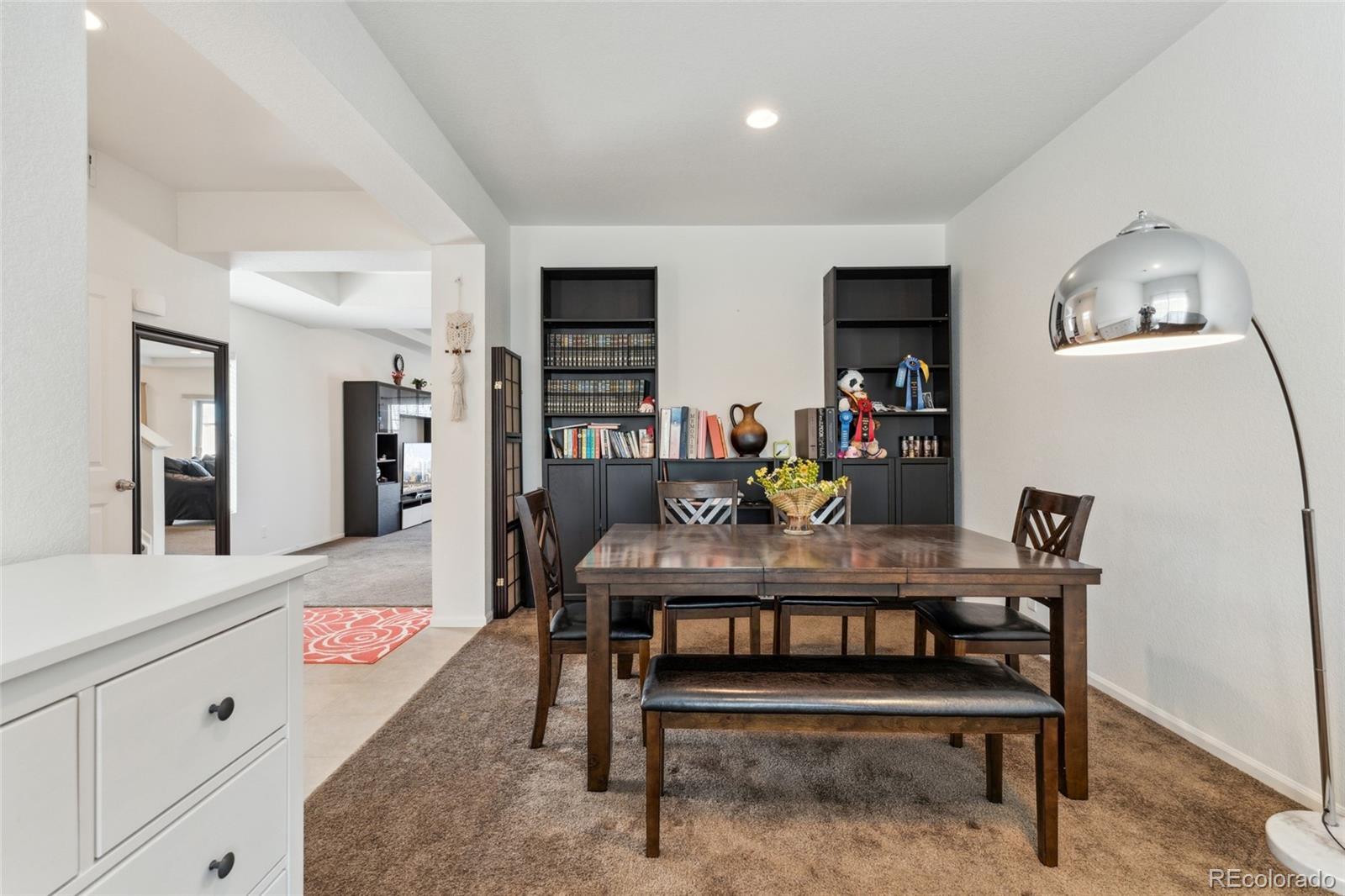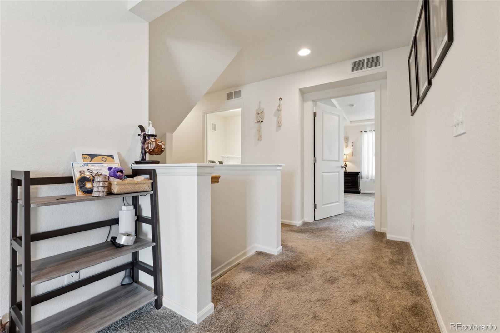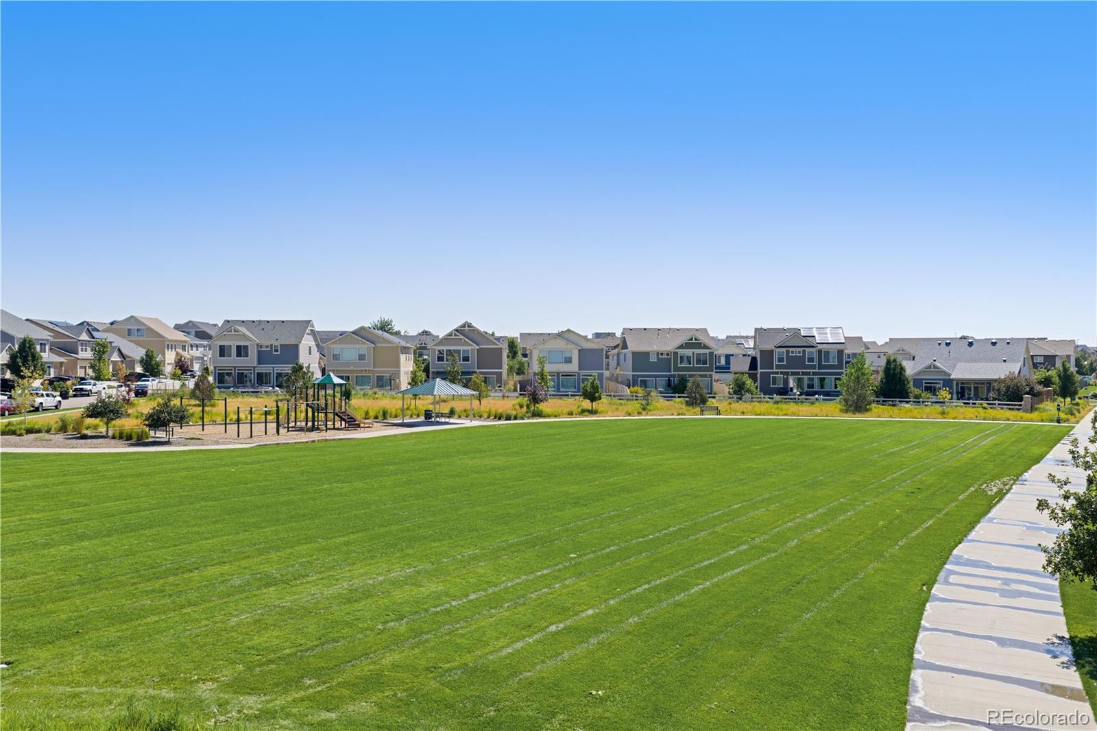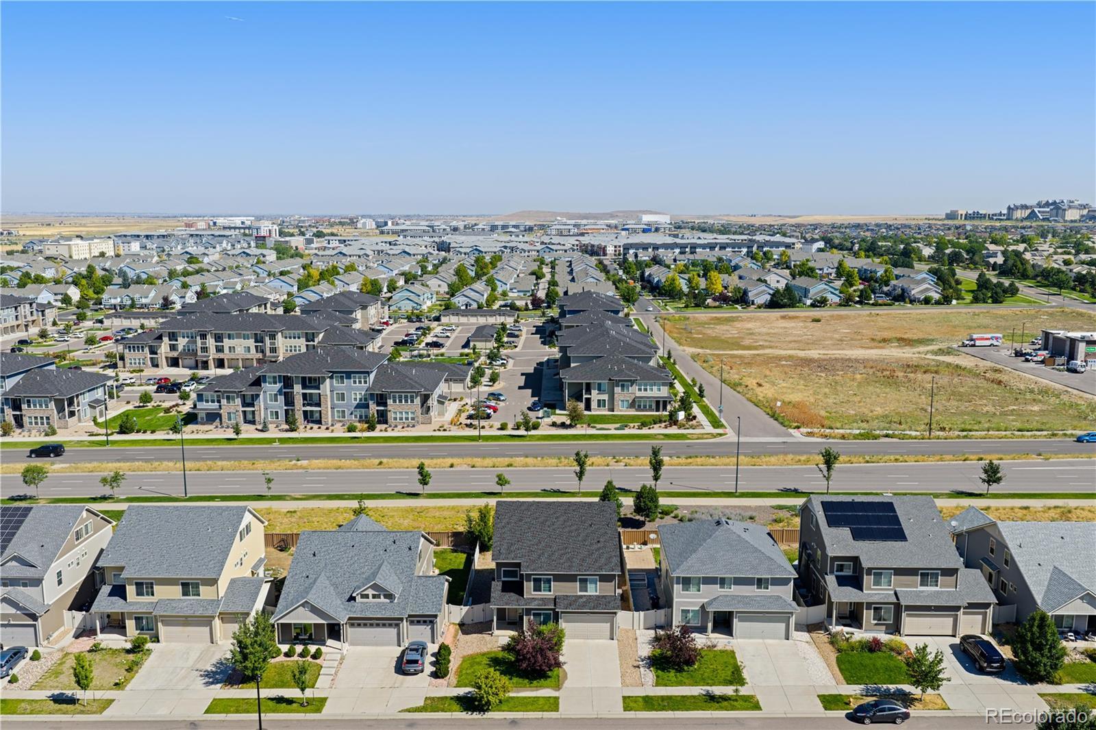 Modern Green Energy Home in Green Valley Ranch! Welcome to this beautifully designed three-level home located in the heart of the quiet and desirable Green Valley Ranch community. Built with green energy features, this home helps you save on energy bills while providing stylish and spacious living. Step inside to soaring high ceilings, abundant natural light, and modern finishes throughout. The main floor boasts an open-concept layout with a gourmet eat-in kitchen featuring granite countertops, a large pantry, and a central island perfect for casual dining or entertaining. You'll also find a cozy study complete with a built-in bookshelf and a spacious TV stand with storage. All four bedrooms are conveniently located on the second level, along with a wardrobe featuring mirrored doors for added style and functionality. The third level offers a flexible living space—ideal for a home office, guest retreat, or playroom. Enjoy outdoor living in the fully fenced yard, perfect for relaxation or entertaining. Recent upgrades include a new roof (2024) and new vinyl siding (2024), adding peace of mind and curb appeal. This home is situated in a peaceful neighborhood within walking distance to First Creek Park and scenic trails, offering a beautiful outdoor escape. With quick access to I-70 and I-225, commuting is a breeze. Don’t miss your chance to own this HERS rating 57 energy-efficient gem in a vibrant community!