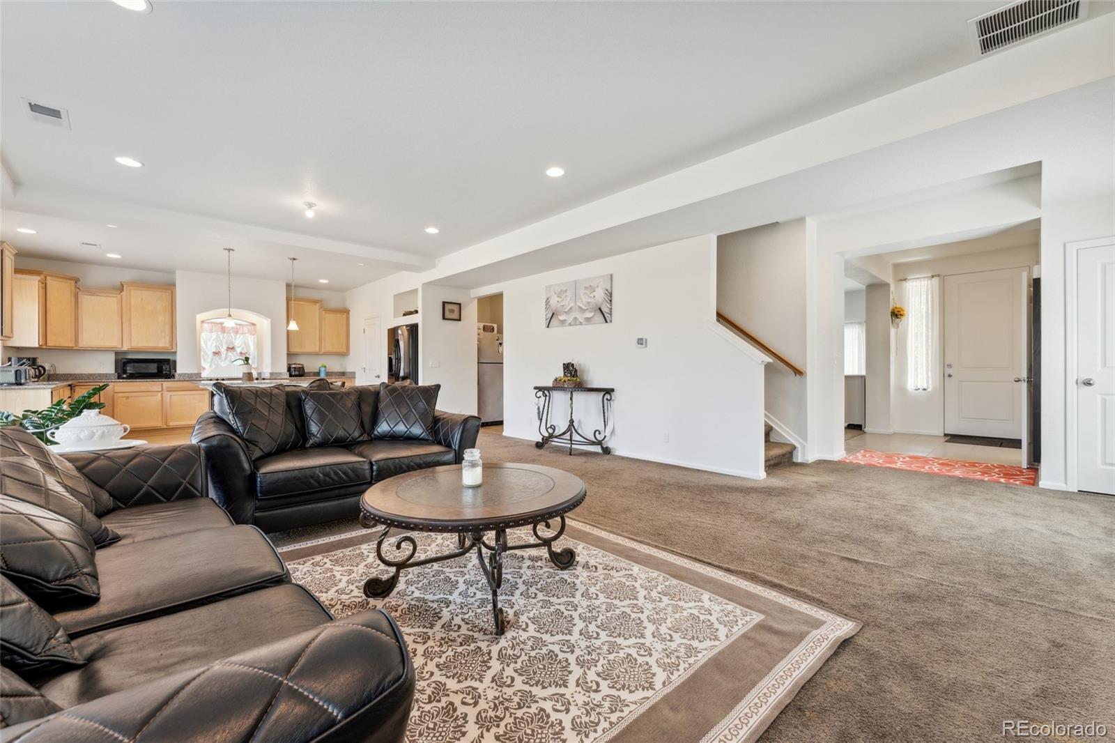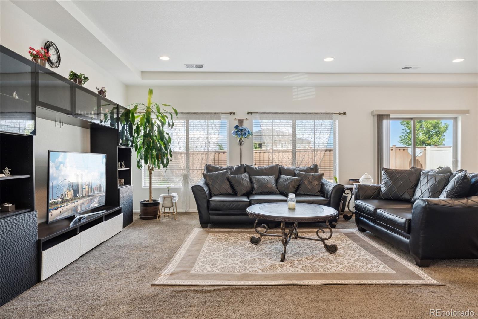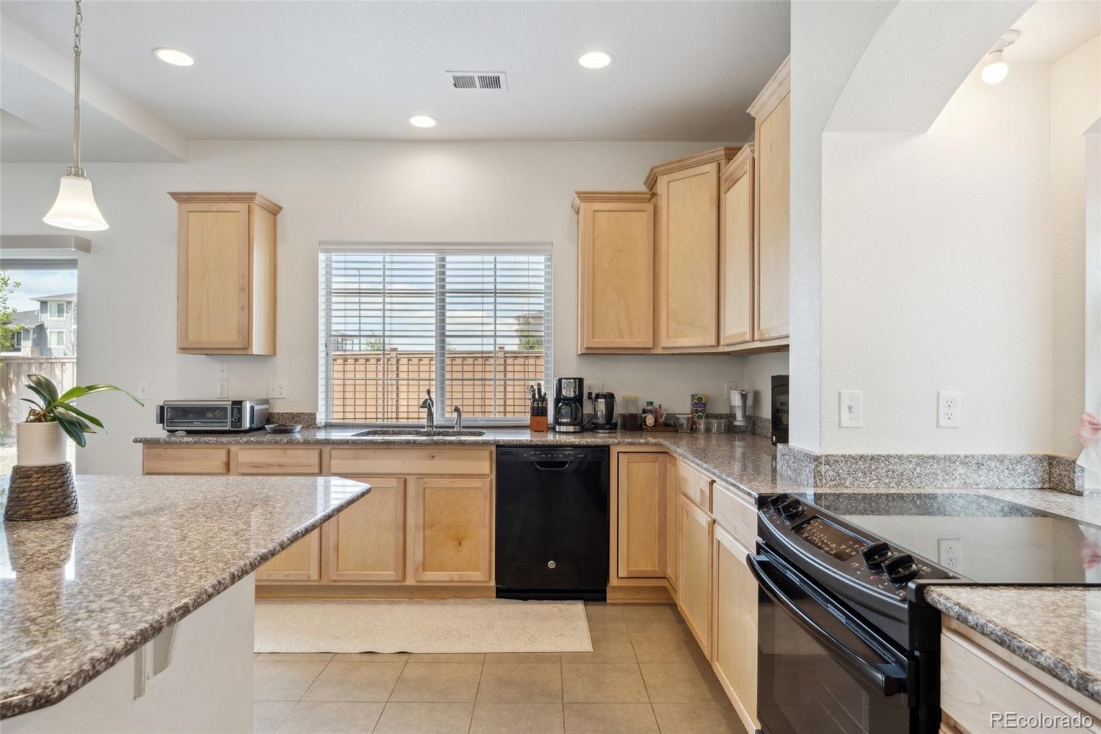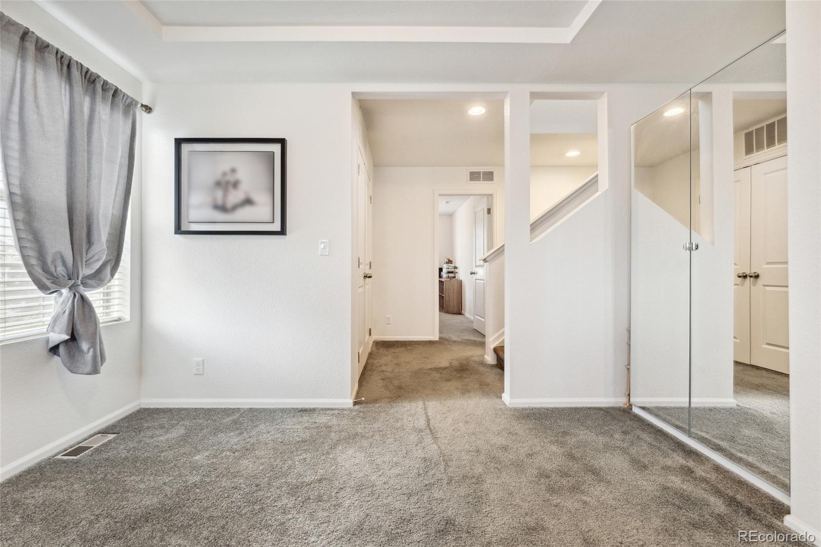 Modern Green Energy Home in Green Valley Ranch! Welcome to this beautifully designed three-level home located in the heart of the quiet and desirable Green Valley Ranch community. Built with green energy features, this home helps you save on energy bills while providing stylish and spacious living. Step inside to soaring high ceilings, abundant natural light, and modern finishes throughout. The main floor boasts an open-concept layout with a gourmet eat-in kitchen featuring granite countertops, a large pantry, and a central island perfect for casual dining or entertaining. You'll also find a cozy study complete with a built-in bookshelf and a spacious TV stand with storage. All four bedrooms are conveniently located on the second level, along with a wardrobe featuring mirrored doors for added style and functionality. The third level offers a flexible living space—ideal for a home office, guest retreat, or playroom. Enjoy outdoor living in the fully fenced yard, perfect for relaxation or entertaining. Recent upgrades include a new roof (2024) and new vinyl siding (2024), adding peace of mind and curb appeal. This home is situated in a peaceful neighborhood within walking distance to First Creek Park and scenic trails, offering a beautiful outdoor escape. With quick access to I-70 and I-225, commuting is a breeze. Don’t miss your chance to own this HERS rating 57 energy-efficient gem in a vibrant community!