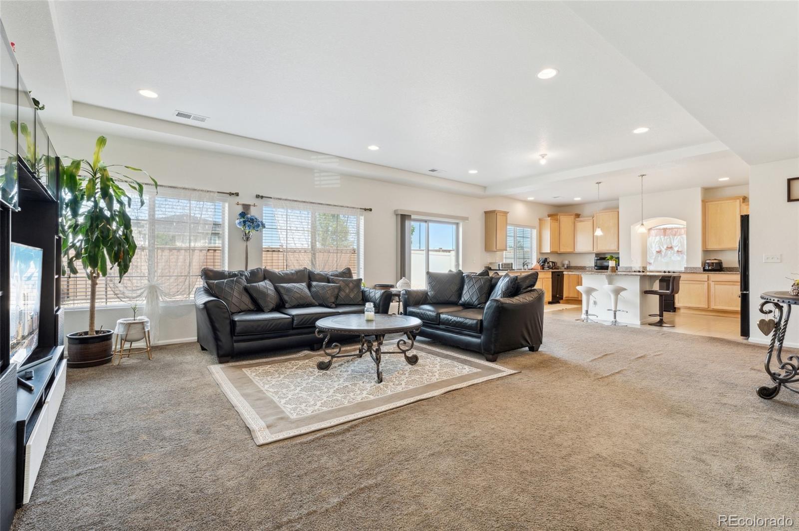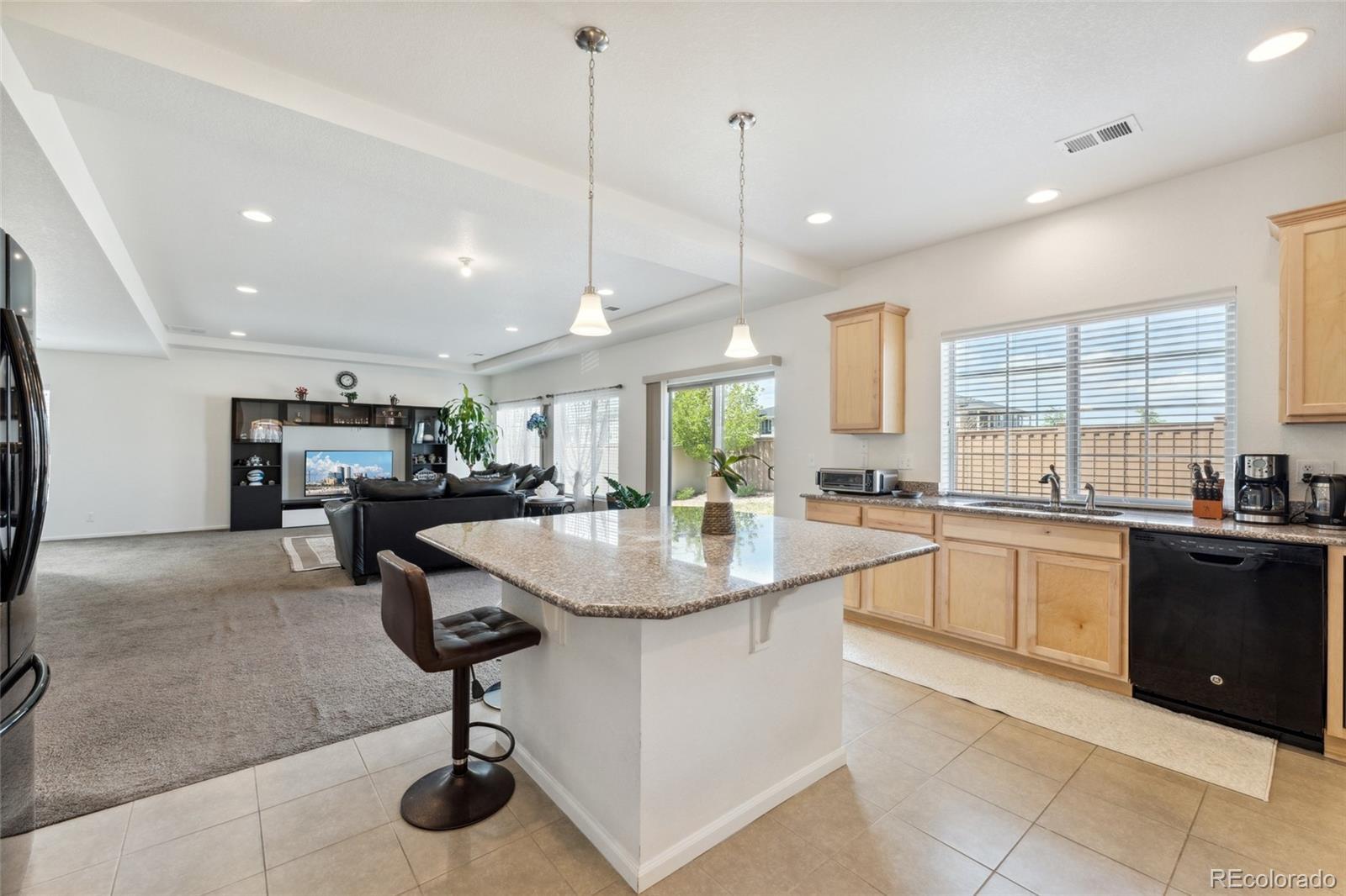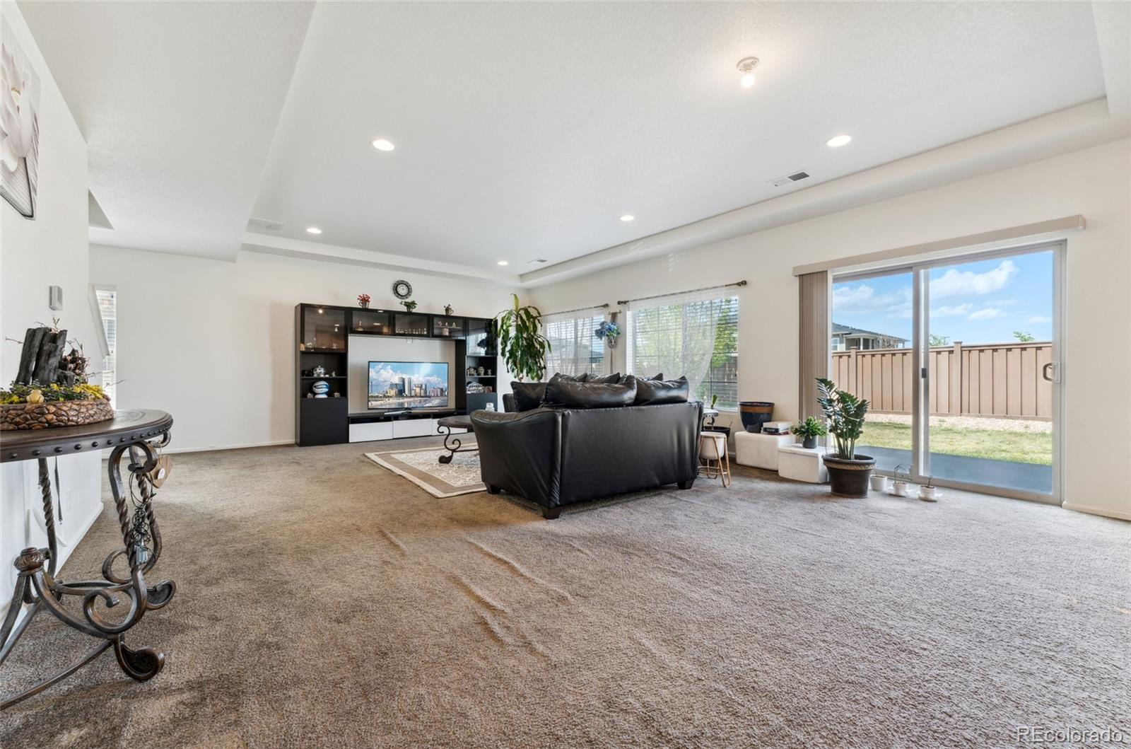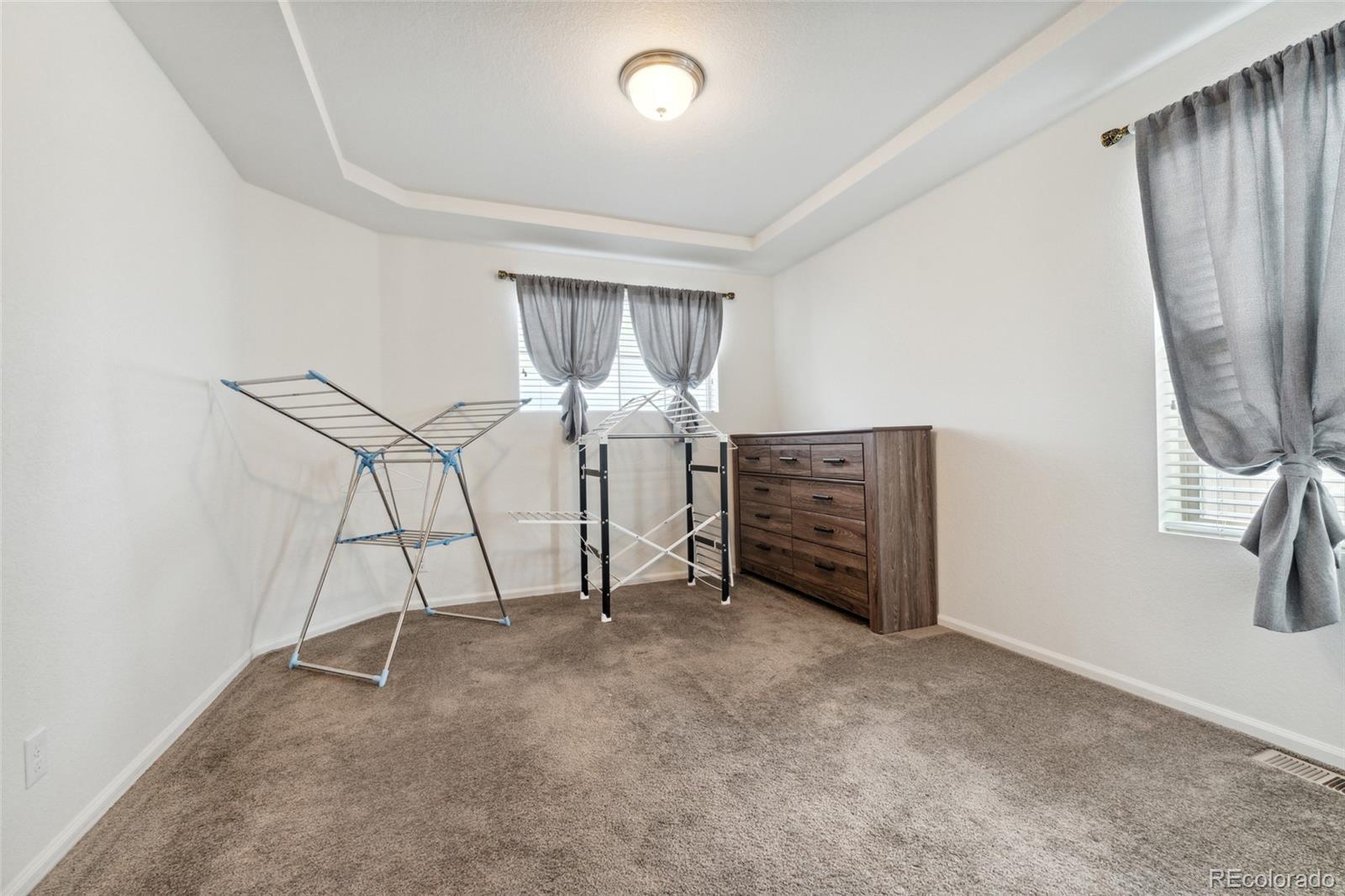 Modern Green Energy Home in Green Valley Ranch! Welcome to this beautifully designed three-level home located in the heart of the quiet and desirable Green Valley Ranch community. Built with green energy features, this home helps you save on energy bills while providing stylish and spacious living. Step inside to soaring high ceilings, abundant natural light, and modern finishes throughout. The main floor boasts an open-concept layout with a gourmet eat-in kitchen featuring granite countertops, a large pantry, and a central island perfect for casual dining or entertaining. You'll also find a cozy study complete with a built-in bookshelf and a spacious TV stand with storage. All four bedrooms are conveniently located on the second level, along with a wardrobe featuring mirrored doors for added style and functionality. The third level offers a flexible living space—ideal for a home office, guest retreat, or playroom. Enjoy outdoor living in the fully fenced yard, perfect for relaxation or entertaining. Recent upgrades include a new roof (2024) and new vinyl siding (2024), adding peace of mind and curb appeal. This home is situated in a peaceful neighborhood within walking distance to First Creek Park and scenic trails, offering a beautiful outdoor escape. With quick access to I-70 and I-225, commuting is a breeze. Don’t miss your chance to own this HERS rating 57 energy-efficient gem in a vibrant community!