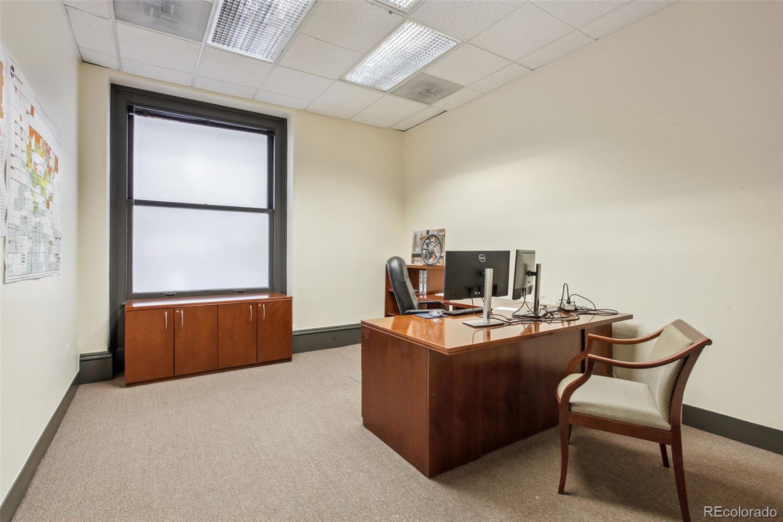 PRICE REDUCED: Five office condo units for sale on the 4th floor of the Prestgious and Historic Equitable Building in downtown Denver. Units 4A (2,163 sf), 4B (640 s.f.), 4H (1,782 s.f.), 4J (675 s.f.), and 4K (2,128 s.f.) These units can be purchased individually or purchased as a group providing 7,388 s.f. Built in 1892 The Equitable Building is one of Denver’s most distinctive buildings. All units are vacant with the exception of Unit K which has a short-term, month-to-month tenant. Units A and B are currently joined as contiguous space. The building will be undergoing a common area renovation including new elevators and HVAC. The building is within one-block of a light rail stop and the 16th Street Mall. Many restaurants and entertainment venues within walking distance. Building includes a fitness center, common conference room, locker storage room, and separate freight elevator. The building also has onsite maintenance and security and is a pet-friendly workspace. Photos are of actual units and representative of the space, not all units were photographed.