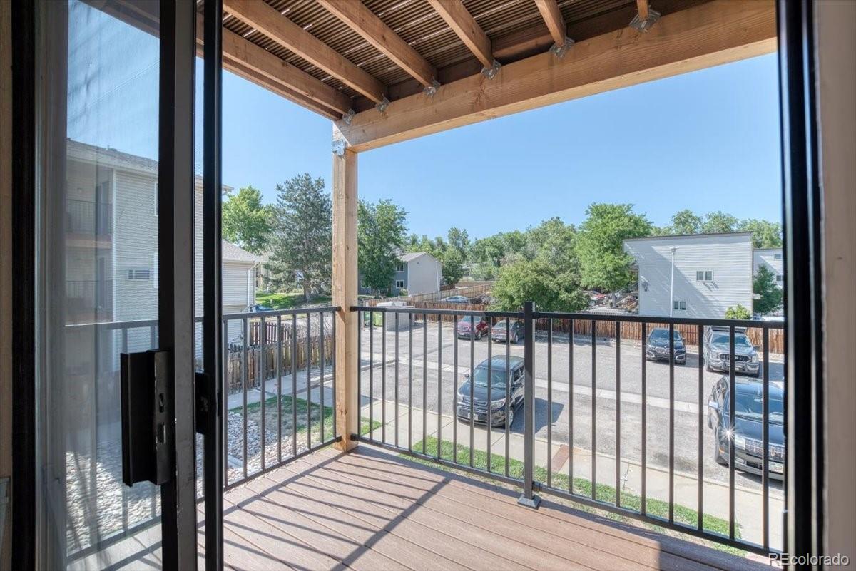 Welcome to this charming, updated condo ideally located in the heart of Arvada Gardens. This thoughtfully designed two-bedroom, one-bath home offers a functional and open floor plan with tasteful upgrades throughout. Step into the living room, where a cozy wood-burning fireplace creates a warm and inviting atmosphere. The adjacent kitchen features a brand-new stove, sink, and faucet, and flows into a dedicated dining area perfect for everyday meals or entertaining. The spacious primary suite includes a private balcony, a separate vanity area, and direct access to the full bathroom, which has been refreshed with modern fixtures, a tile surround, and mosaic accents. A second balcony, updated closet doors, and new lighting and hardware add to the home’s stylish appeal. Enjoy the convenience of an in-unit laundry room with a lightly used washer and dryer, plus a large private storage unit (D) located on the main level. This 2nd-floor unit is just steps from parking and within walking distance to Old Town Arvada, Memorial Park, and the scenic Ralston Creek Trailhead. With easy access to public transit, a high walk score, and a low-maintenance lifestyle, this home offers both comfort and convenience. The professionally managed HOA includes water, sewer, trash, snow removal, and access to amenities such as a clubhouse and maintained grounds. Perfect for a first-time buyer, downsizer, or investor—this home is a rare find in a highly desirable location.