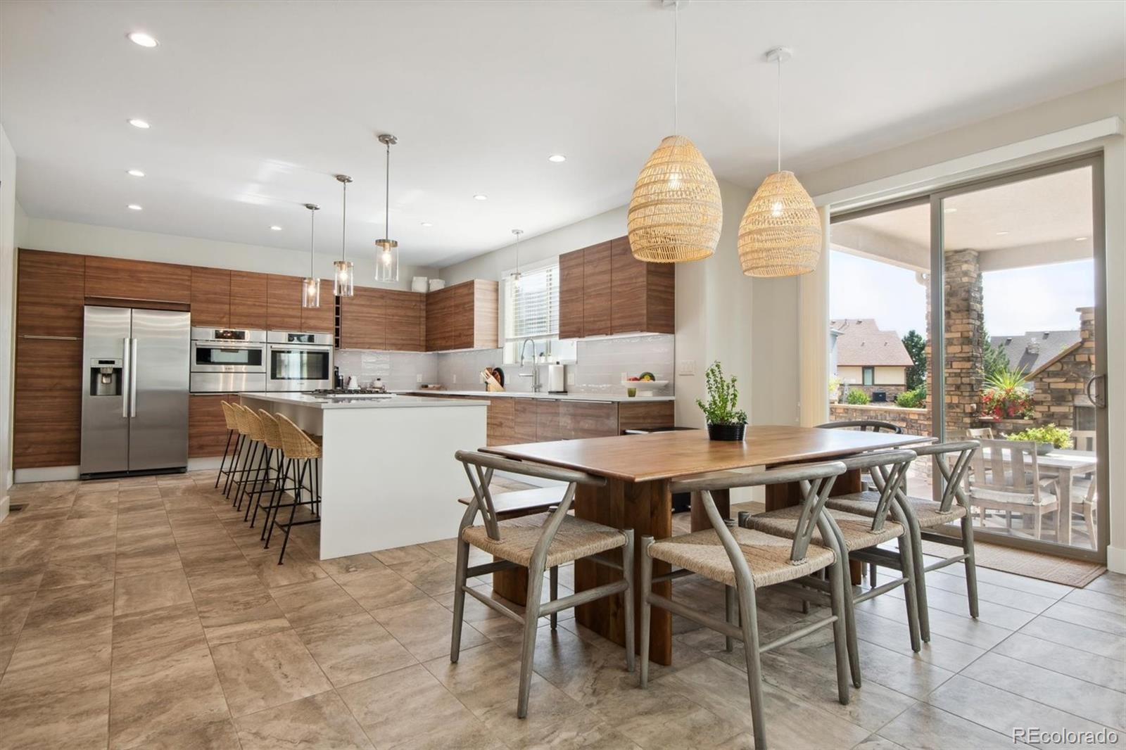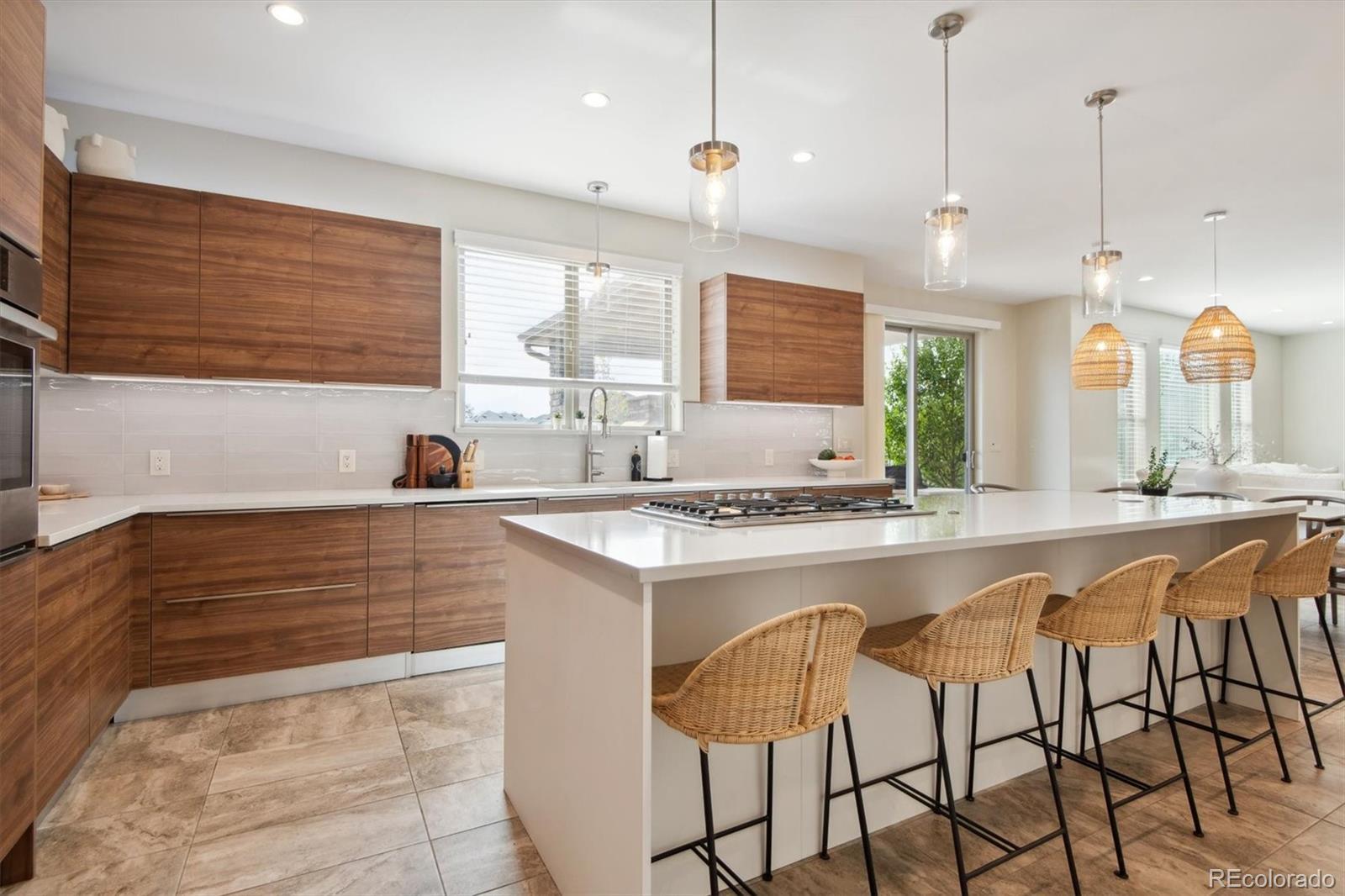 Exquisite and Immaculate don't even come close the describing this gorgeous custom-built home in the enclave of Chapel Hills. Upon entering, you will be enveloped by beautiful modern/European detail, from the gorgeous engineered wood flooring throughout, to the iron staircase railing. The living room is a quiet respite, and separate from the fantastic and spacious family room, which is open to the dining area and the gourmet kitchen. The thoughtful design lends perfectly to entertaining, and the dining area, along with seating at the very large kitchen island means no one misses the fun! There are a plethora of high-end cabinets for amazing storage, beautiful Stainless appliances to include convection wall oven and dual microwave, gas cook-top, and ample, gleaming quartz counter-tops. The spacious pantry is sectioned off by a modern barn door for added detail and style. Retreat to the Primary bedroom and enjoy the gas linear fireplace, and spa-like en suite bath. The basement is another fantastic gathering place for either a media room, home gym, or whatever you can create, complete with wet bar, and another bedroom and bath. The outdoor living spaces are completely custom, making you feel like you are in a resort, with outdoor fireplace & fire pit, custom stone work wall and covered patio. The front porch has also been enclosed with custom stonework, and the grounds/landscaping is absolutely meticulous! Add to this an oversized 3-car garage with epoxy floors, trail, Barr Lake close by, and amenities at you fingertips, and you have found your perfect oasis!