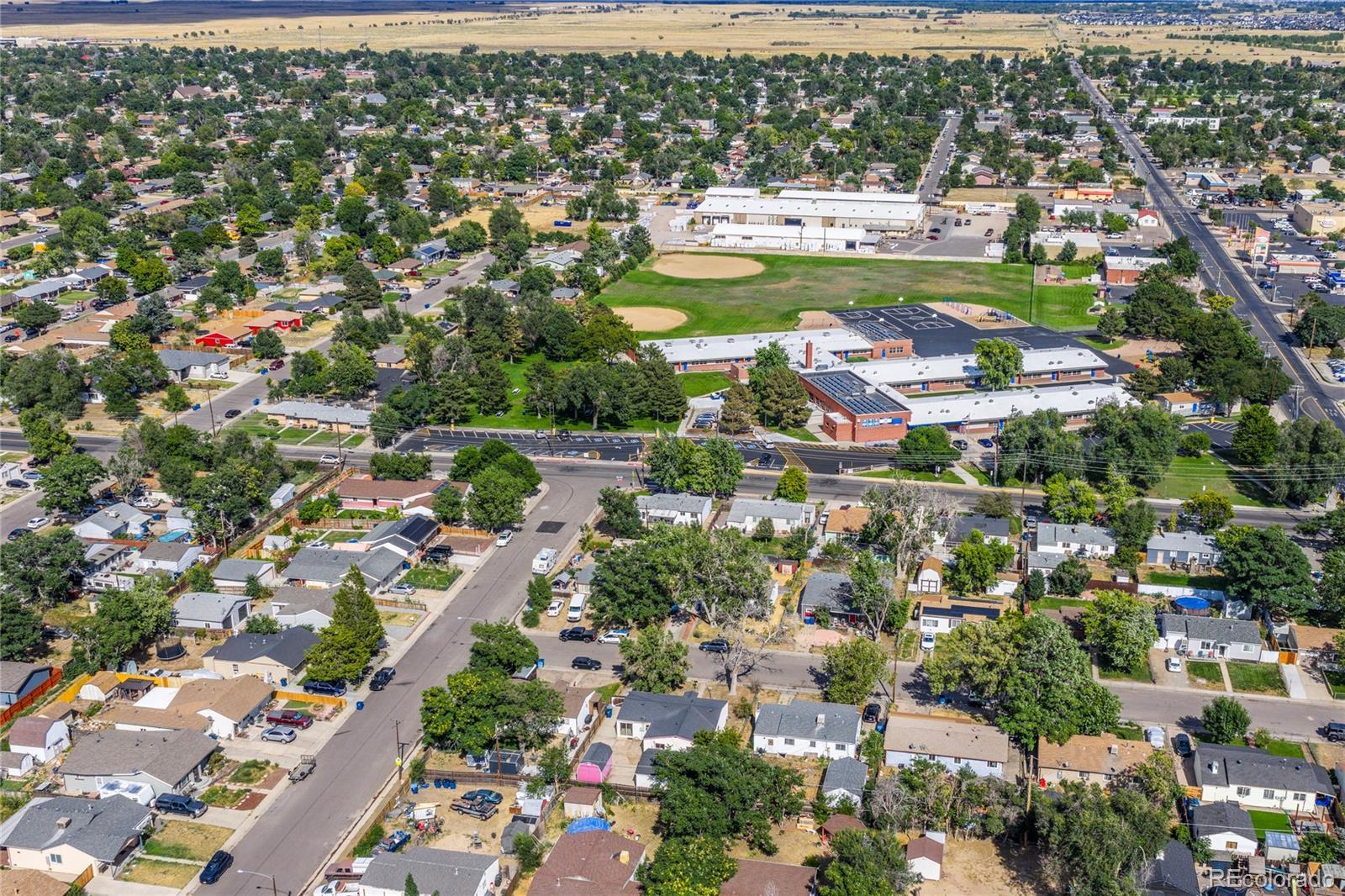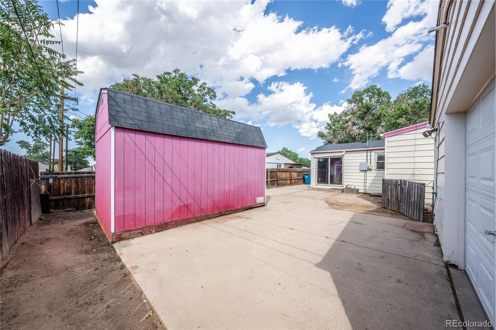 Bring all your vehicles, toys, and projects because this incredible Commerce City ranch-style home is ready for it all! With an oversized 2-car garage, extended driveway, RV/boat parking, and an expansive barn-style storage shed, the property offers exceptional space and versatility outdoors, coupled with a charm filled home for you to relax and unwind. Inside you’ll find 4 bedrooms, including two generously sized back bedrooms. 2 of the bedrooms are carpeted and the other 2 have hardwood floors. The bathroom features a shower/tub combo and vanity. The large living room with hardwood floors opens to a spacious kitchen featuring two-tone cabinets and ample cabinet and counter space. A bonus den adjoins the kitchen and dining area, complete with built-ins and historic details, ideal for a home office, formal dining room, or extra living space. The oversized laundry room offers additional functionality and potential for future expansion. Fresh interior paint, newer water lines, plus newer roofs on both the home and garage provide peace of mind. This home also comes with a transferable and recently renewed Fidelity National Home Warranty as well. All this is set on a fully fenced lot with patio space for entertaining, just minutes from Hwy 2, I-70, I-270, schools, and shopping. A rare find that combines charm, flexibility, and incredible parking/storage options!